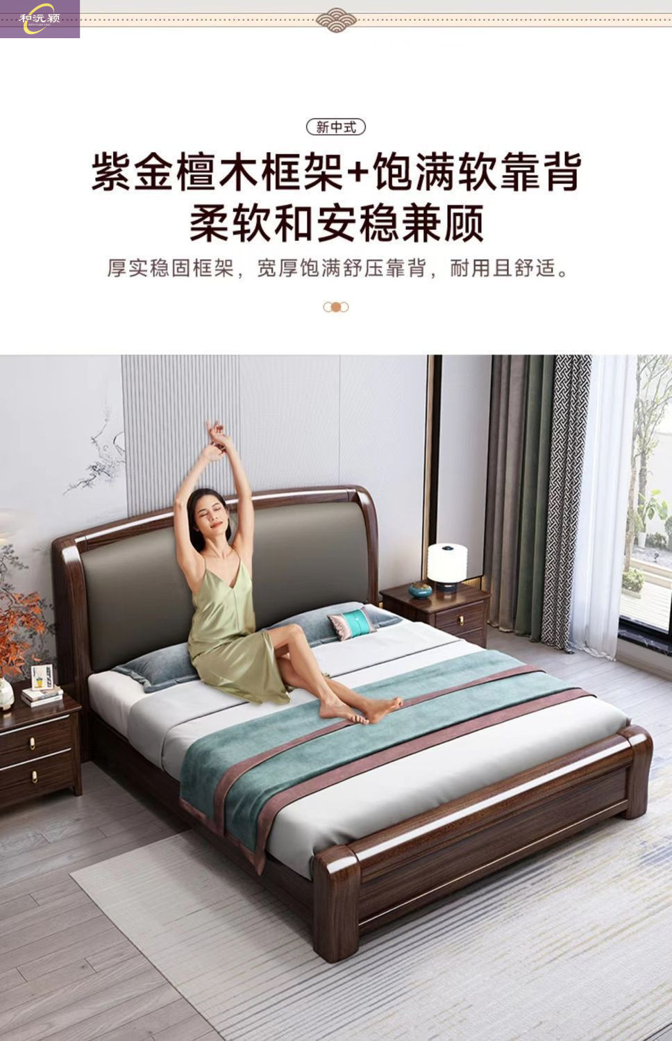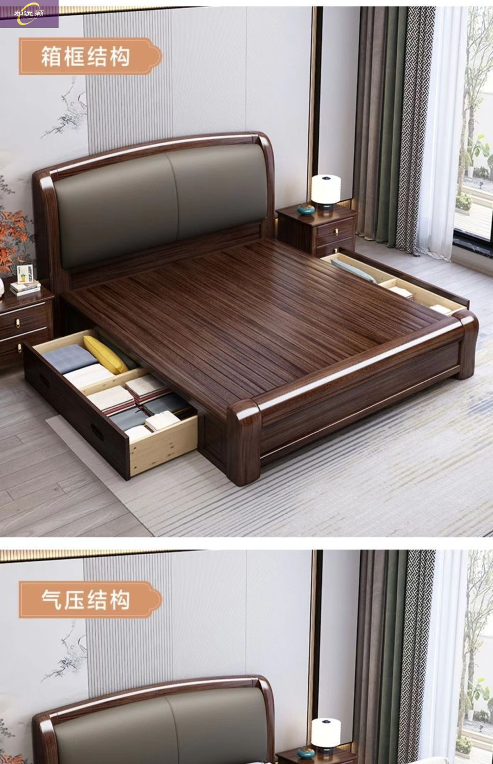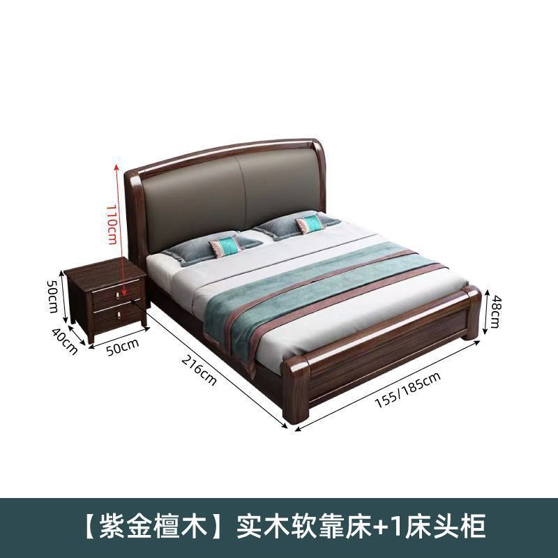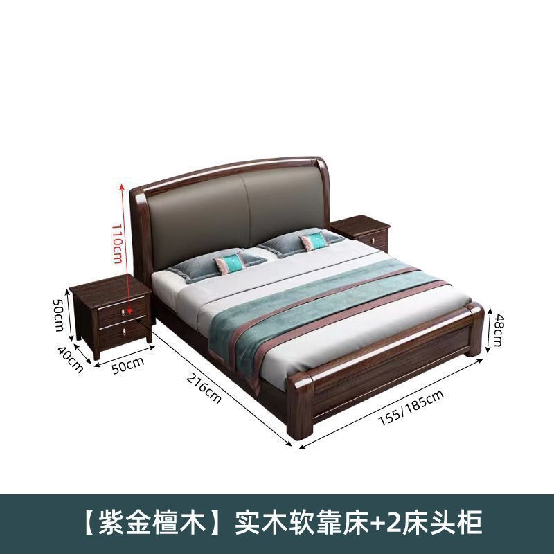 중국 솔리드 우드 지진 샌달 우드 침대 1.8 m 가벼운 럭셔리 더블 소프트 백 웨딩 침대 1.5 m 새로운 마스터 침실 공기 압력 저장스토어 가기