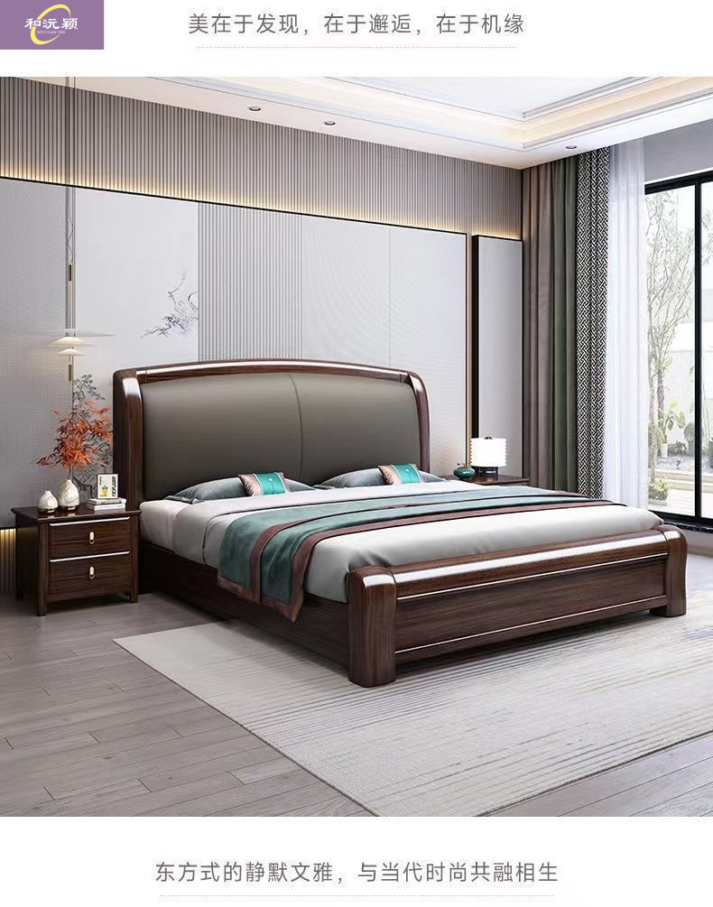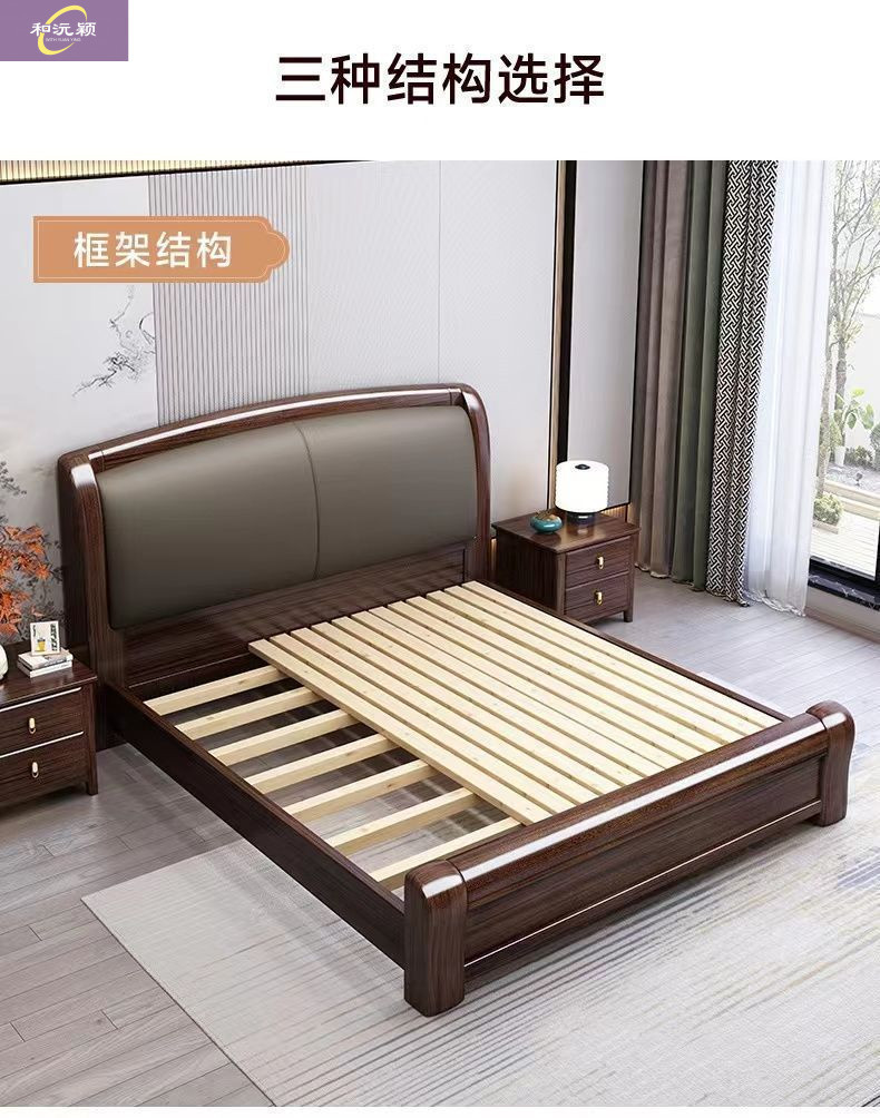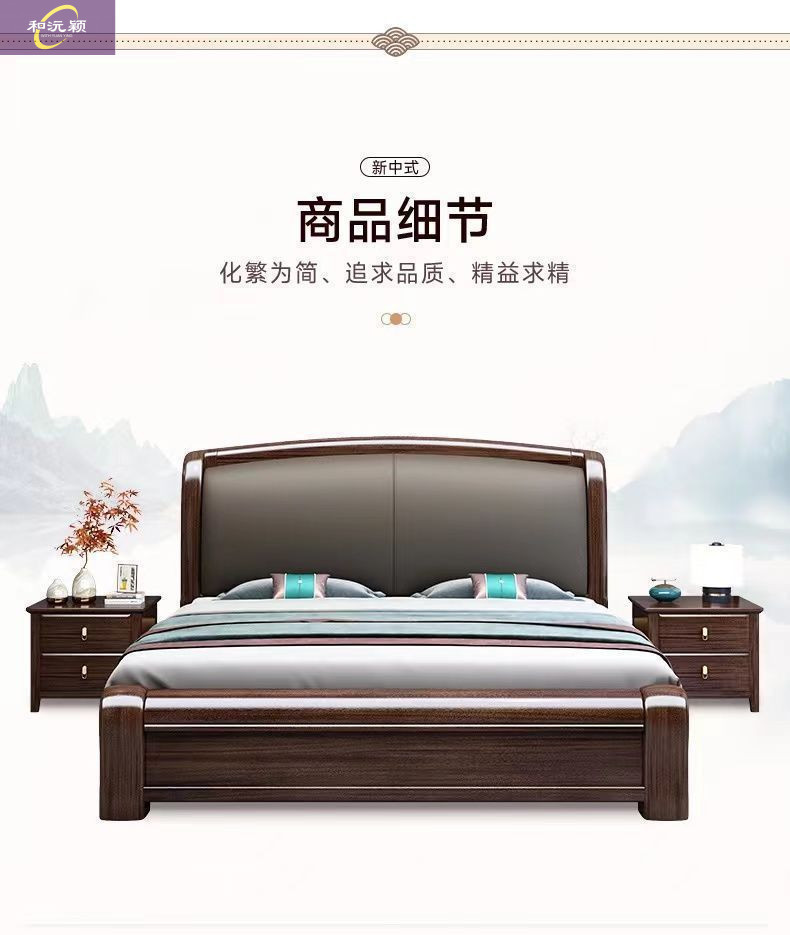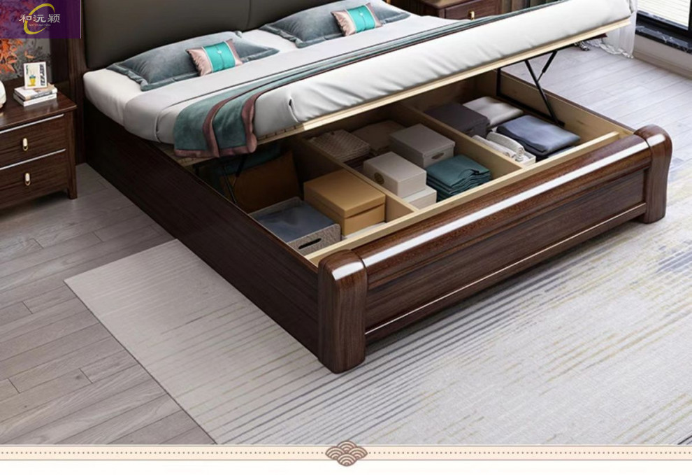중국 솔리드 우드 지진 샌달 우드 침대 1.8 m 가벼운 럭셔리 더블 소프트 백 웨딩 침대 1.5 m 새로운 마스터 침실 공기 압력 저장스토어 가기