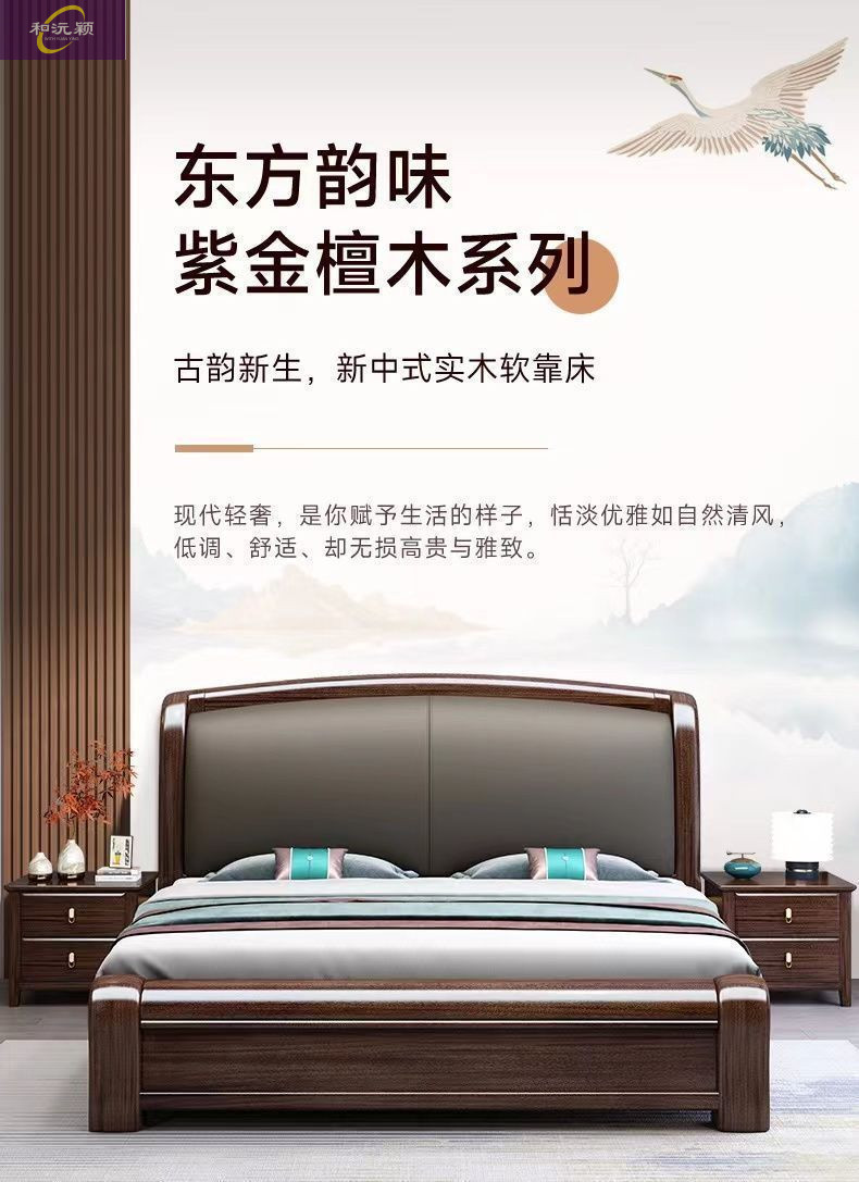 • 보라색 백단 원목 소프트 침대 [침대 7개/3단계 조절 가능]