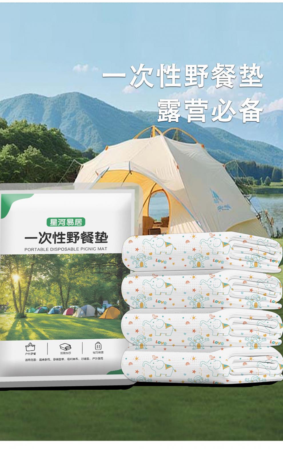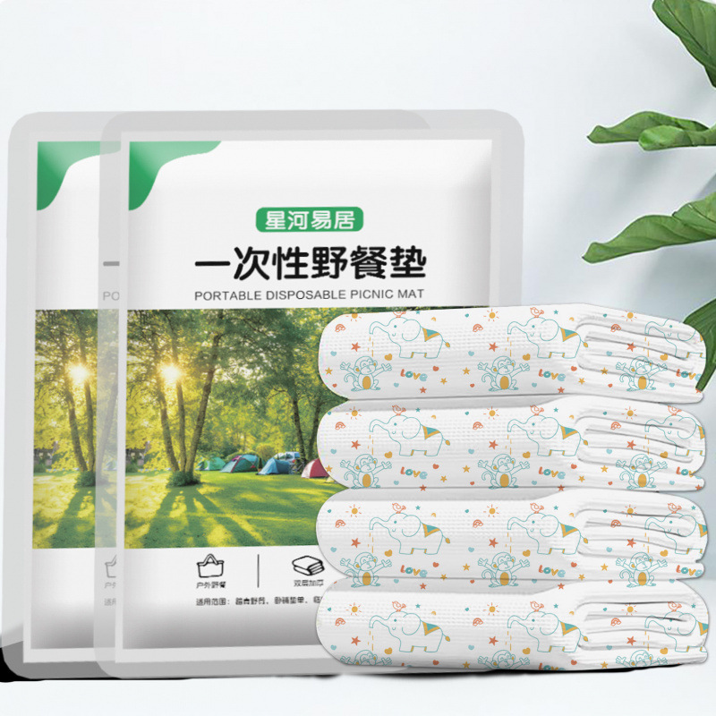 야외 여행을 위한 일회용 부직포 인쇄 방습 매트, 간편하고 휴대성이 뛰어난 두꺼운 코팅 캠핑 매트 피크닉 매트