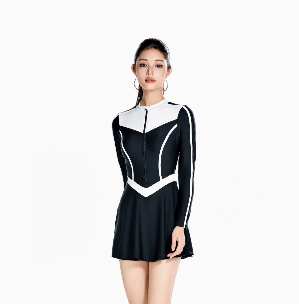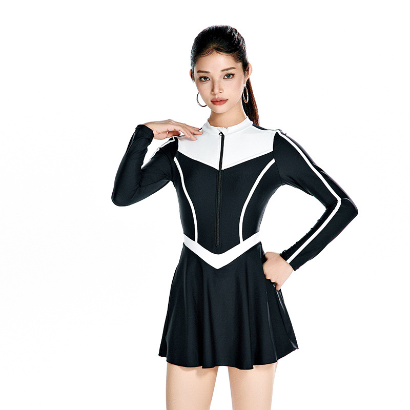 2025년 새로운 웨이브 방지 수영복, 젊은 스타일의 스포티한 원피스 스커트형 섹시하면서도 보수적인 슬리밍 효과가 있는 여성용 온천 수영복