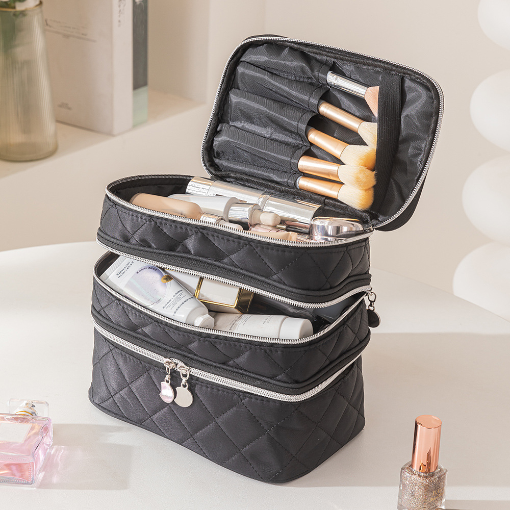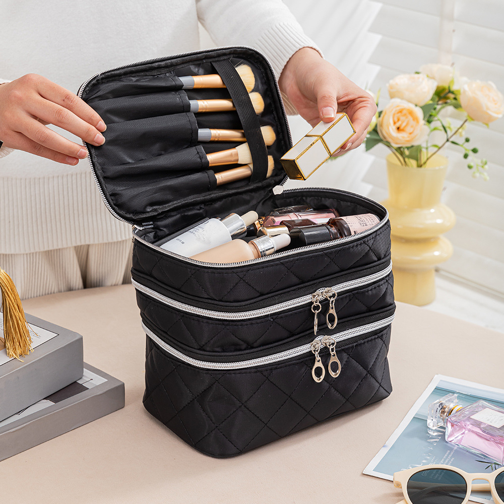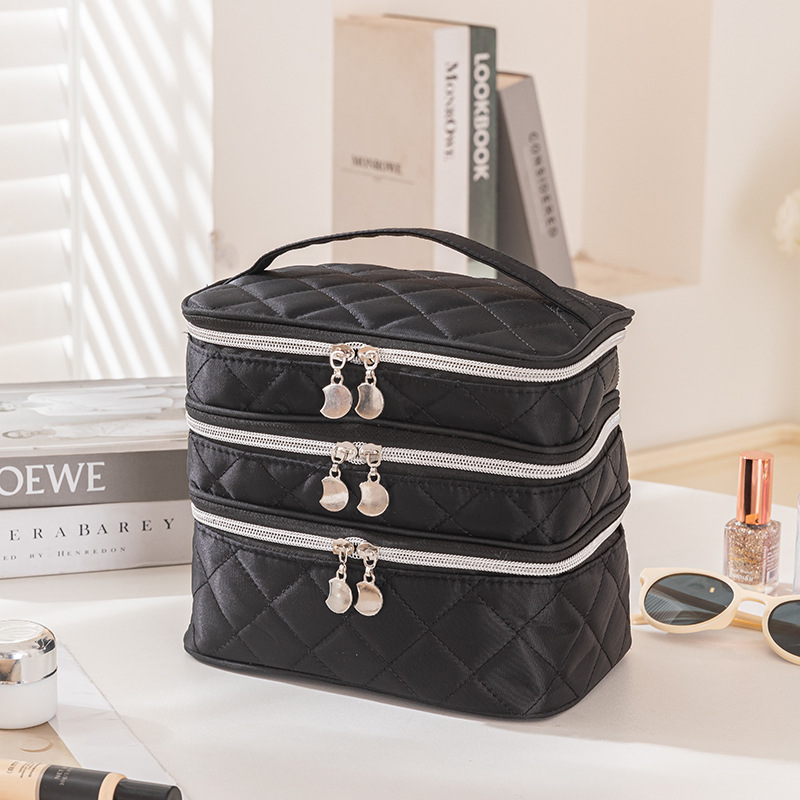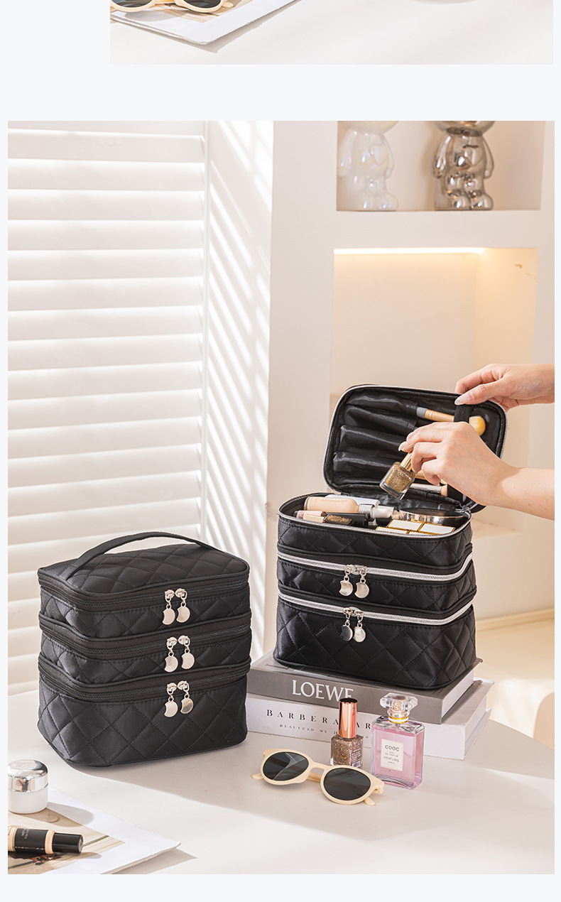 화장품 가방 새로운 3 층 마름모꼴 워시 백 다기능 휴대용 여성 여행 화장품 보관 가방 높은 수준 감각