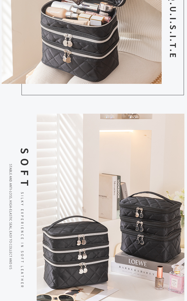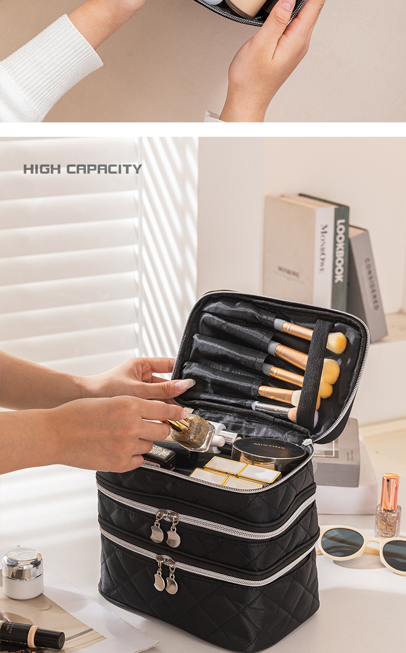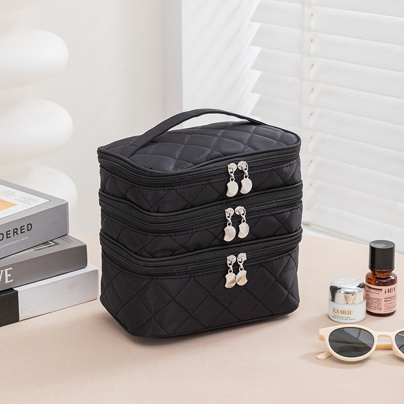 화장품 가방 새로운 3 층 마름모꼴 워시 백 다기능 휴대용 여성 여행 화장품 보관 가방 높은 수준 감각