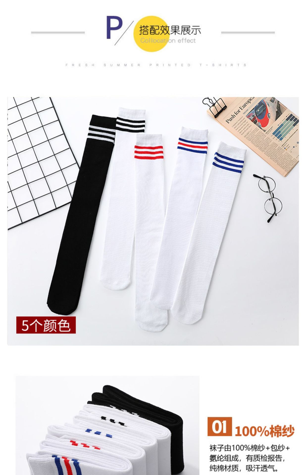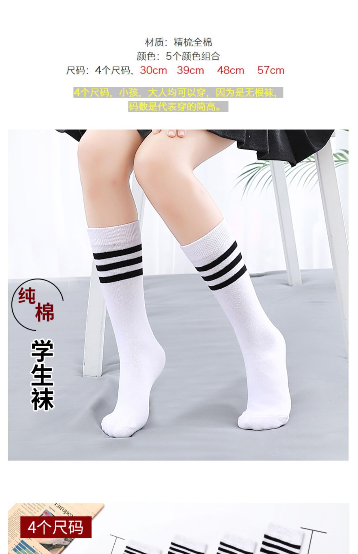 봄과 여름 어린이 양말 클래스 A 축구 양말 남학생과 여학생을위한 얇은 빗질면 무릎 길이 스타킹 댄스 더미 스타킹스토어 가기