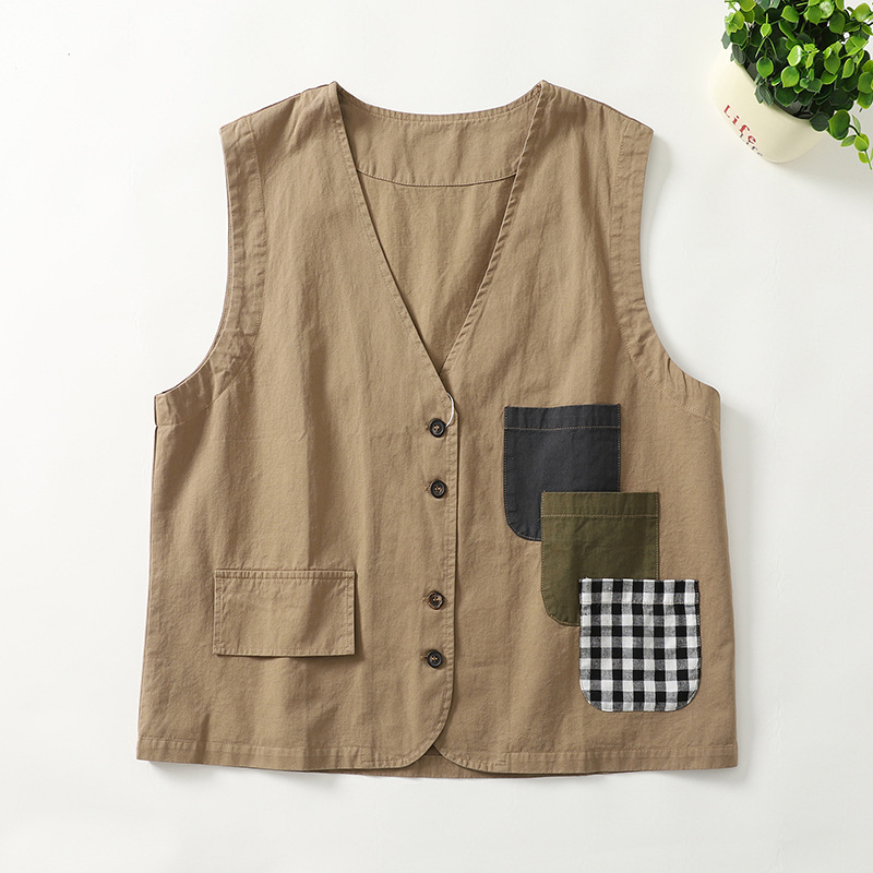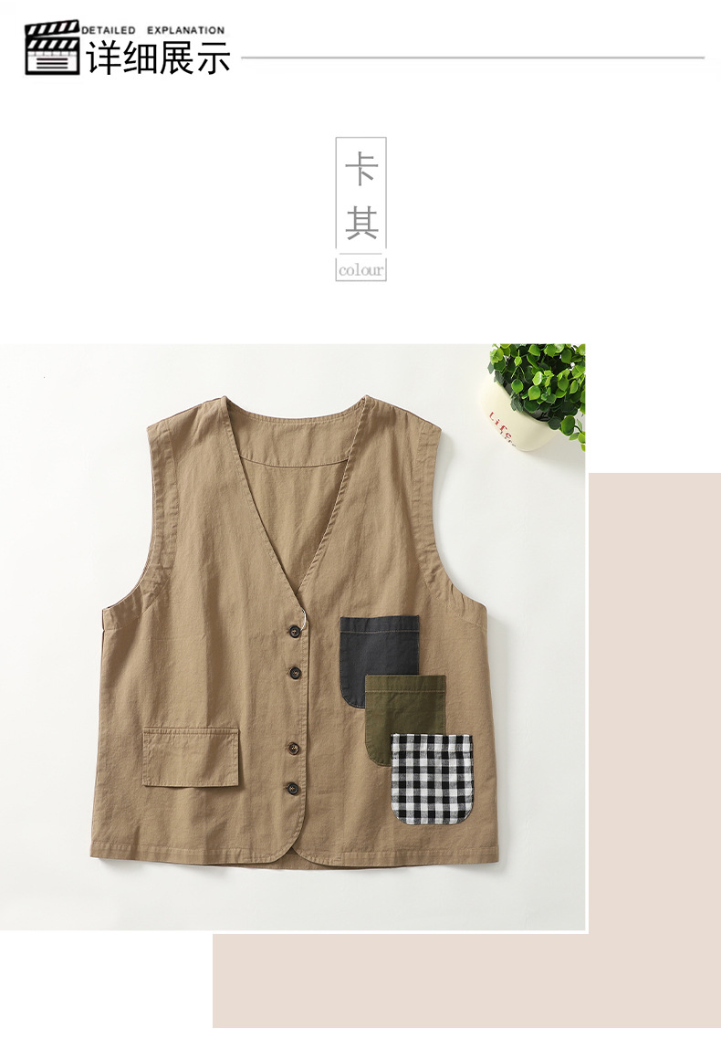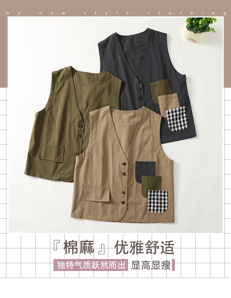 2025 여름 새 스타일 조끼 여성 예술적 빈티지 간단한 통근 ware 올 매치 슬림 핏 코튼 V 넥 조끼 여성 조끼스토어 가기