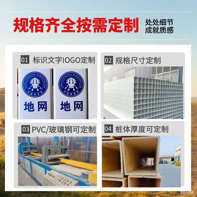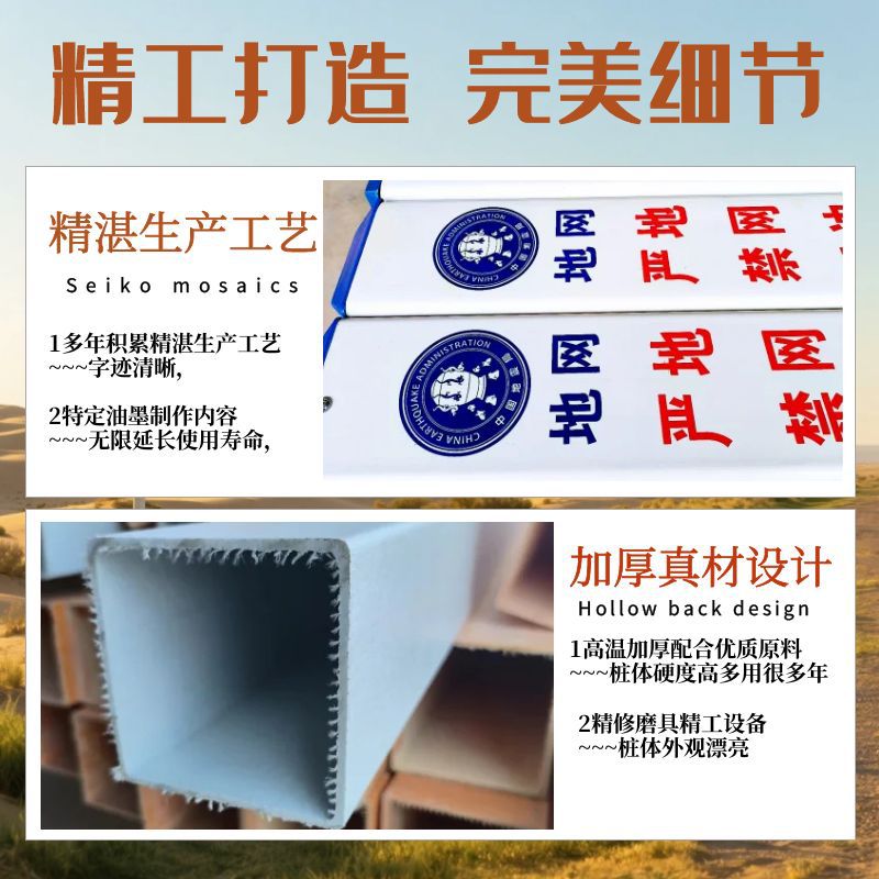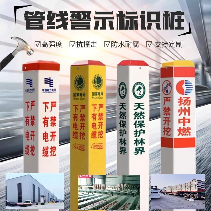 【标志桩】基本说明:本厂主要生产有pvc塑钢跟玻璃钢两种材质标志桩,尺寸高度 都均可定制,