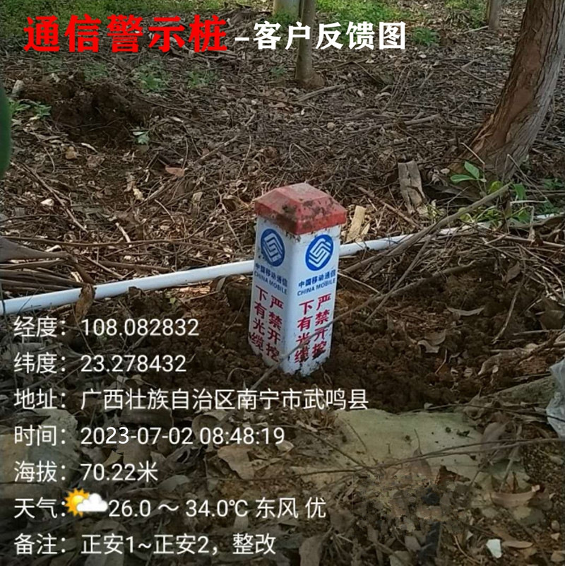 埋深要求:人行道是电缆标志桩应与地面保持水平。草坪地面时高出地面5厘米。