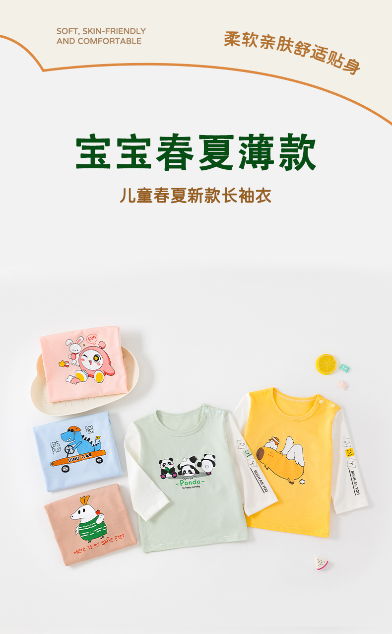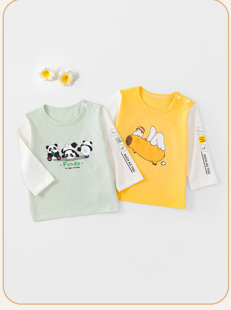 아기 봄과 여름 새로운 티셔츠 어린이 오데일 긴 소매 속옷 얇은 아기 홈 옷 만화베이스 셔츠스토어 가기