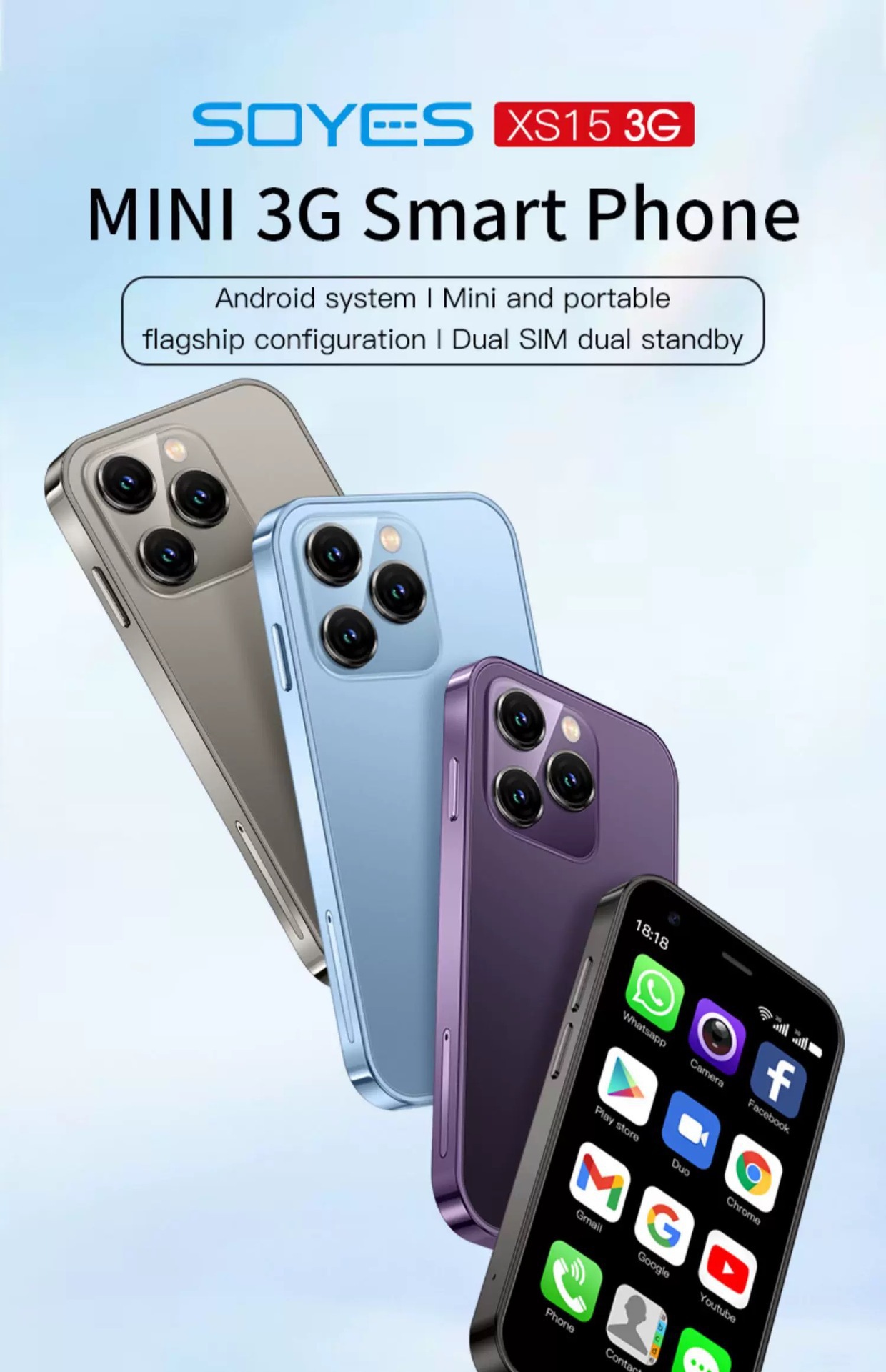 새로운 국경 휴대 전화 XS15 스마트 폰 듀얼 카드 미니 기계 직선 터치 스크린 안드로이드 3G 작은 휴대 전화 폭발