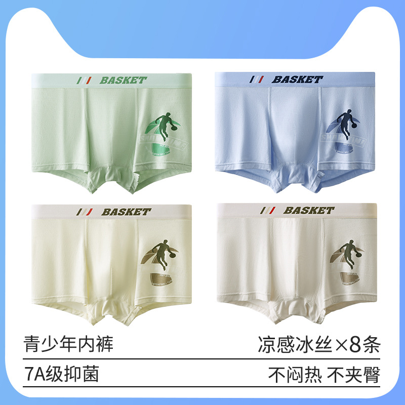 청소년 속옷 아이스 실크 통기성 메쉬 복서 바지 중학생 확대 및 지방 복서 바지 머리 증가스토어 가기