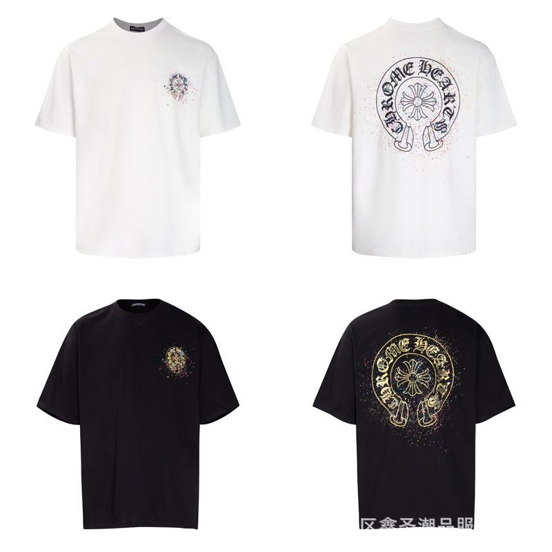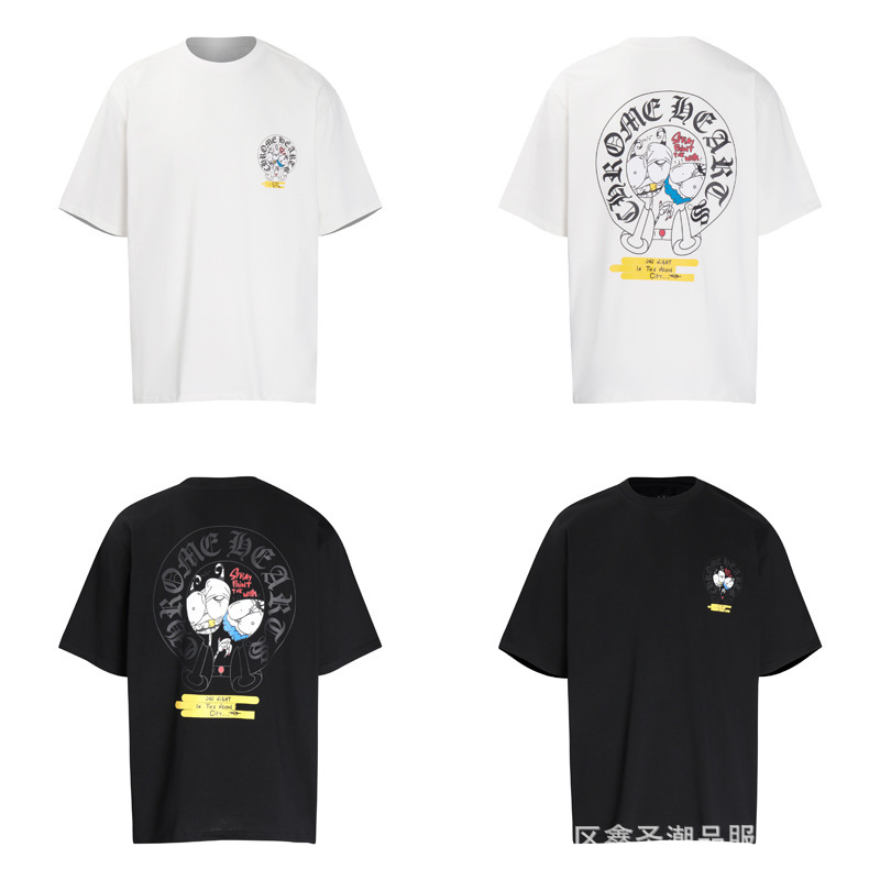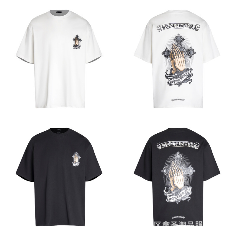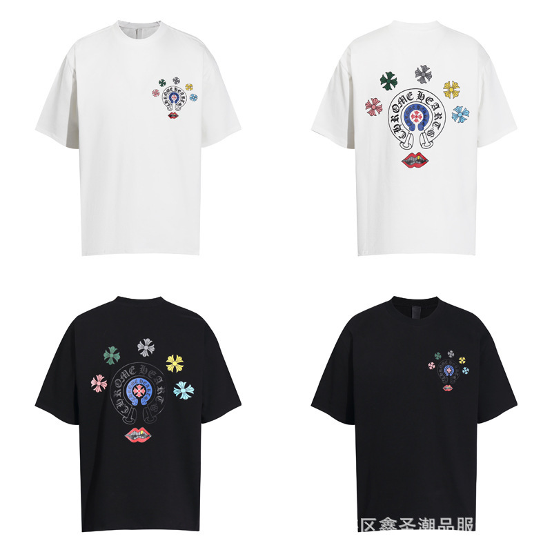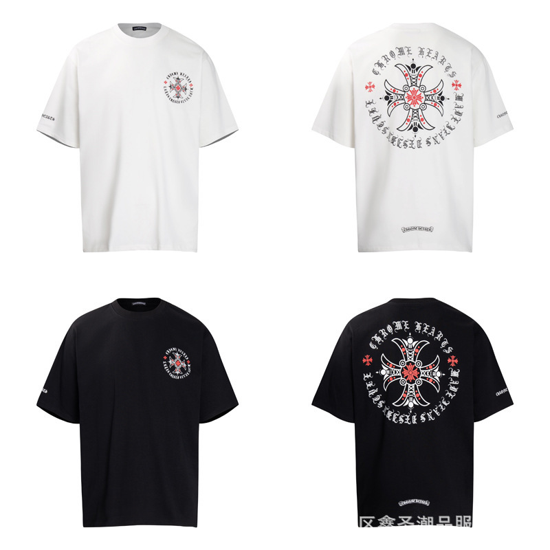 24 국경 수정 판 크롬 하트 컬러 크로스 인쇄 반팔 티셔츠 남성과 여성스토어 가기