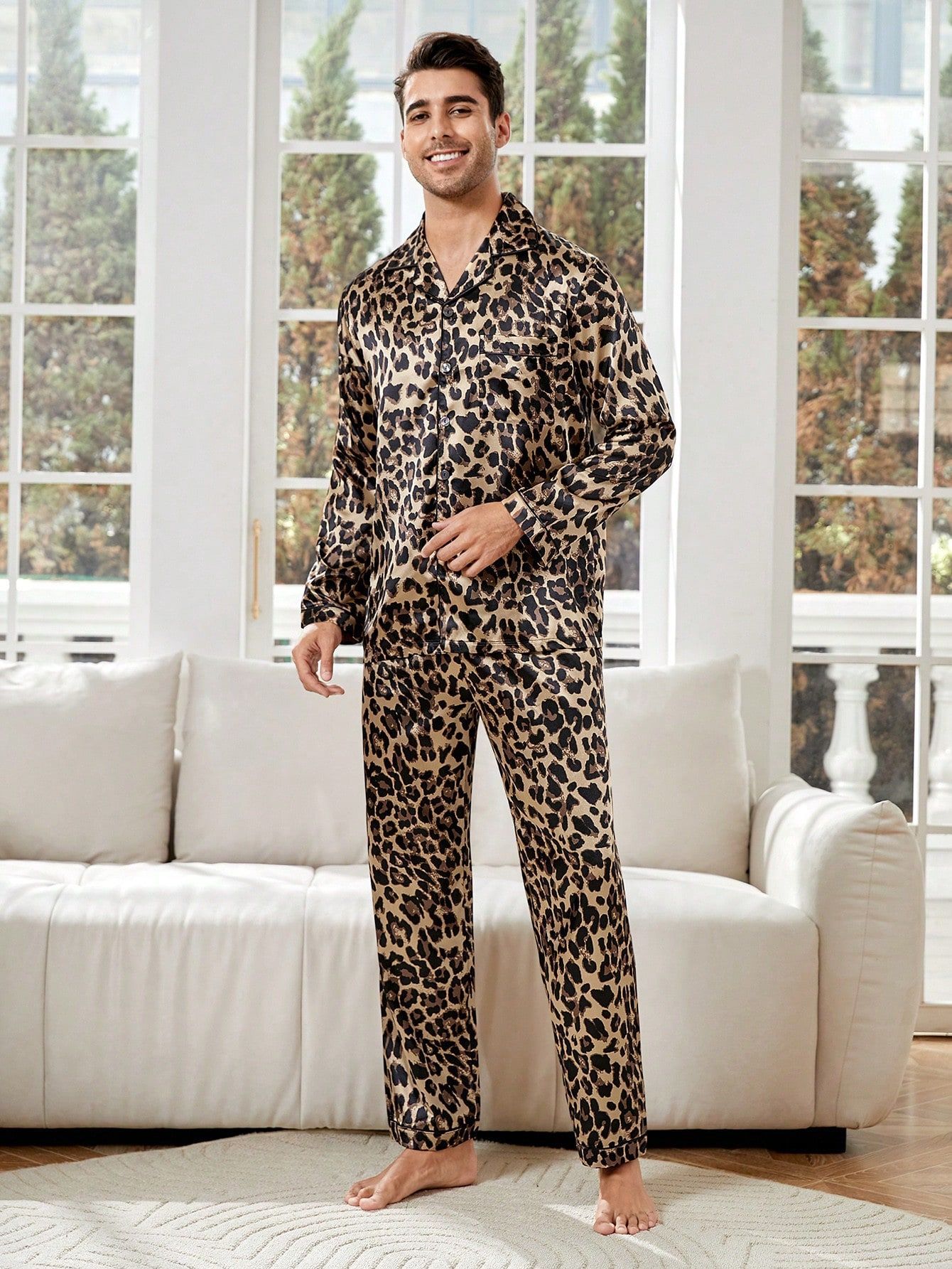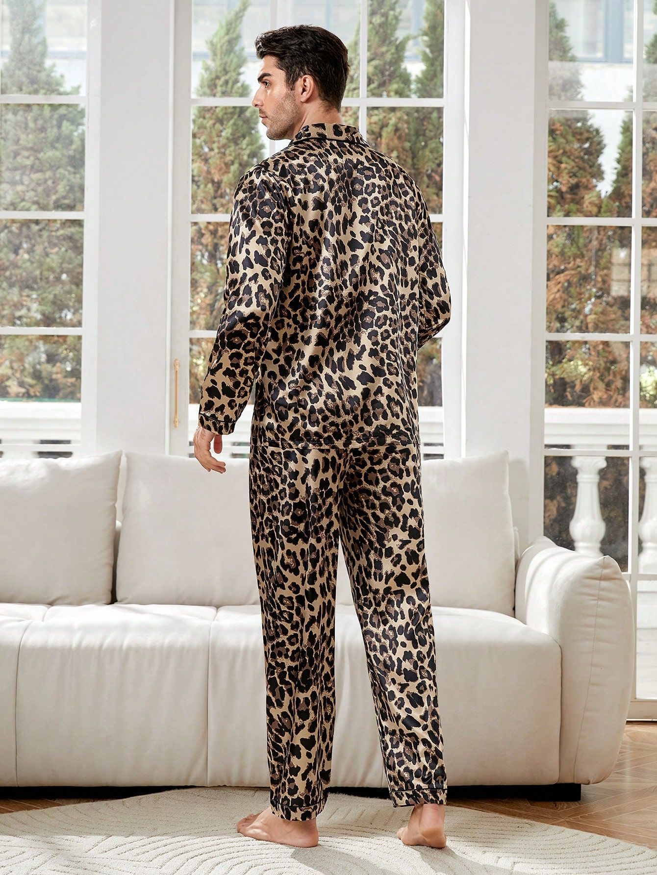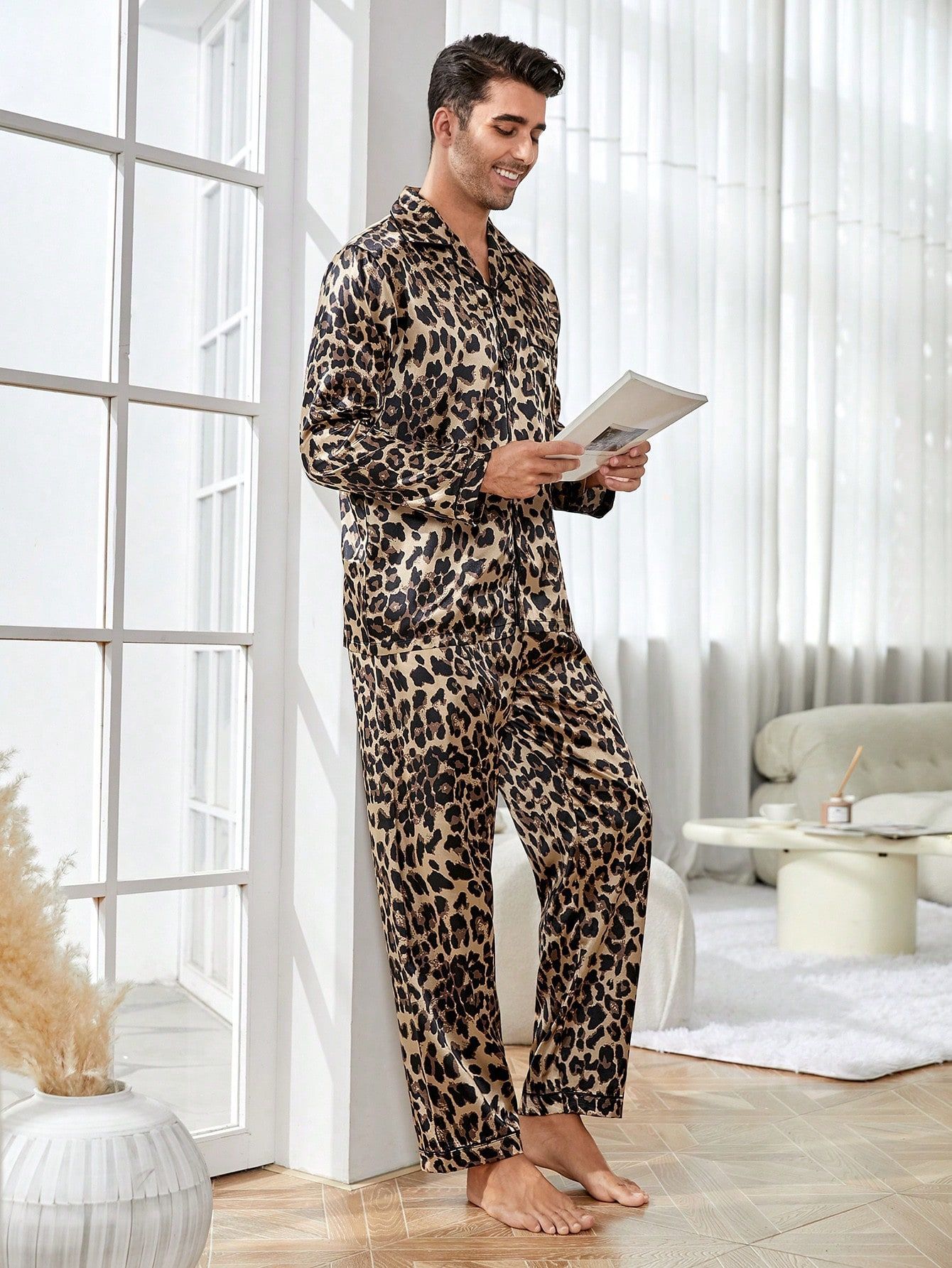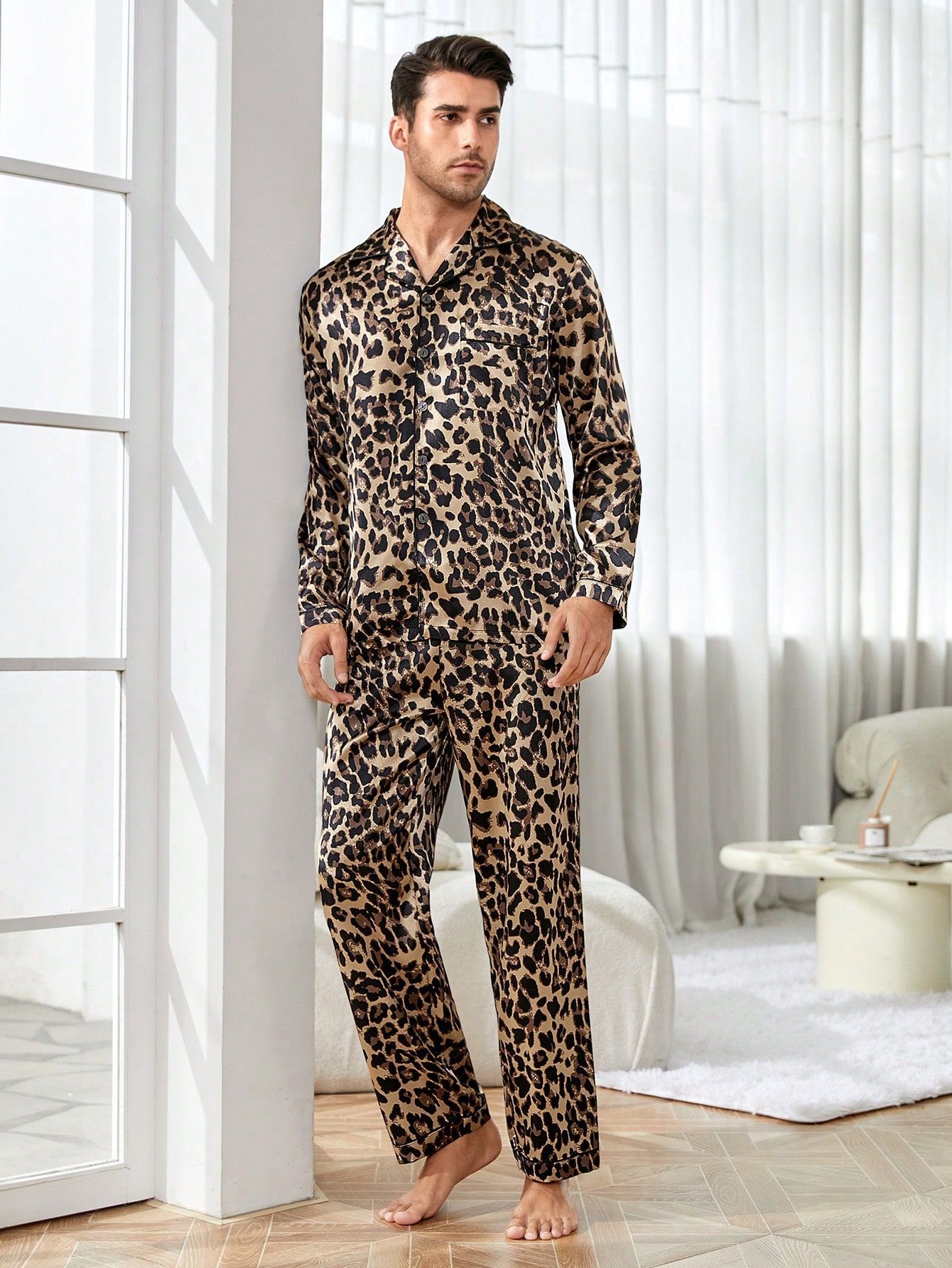 국경 간 대외 무역 러시아 유럽 스타일 복숭아 하트 표범 프린트 고품질 얼음 실크 시뮬레이션 실크 카디건 긴팔 바지 봄, 가을스토어 가기