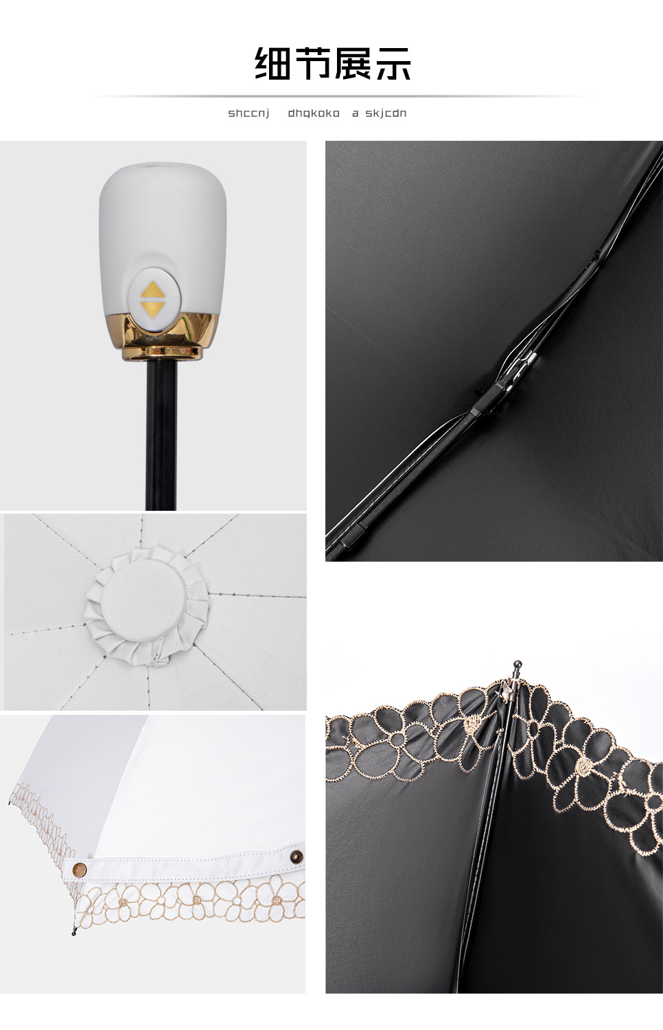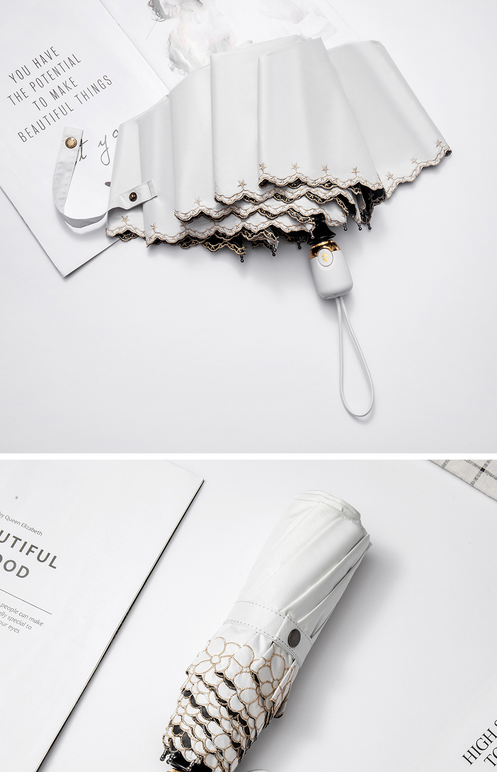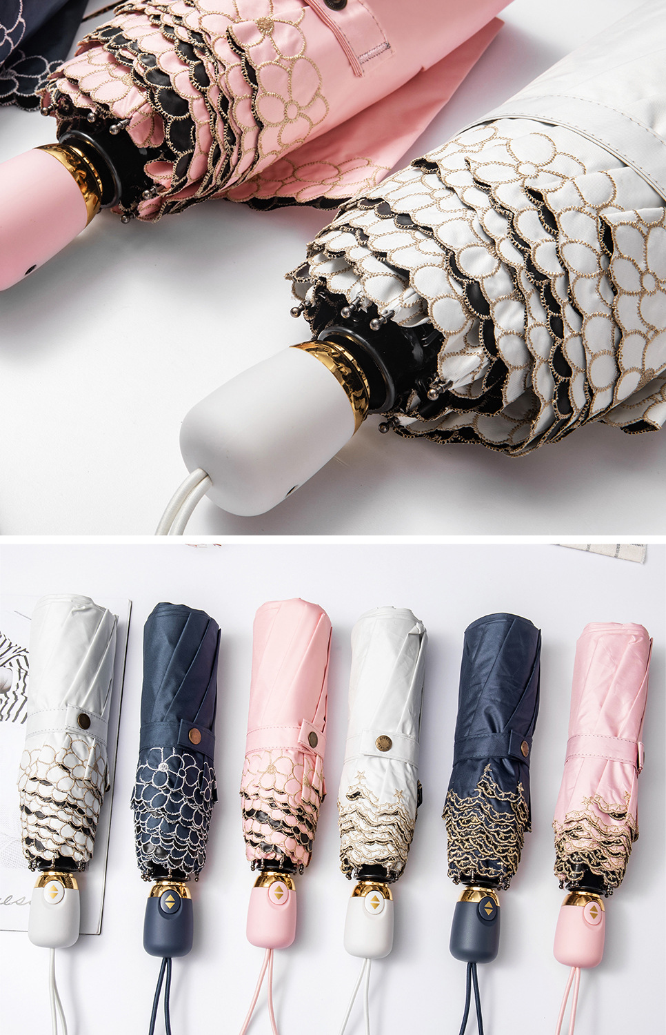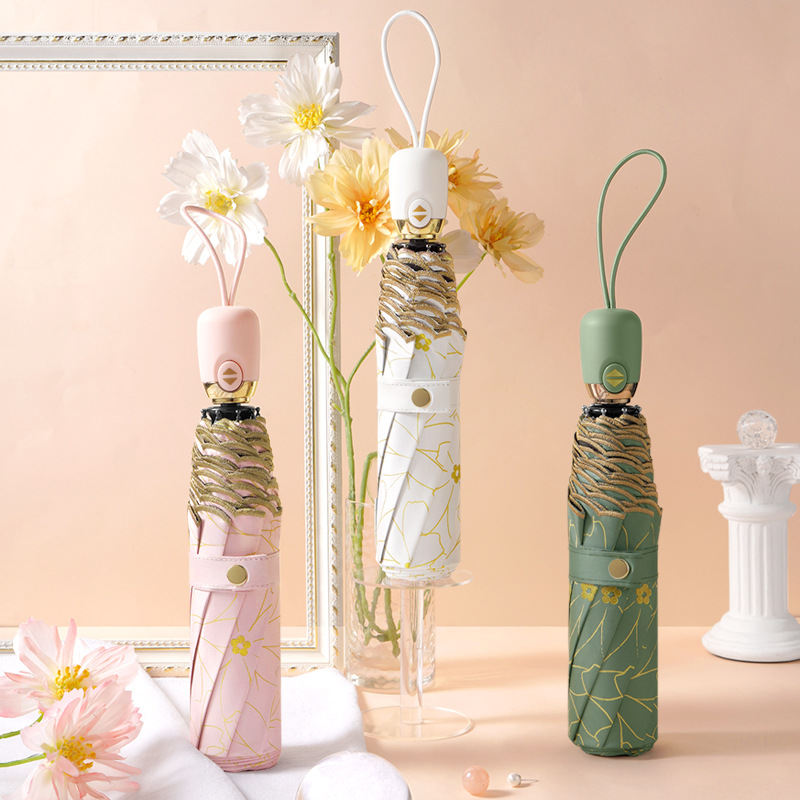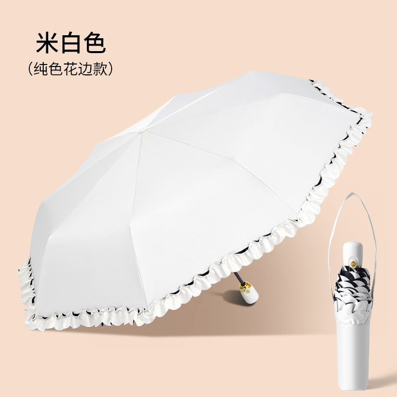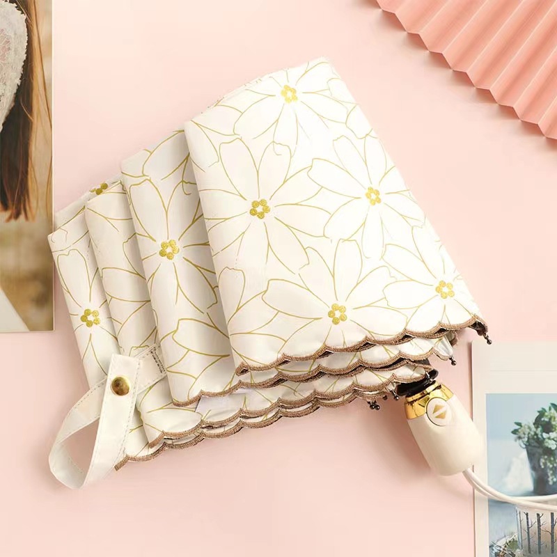 태양 우산 선 스크린 UV 보호 자동 원 버튼 열기 접는 이중 사용 우산 여성의 자수 햇빛 우산