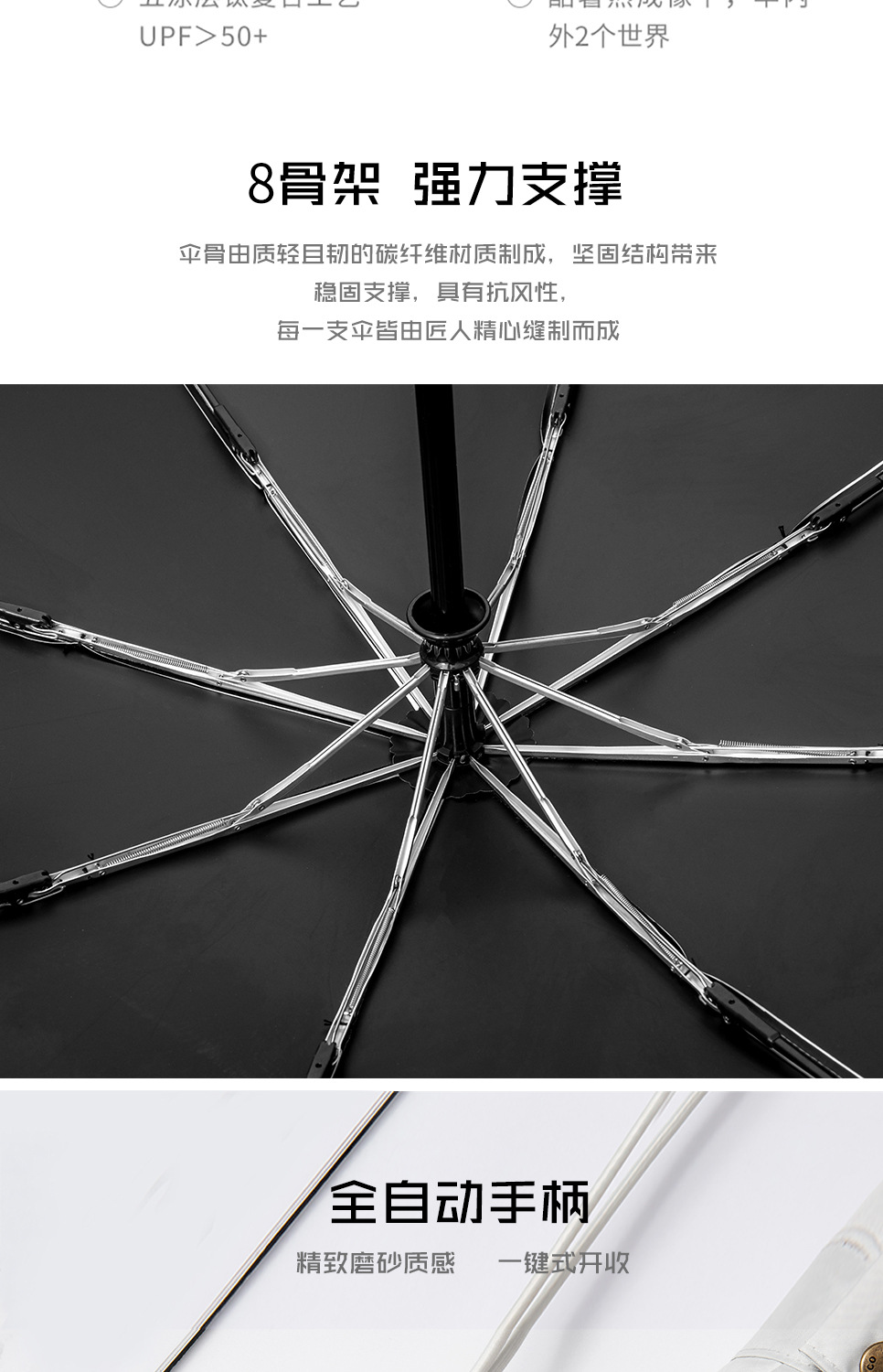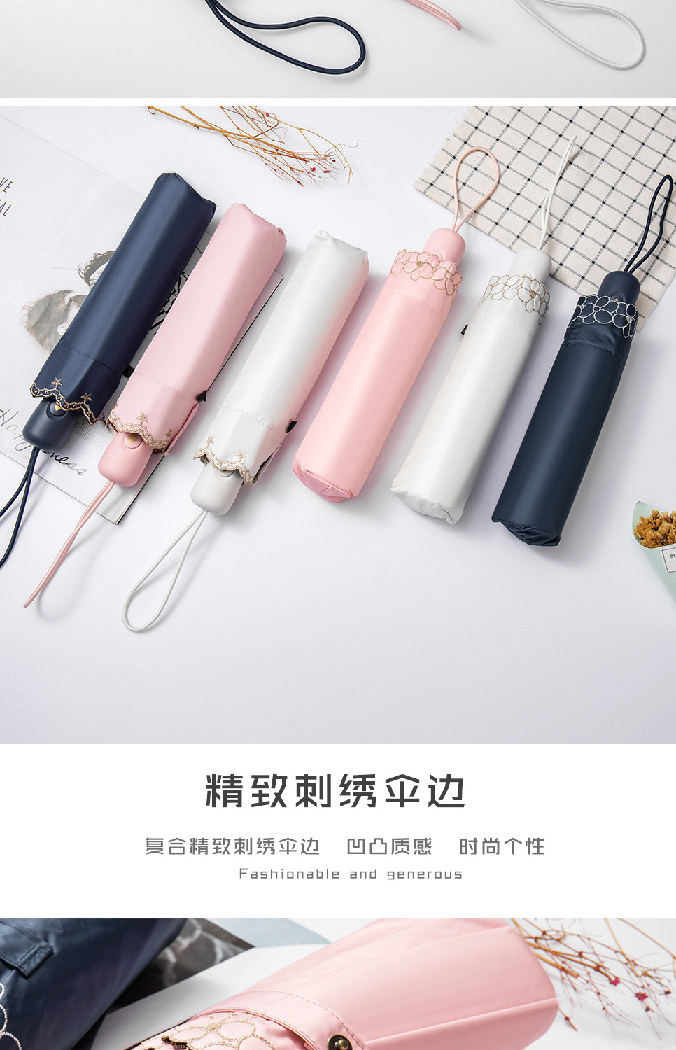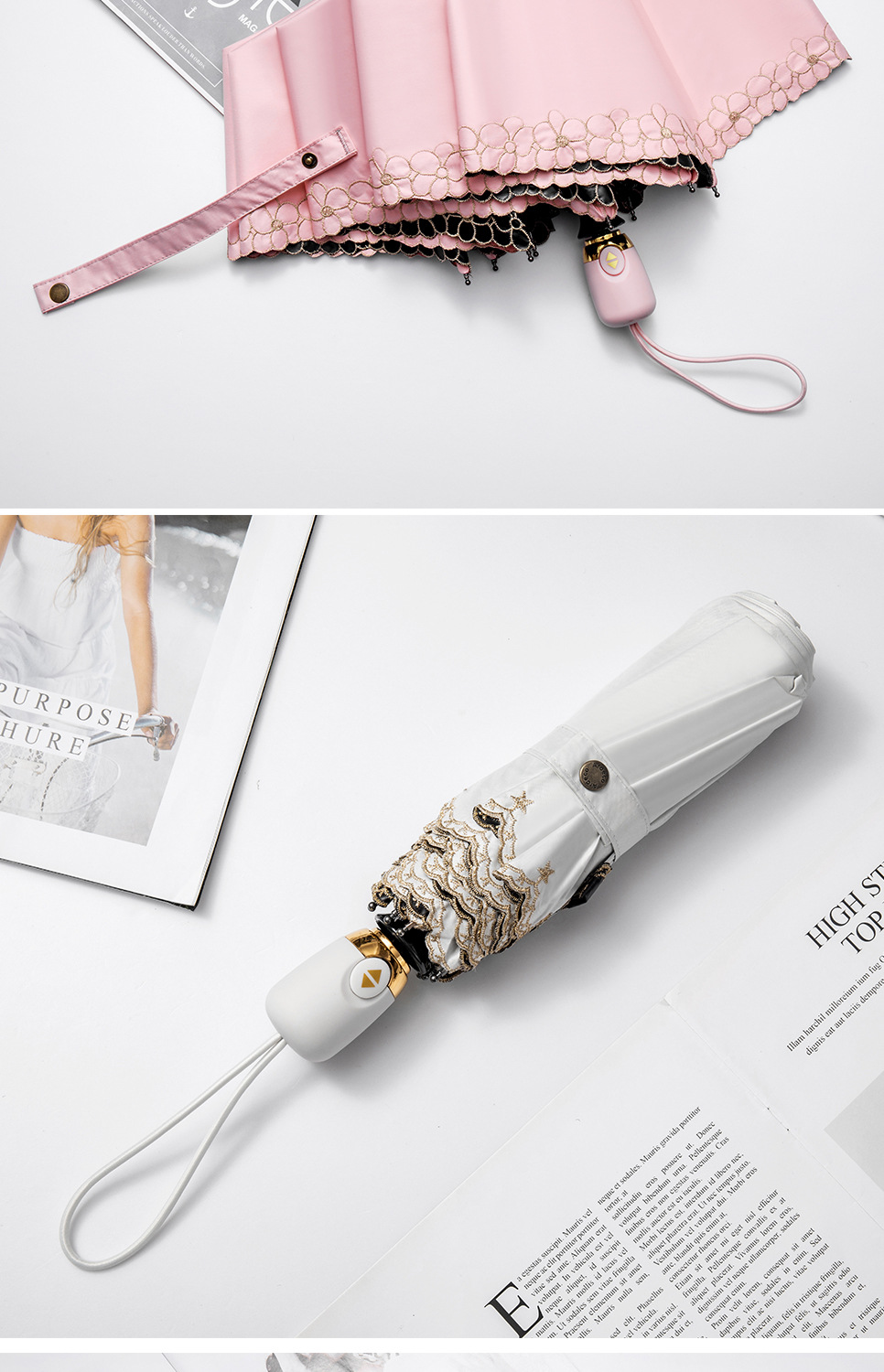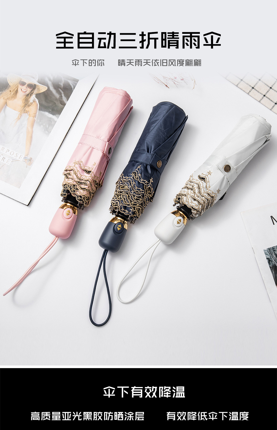 태양 우산 선 스크린 UV 보호 자동 원 버튼 열기 접는 이중 사용 우산 여성의 자수 햇빛 우산