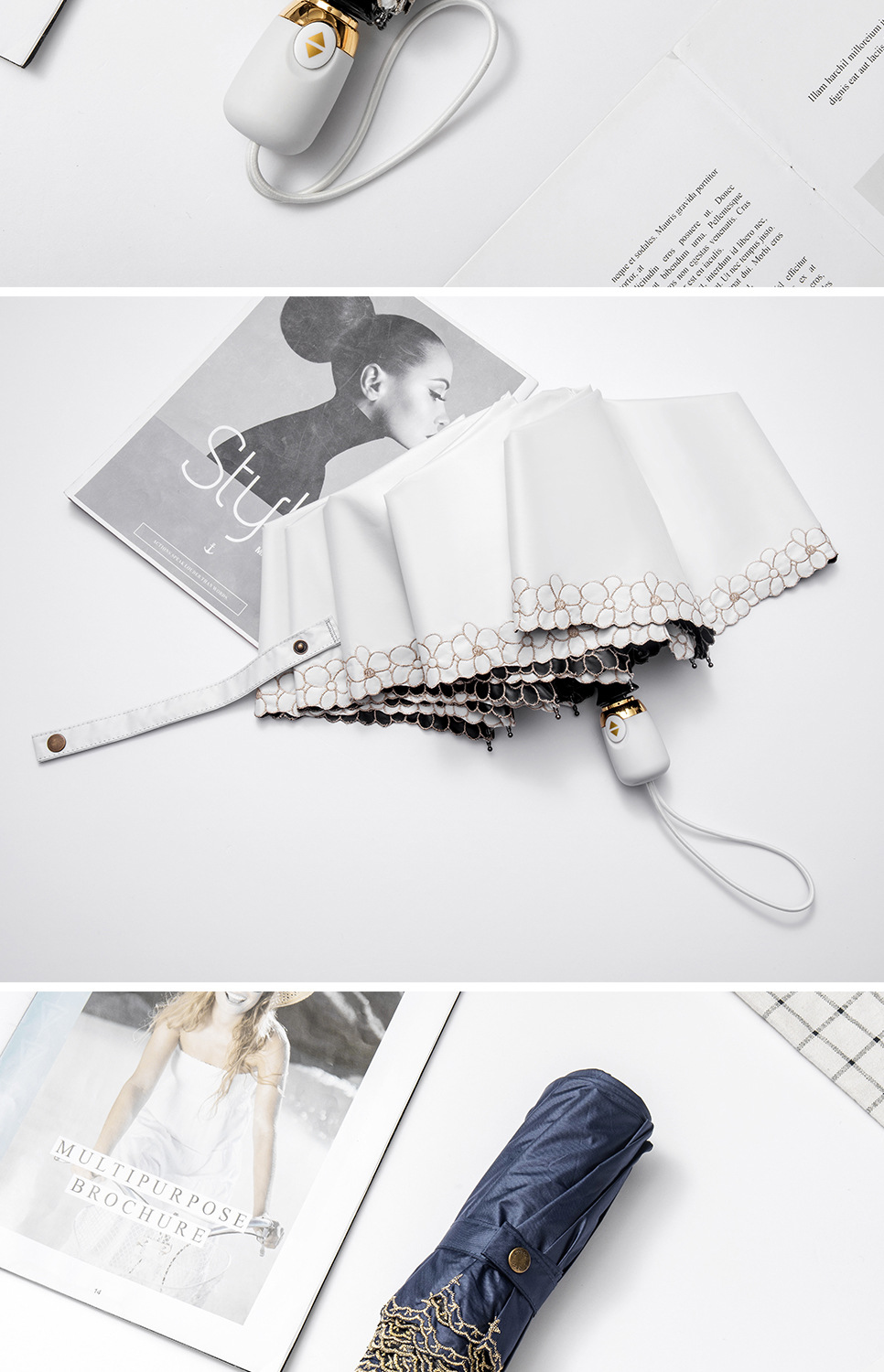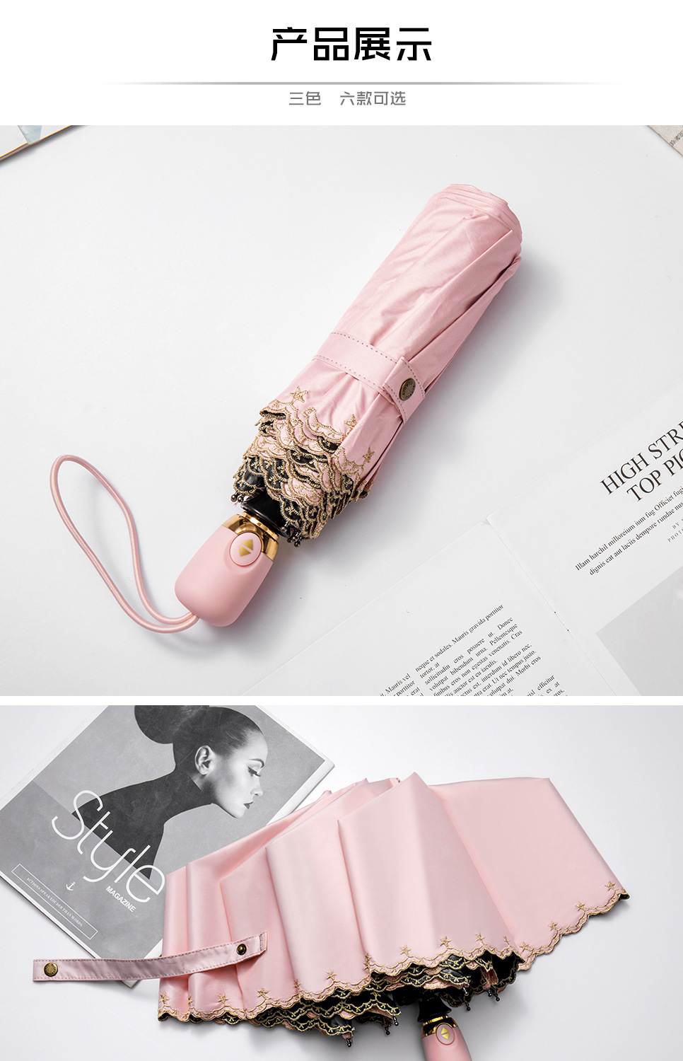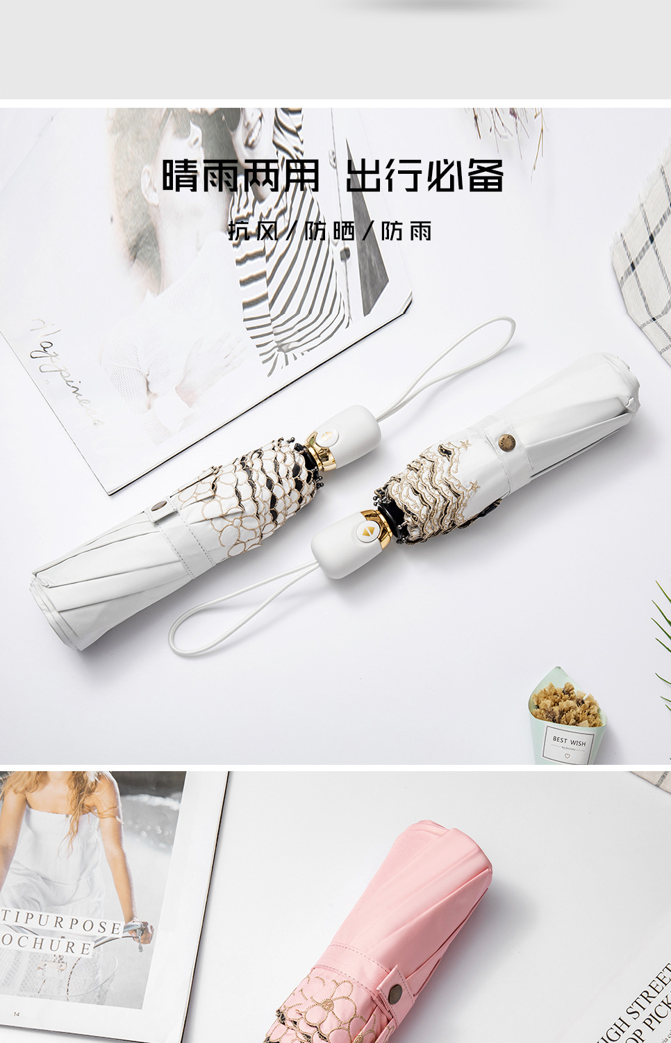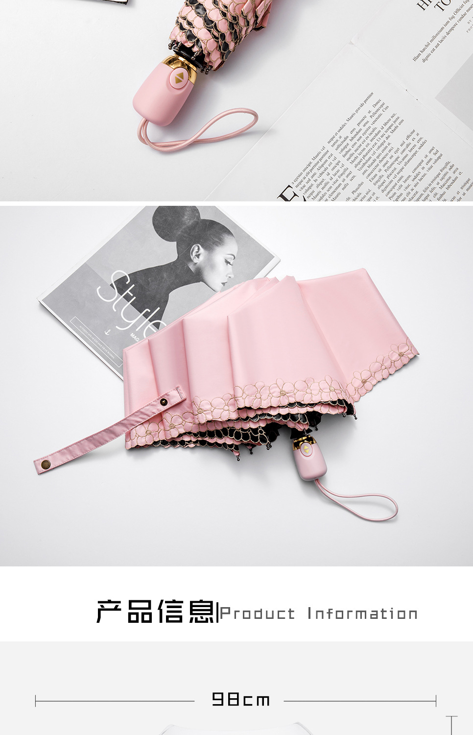태양 우산 선 스크린 UV 보호 자동 원 버튼 열기 접는 이중 사용 우산 여성의 자수 햇빛 우산