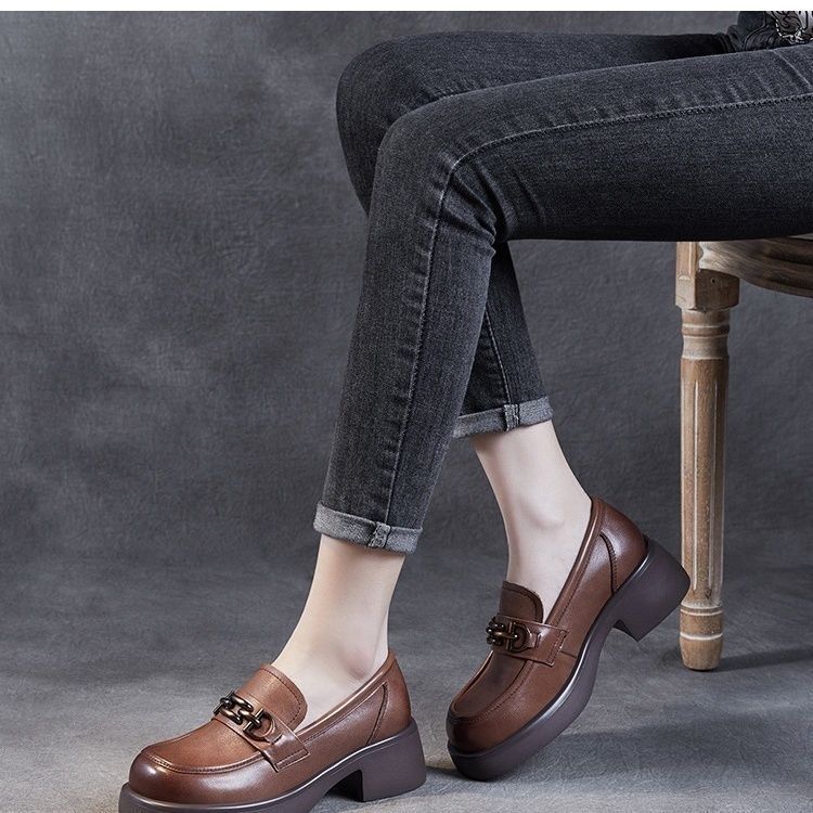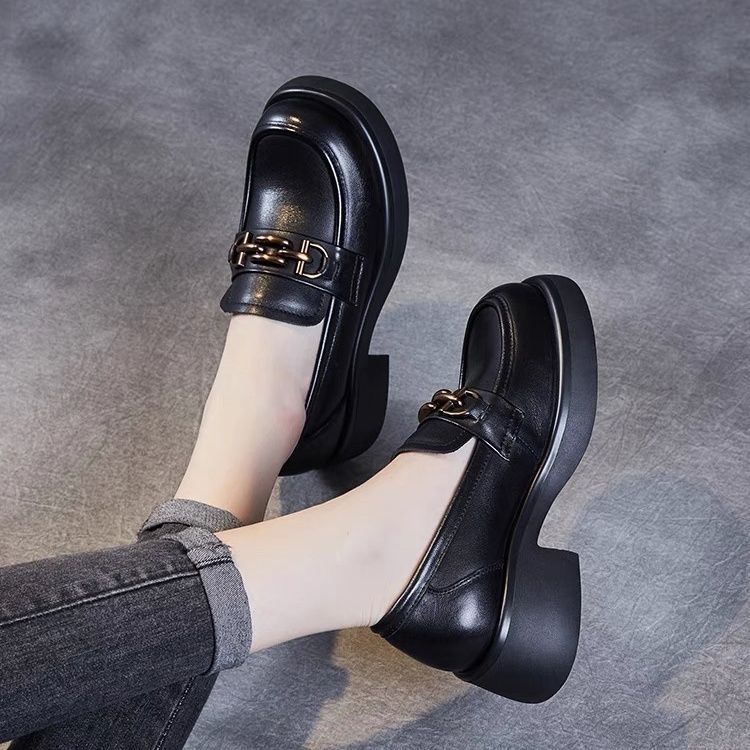 소프트 가죽 틈새 두꺼운 힐 작은 가죽 신발 여성 디자인 영국 스타일 2025 봄 올 매치 슬립 온 러브 싱글 신발스토어 가기