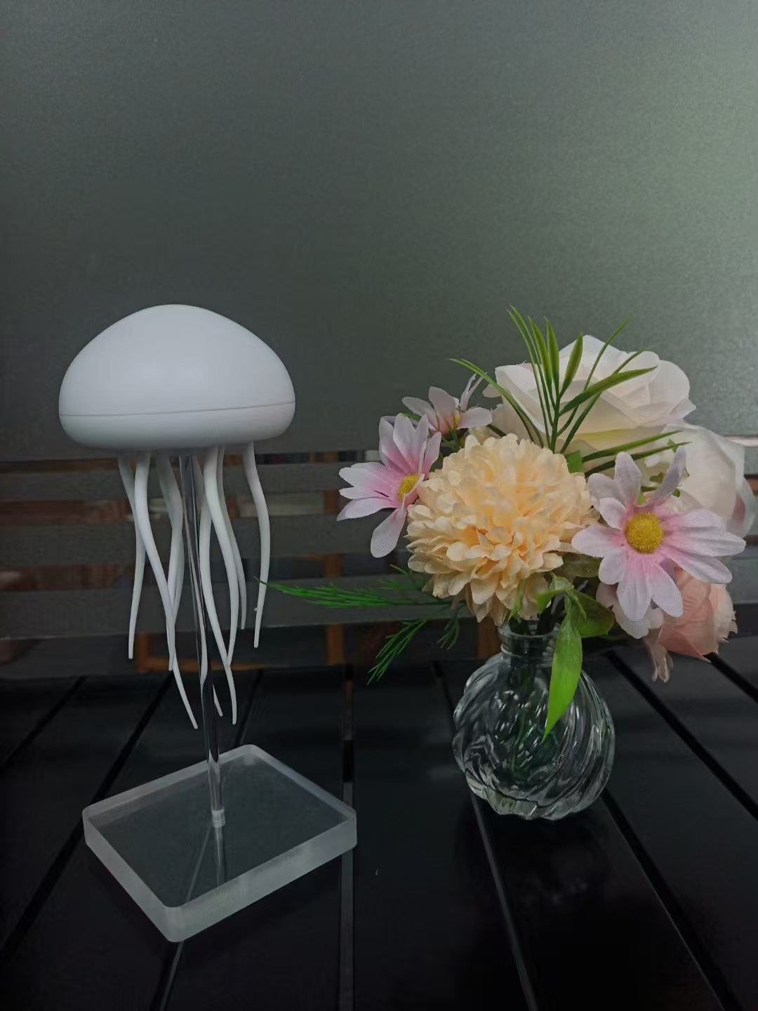 국경 간 버섯 머리 음성 제어 해파리 램프 색 기분 야간 침대 옆 해파리 분위기 램프 매달려 데스크탑 장식품