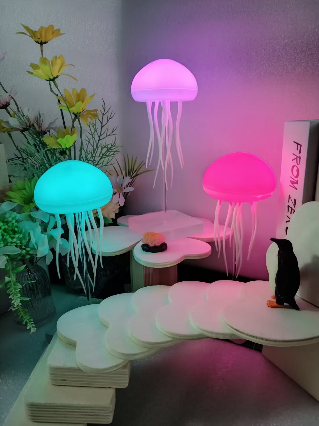 국경 간 버섯 머리 음성 제어 해파리 램프 색 기분 야간 침대 옆 해파리 분위기 램프 매달려 데스크탑 장식품스토어 가기
