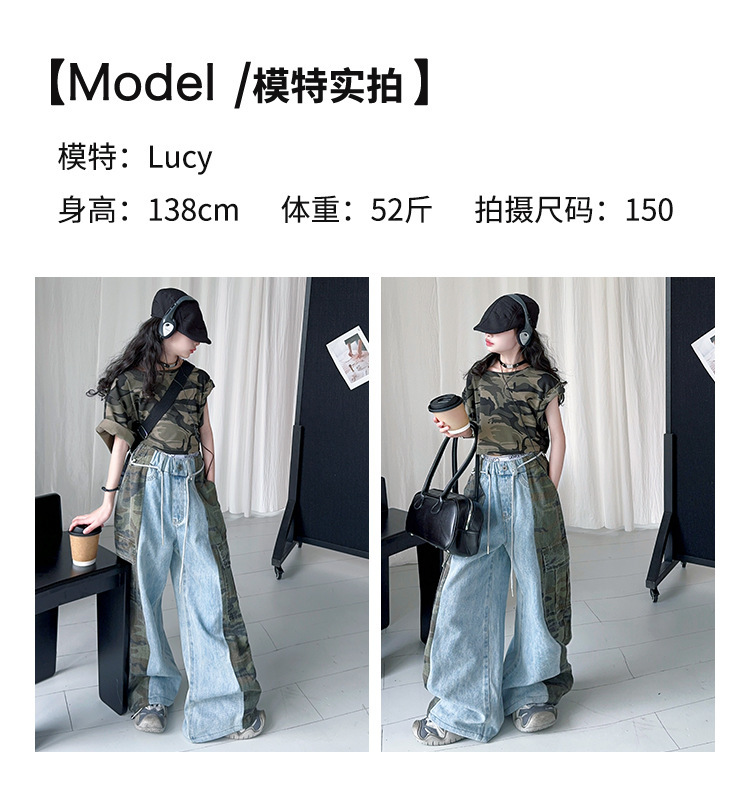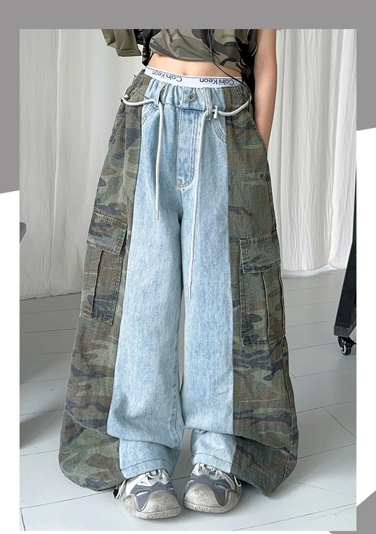여아용 2025 봄 여름 작업복 바지 아메리칸 캐주얼 데님 스플라이싱 스트리트 댄스 스타일 기능성 와이드 레그 스포츠 롱 팬츠스토어 가기