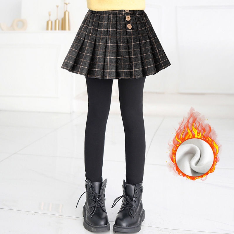 소녀 기모 레깅스 가을 겨울 치마 새 어린이 가짜 2 피스 스커트 주름 치마 큰 어린이 두꺼운 바지