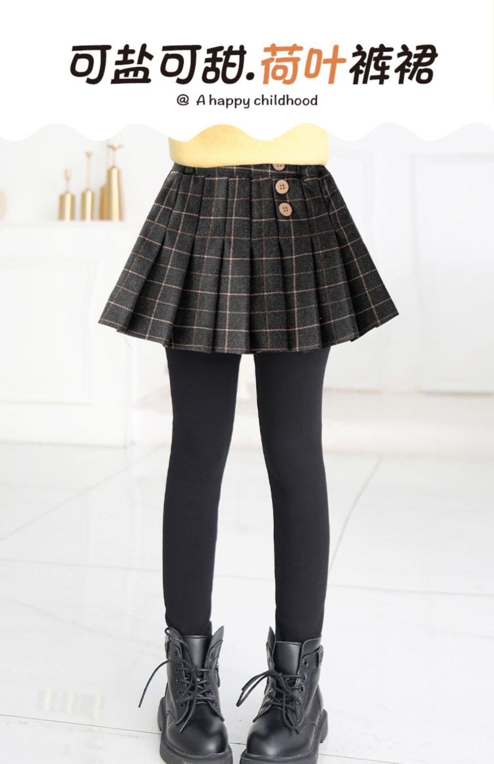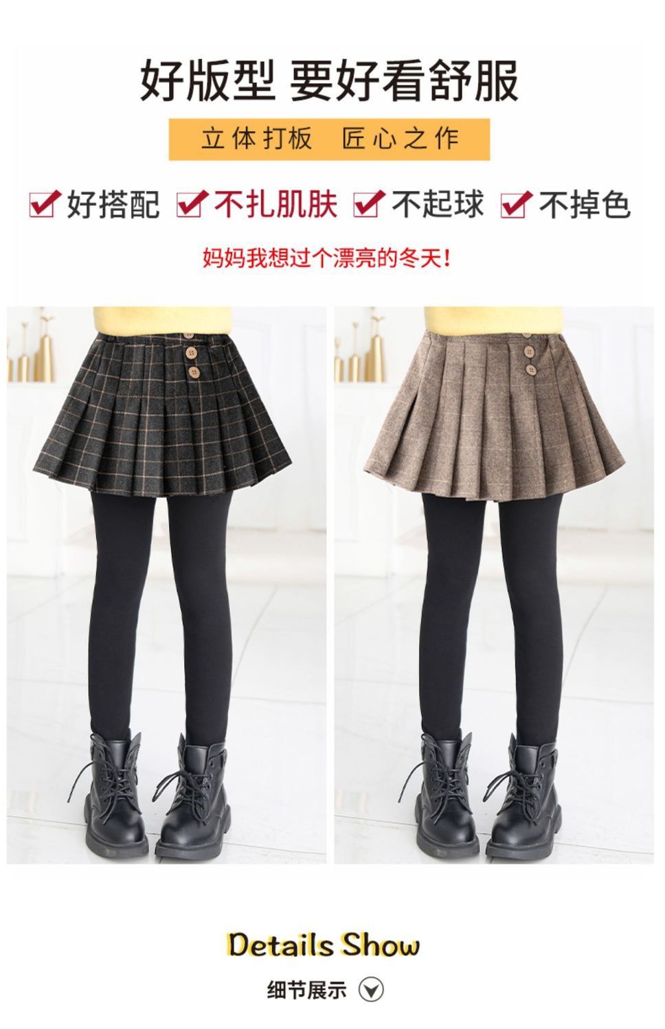 소녀 기모 레깅스 가을 겨울 치마 새 어린이 가짜 2 피스 스커트 주름 치마 큰 어린이 두꺼운 바지스토어 가기