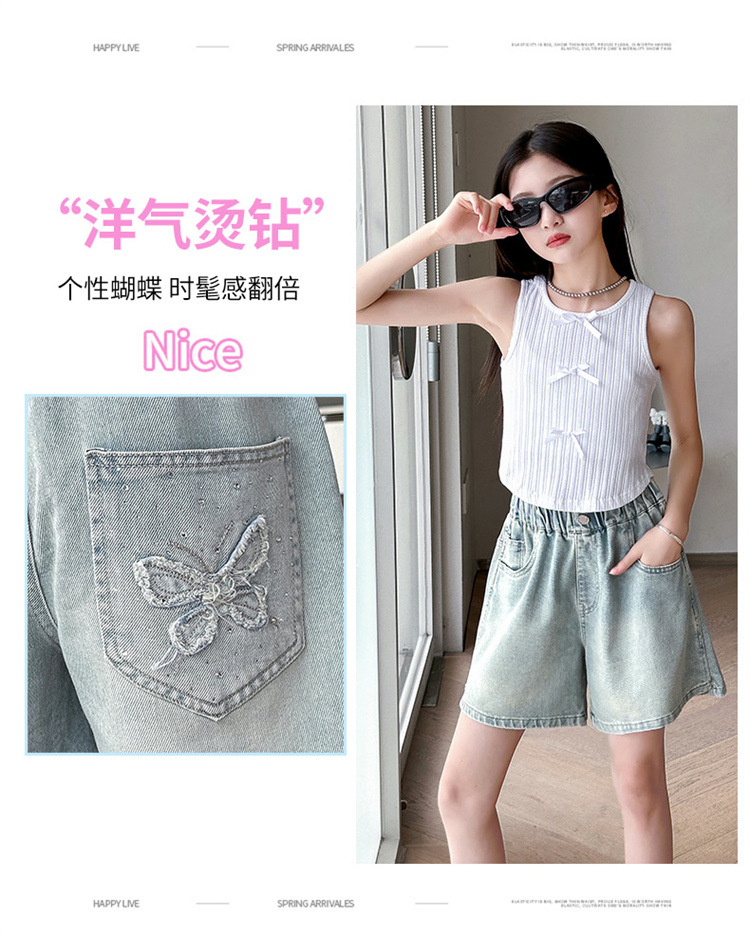 여자 데님 반바지 2025 여름 새로운 어린이 유행 서양식 올매치 핫 라인스톤 제작 유행 핫 팬츠스토어 가기