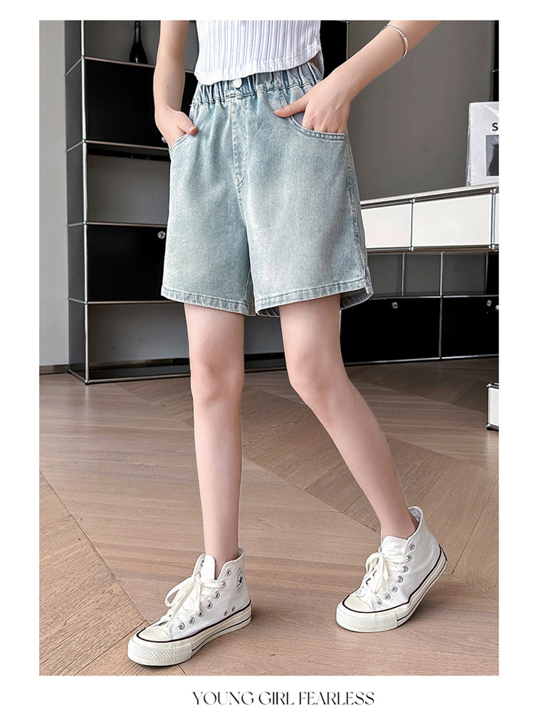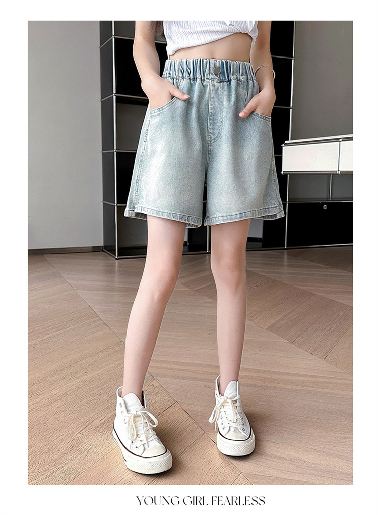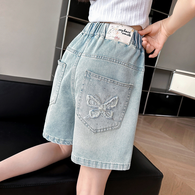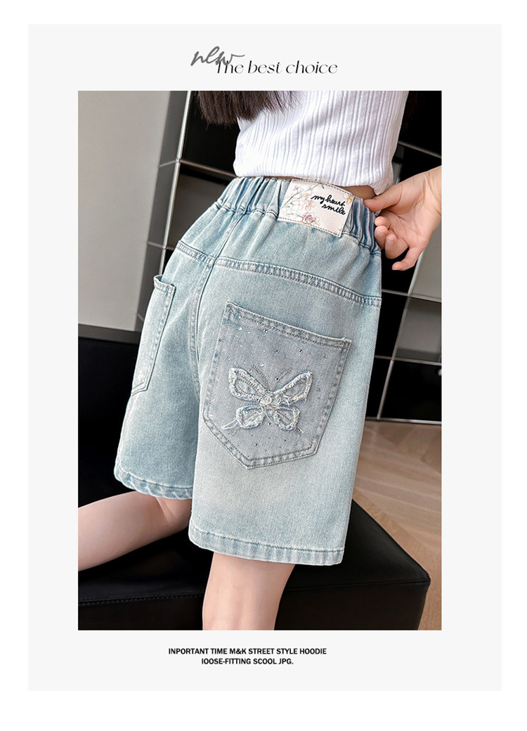여자 데님 반바지 2025 여름 새로운 어린이 유행 서양식 올매치 핫 라인스톤 제작 유행 핫 팬츠