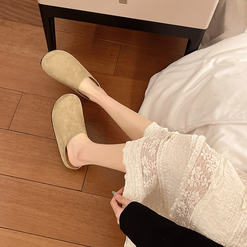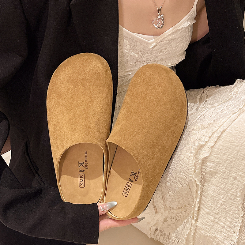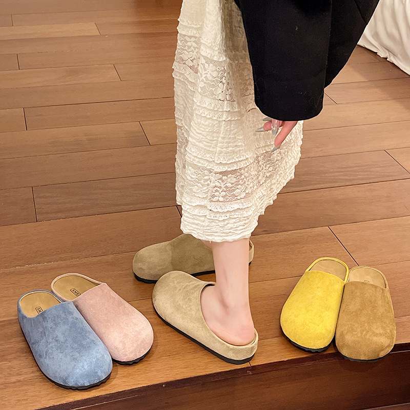 플랫 발가락 미끄럼 반 슬리퍼 여성용 아우터웨어 2025 새 봄 슬립 온 게으른 뮬러 버켄 신발