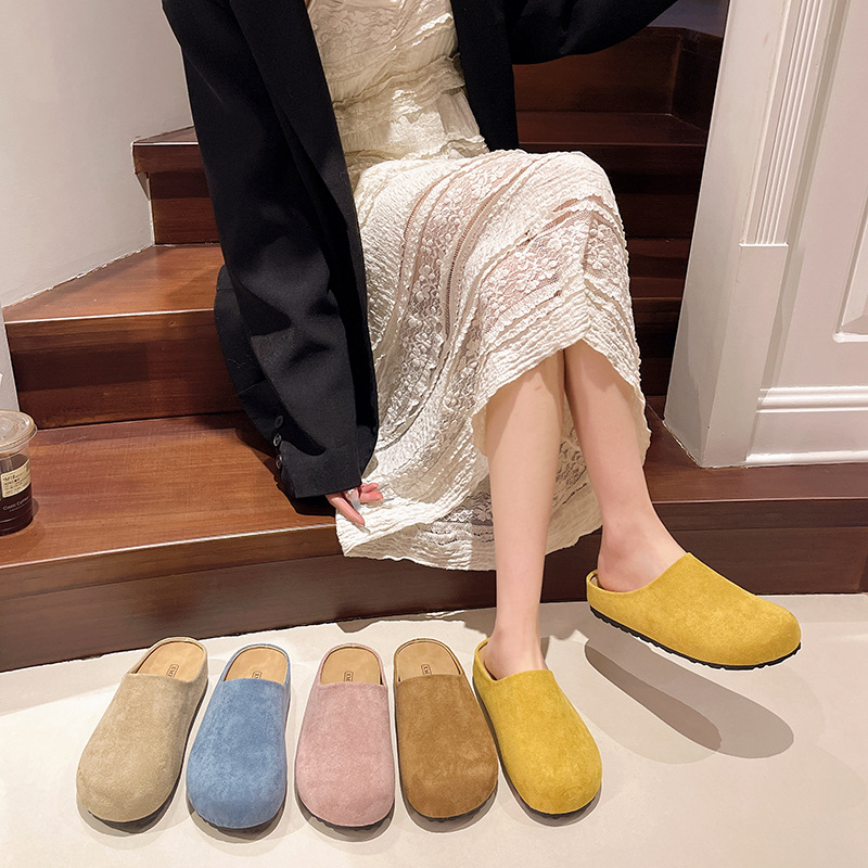 플랫 발가락 미끄럼 반 슬리퍼 여성용 아우터웨어 2025 새 봄 슬립 온 게으른 뮬러 버켄 신발스토어 가기