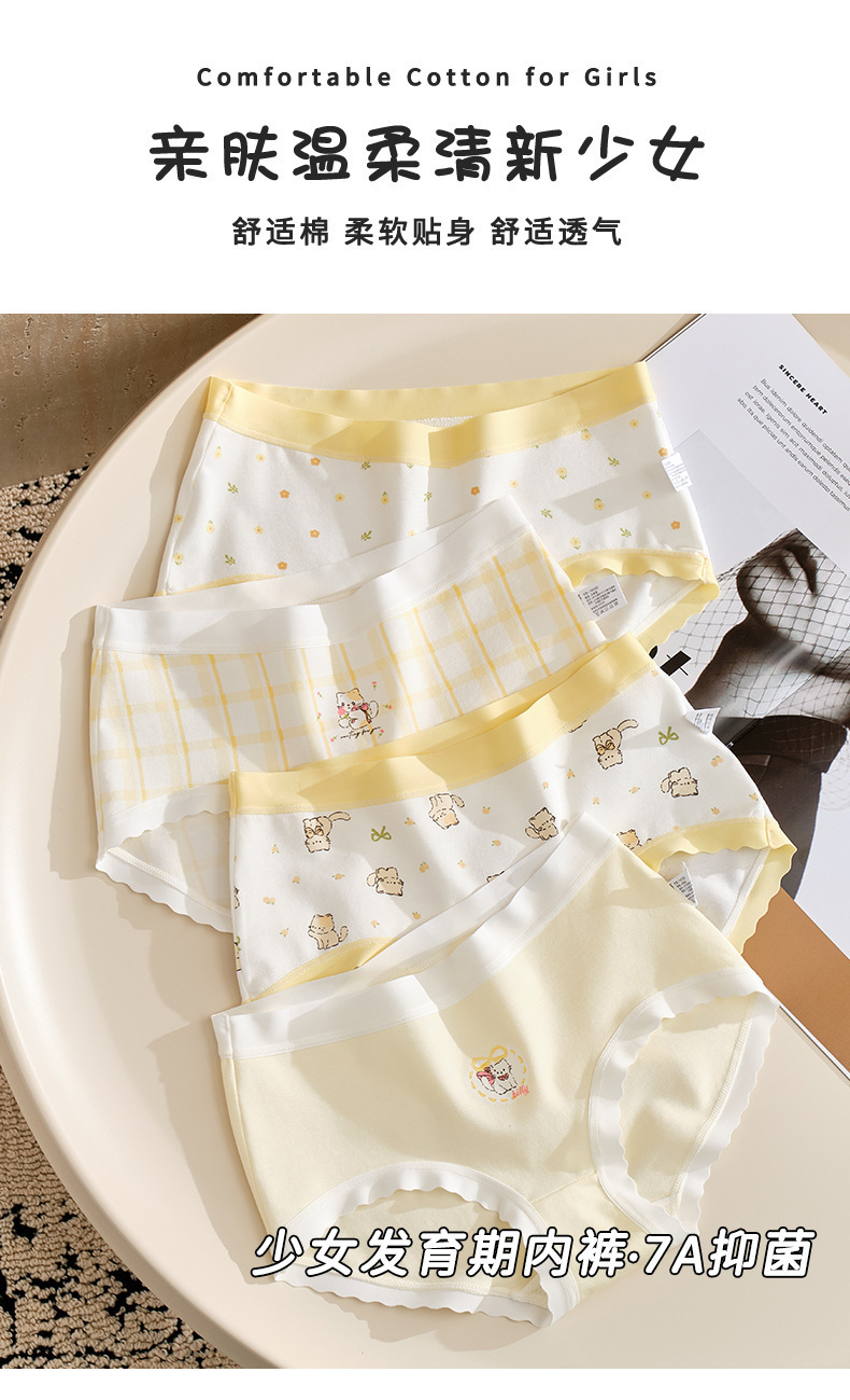 여아용 아동 속옷, 항균 가랑이, A급 면, 여아, 중학생 및 고등학생, 무봉제 여름용 얇은 힙 커버 팬티스토어 가기