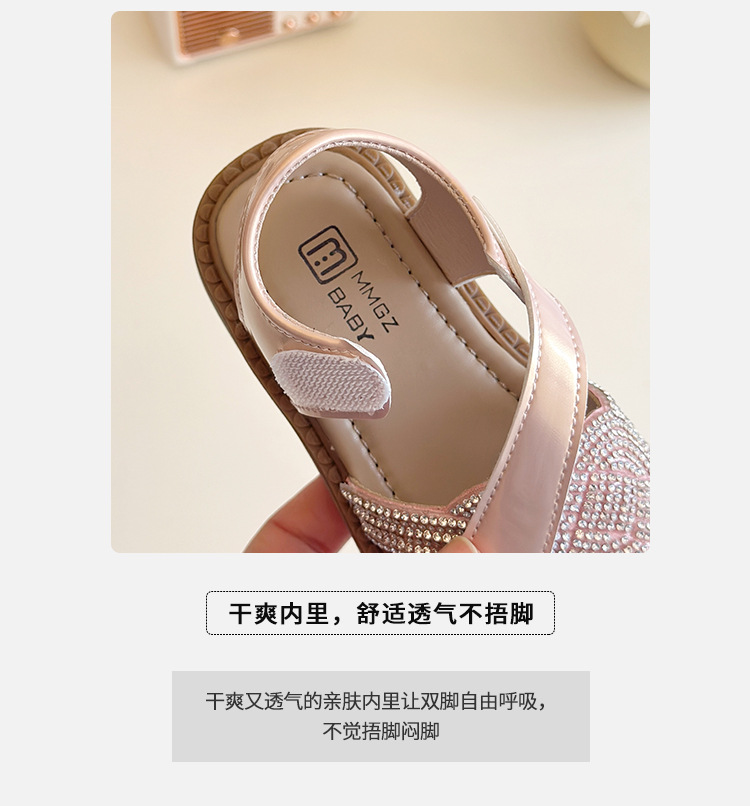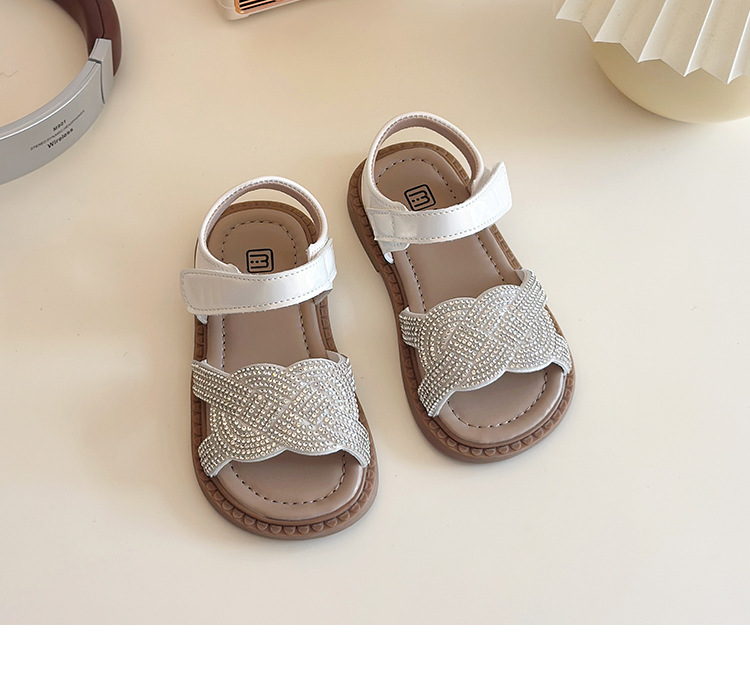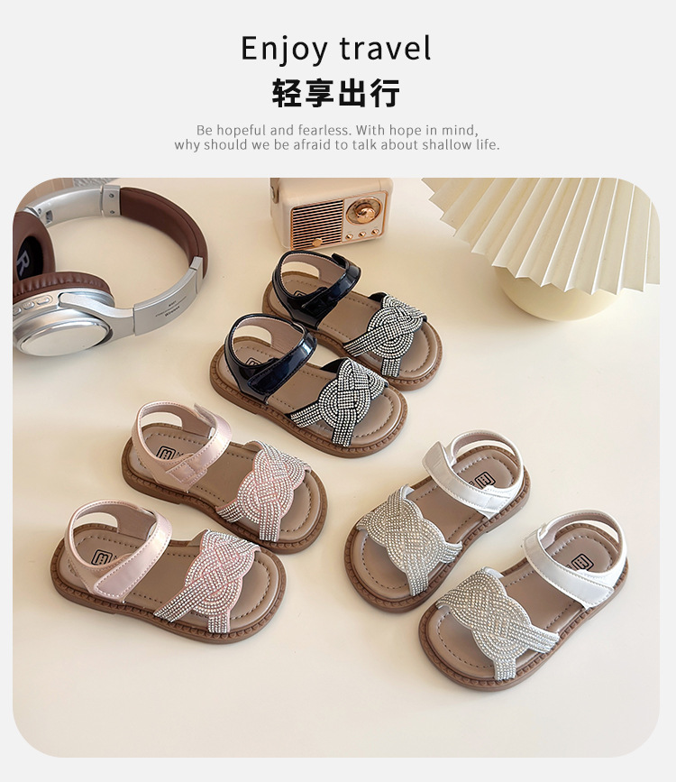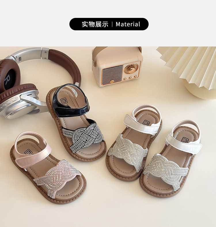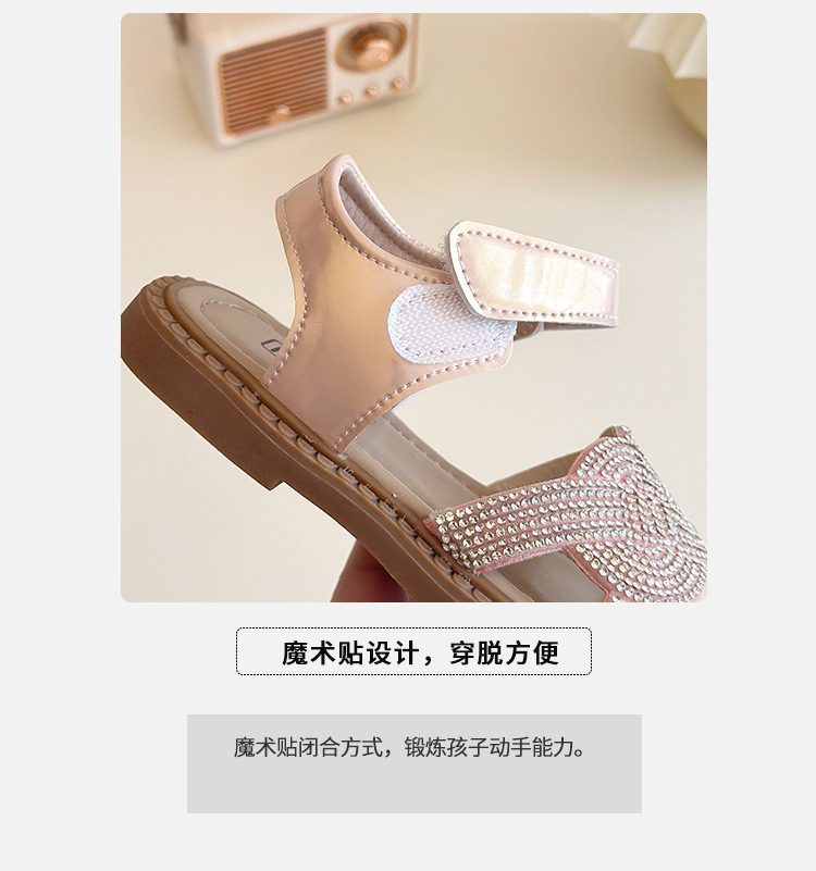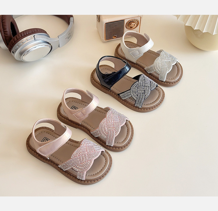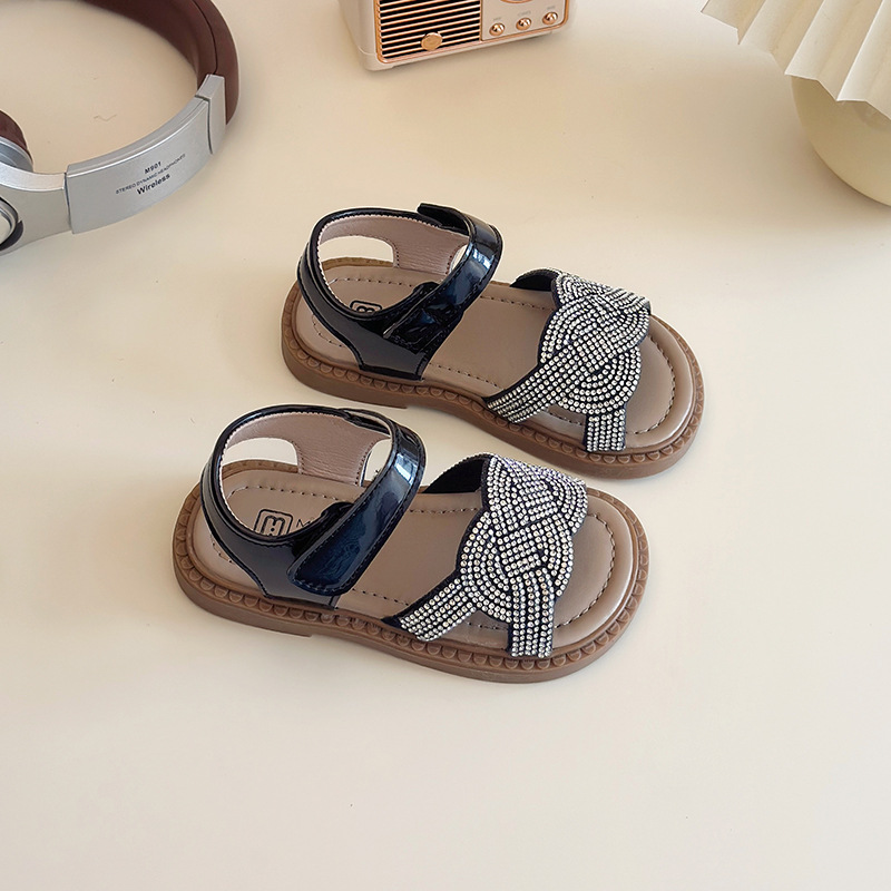 소녀 라인스톤 샌들 2025 여름 새로운 어린이 세련된 공주 신발 어린 소녀 오픈 발가락 비치 신발 아기 신발스토어 가기