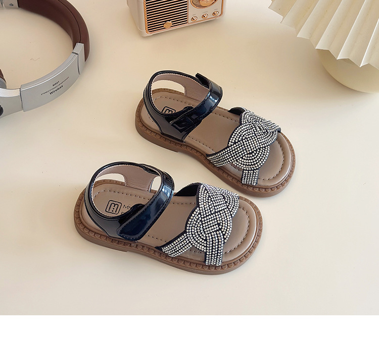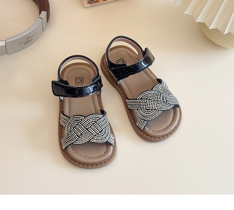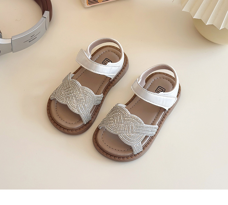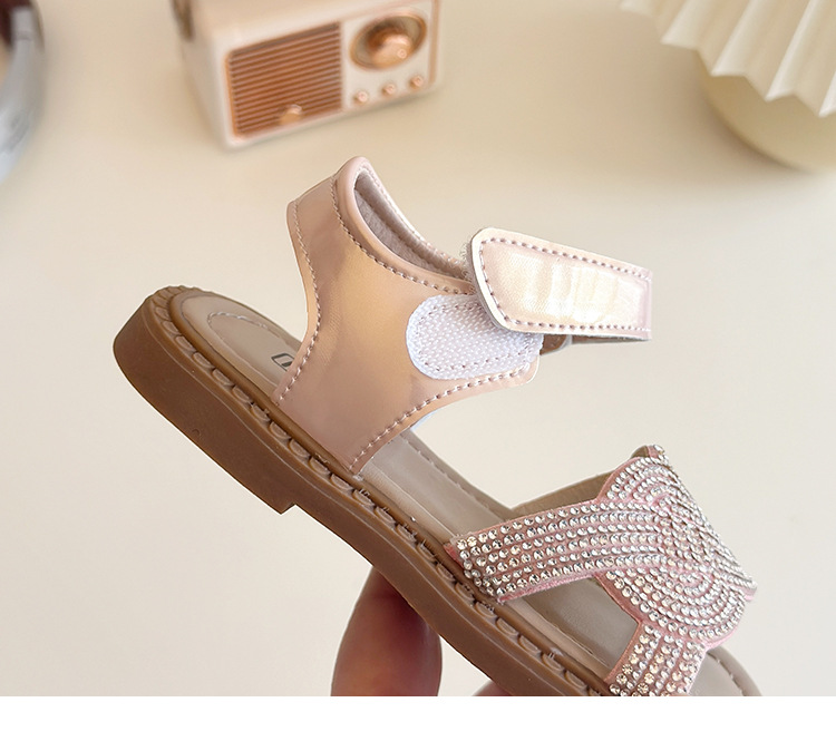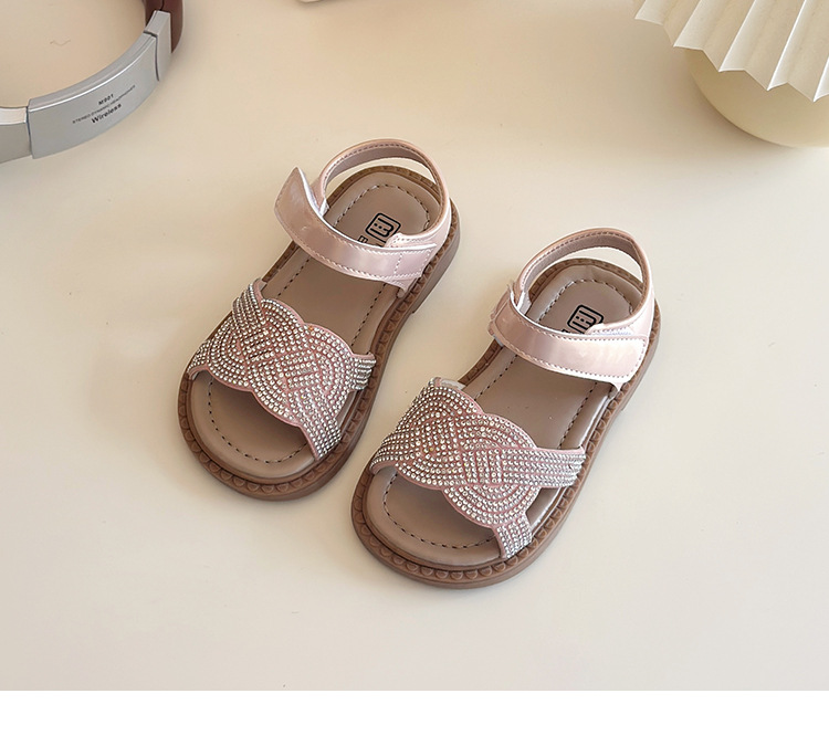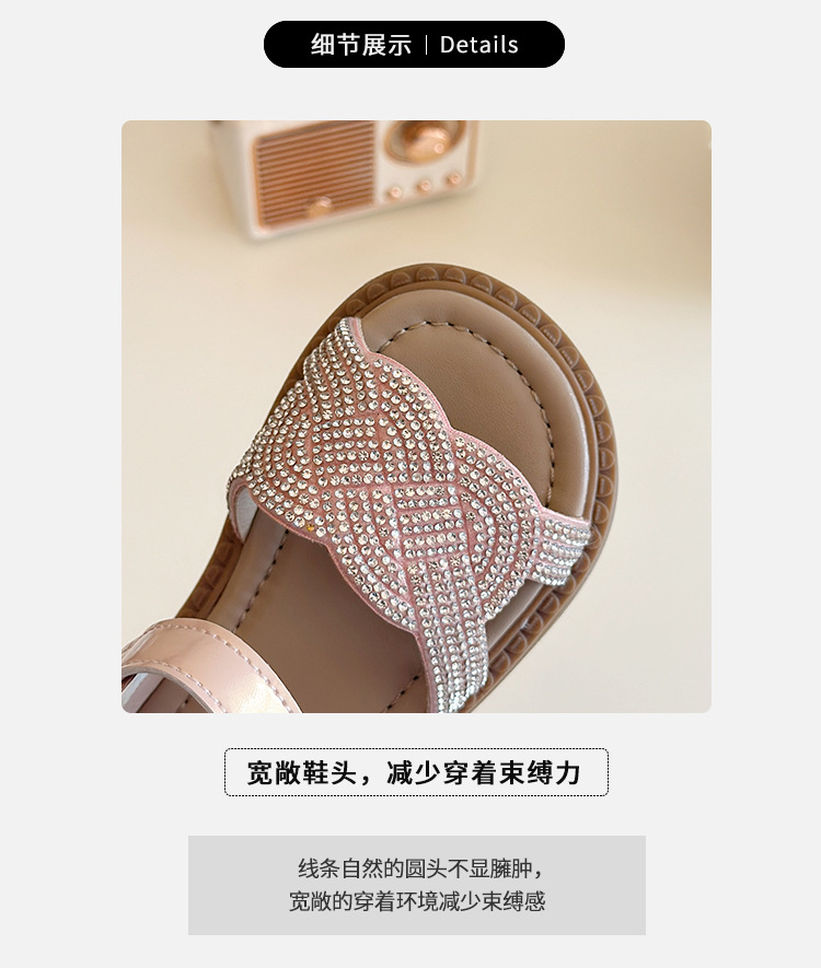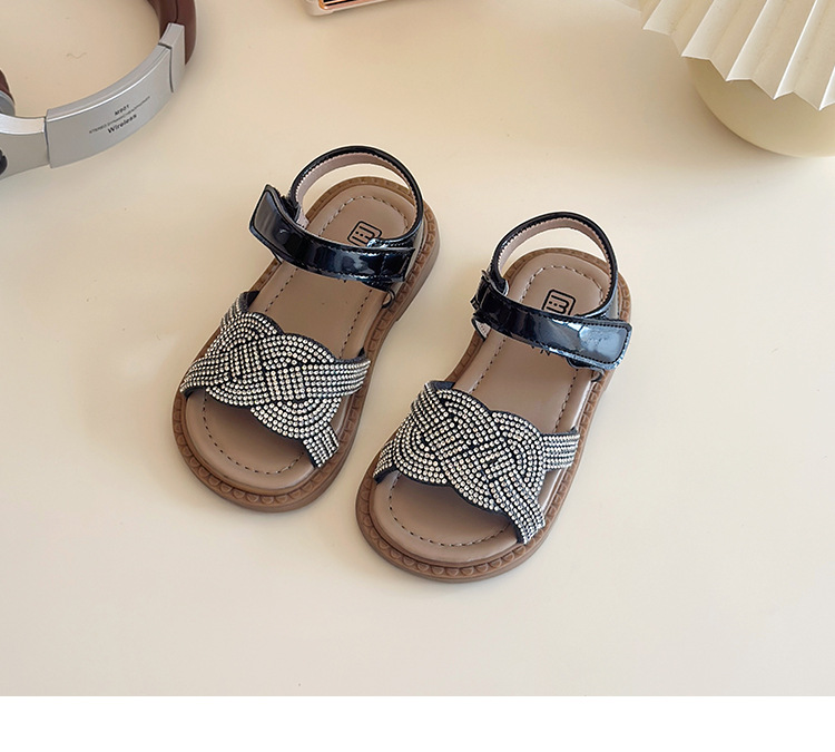 소녀 라인스톤 샌들 2025 여름 새로운 어린이 세련된 공주 신발 어린 소녀 오픈 발가락 비치 신발 아기 신발스토어 가기