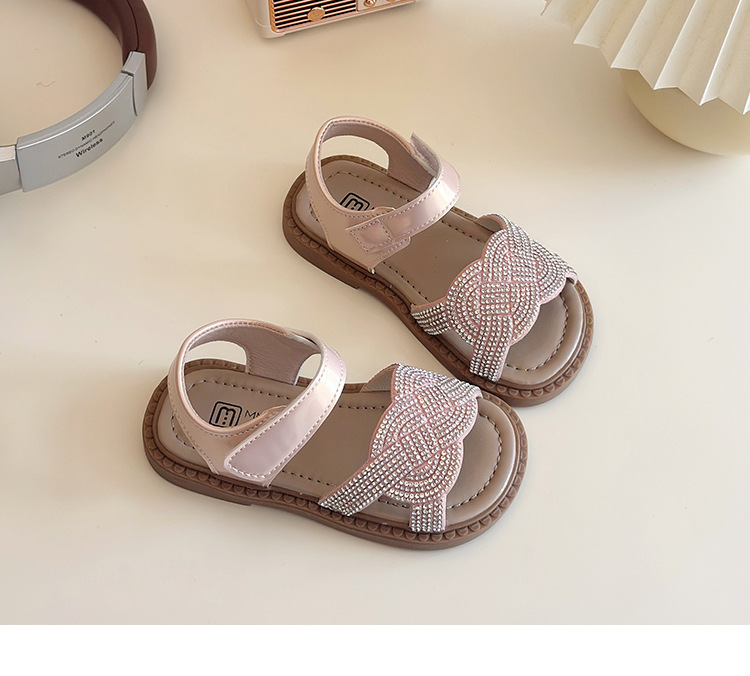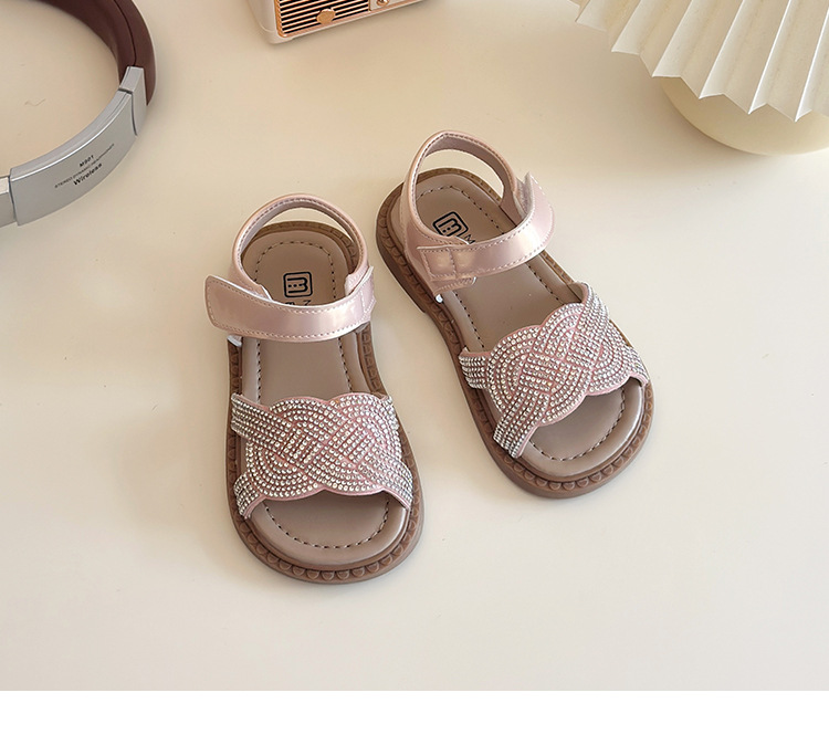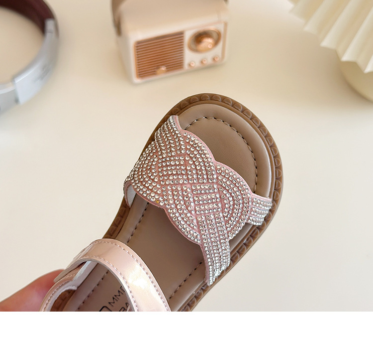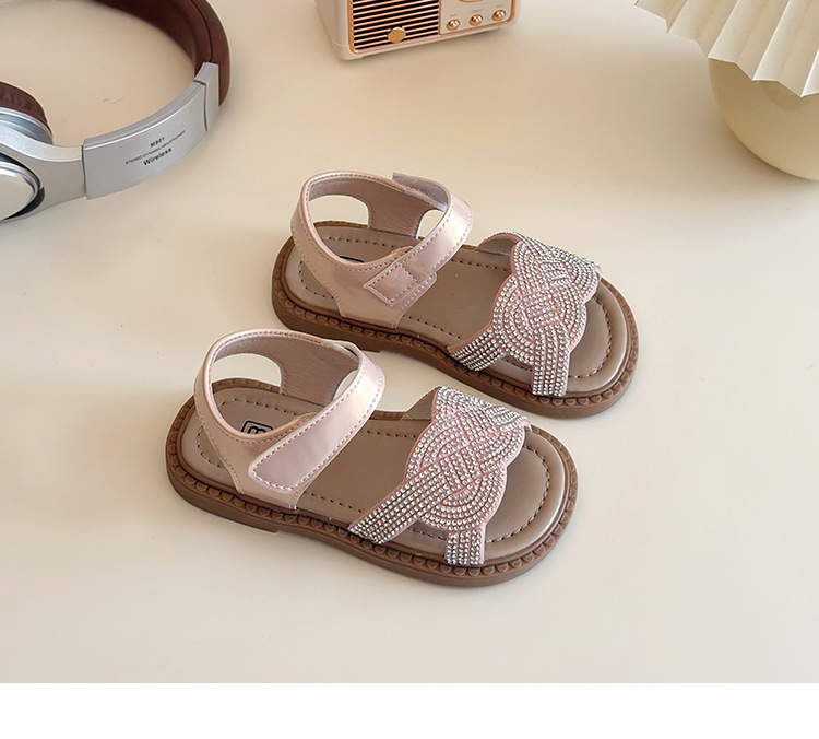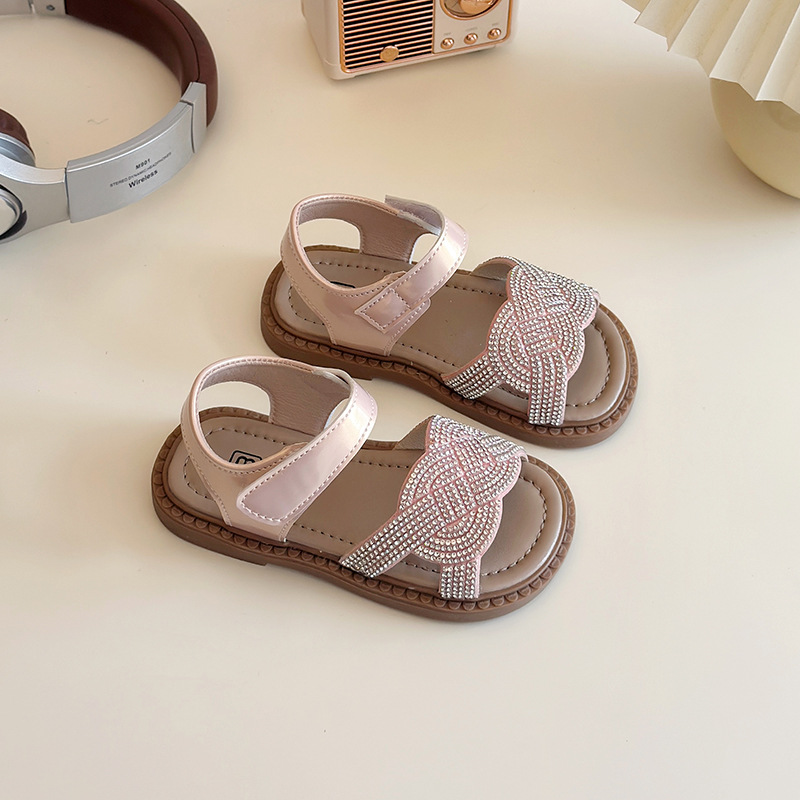 소녀 라인스톤 샌들 2025 여름 새로운 어린이 세련된 공주 신발 어린 소녀 오픈 발가락 비치 신발 아기 신발