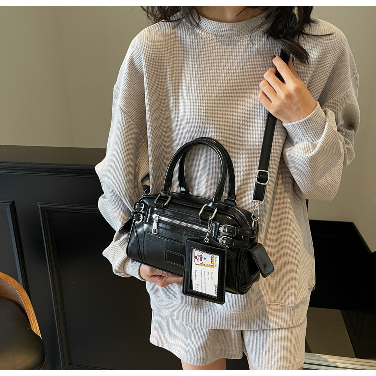 한국식 유행 오토바이 스타일 맞춤형 휴대용 보스턴 가방 모든 경기 통근 하이 엔드 텍스처 크로스 바디 백