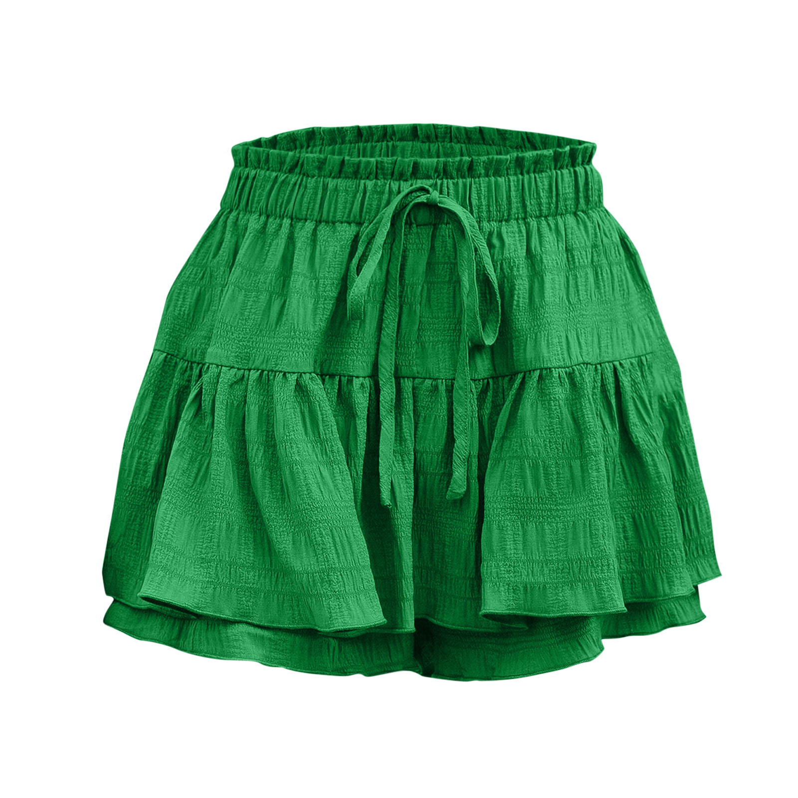 2025 아마존 크로스 국경 여성 여름 패션 러플 솔리드 컬러 드로우 스트링 컬롯 반바지