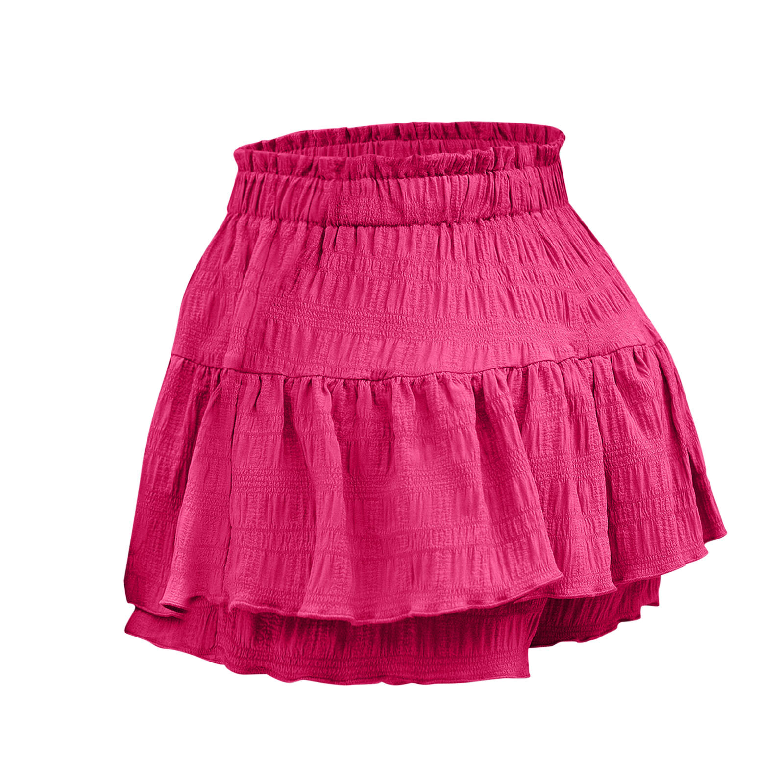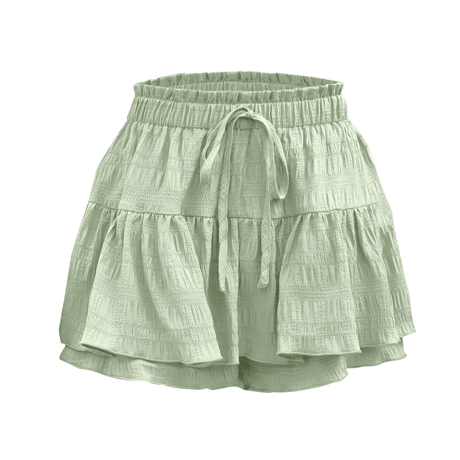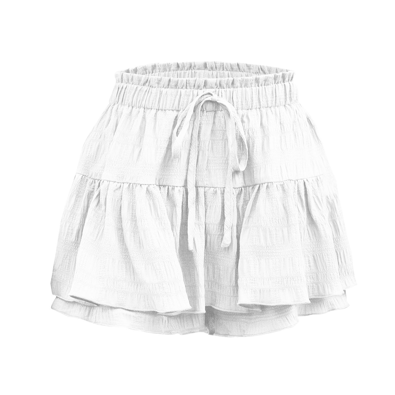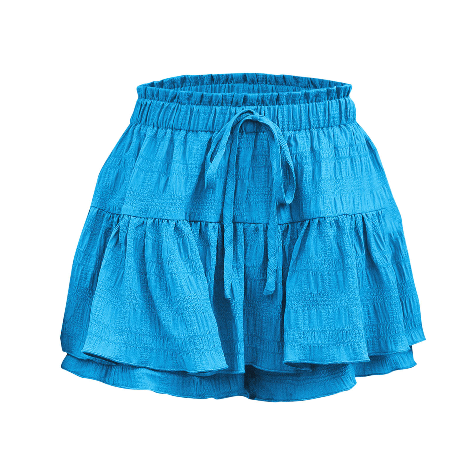 2025 아마존 크로스 국경 여성 여름 패션 러플 솔리드 컬러 드로우 스트링 컬롯 반바지스토어 가기