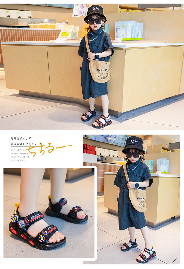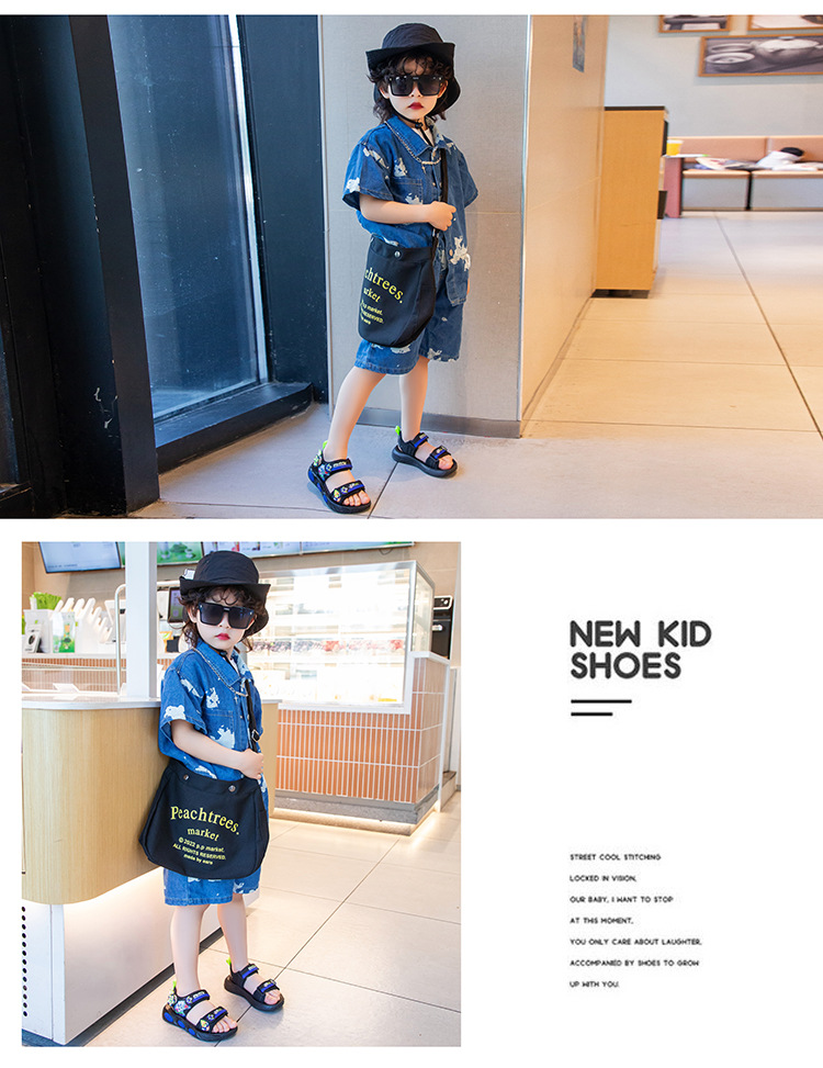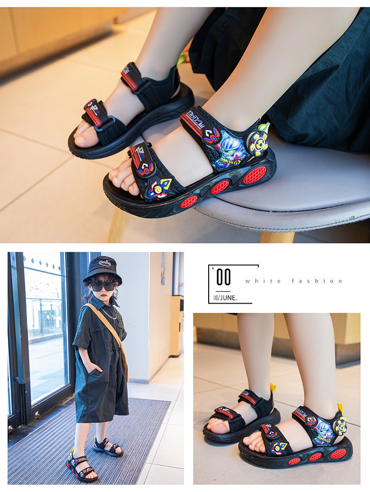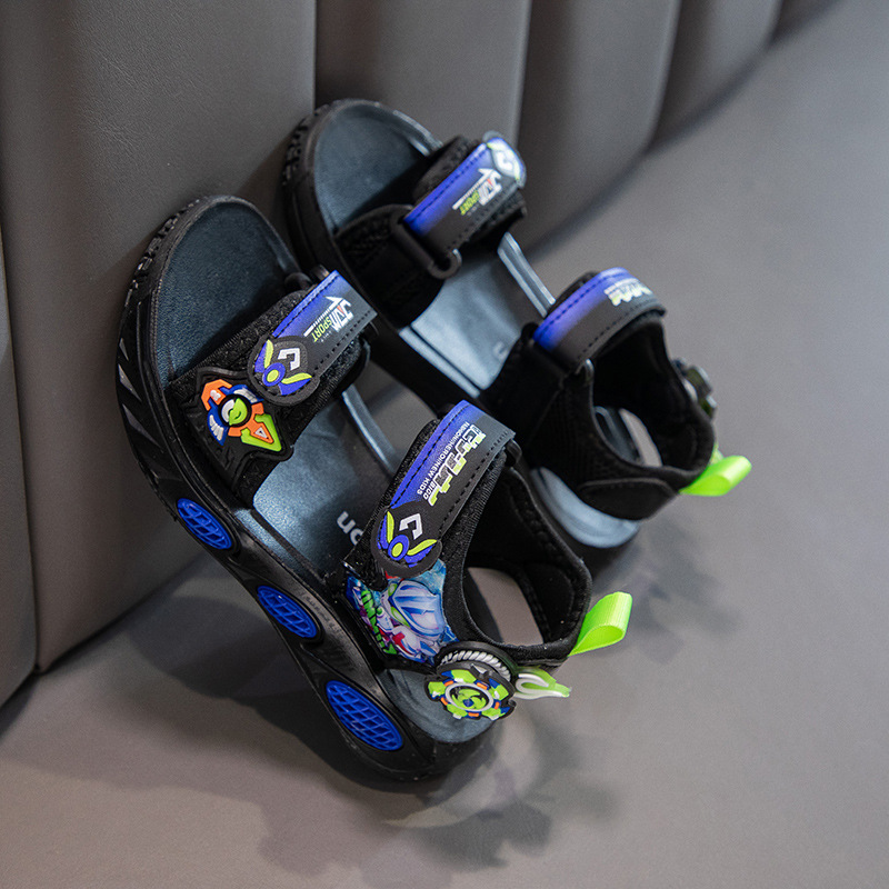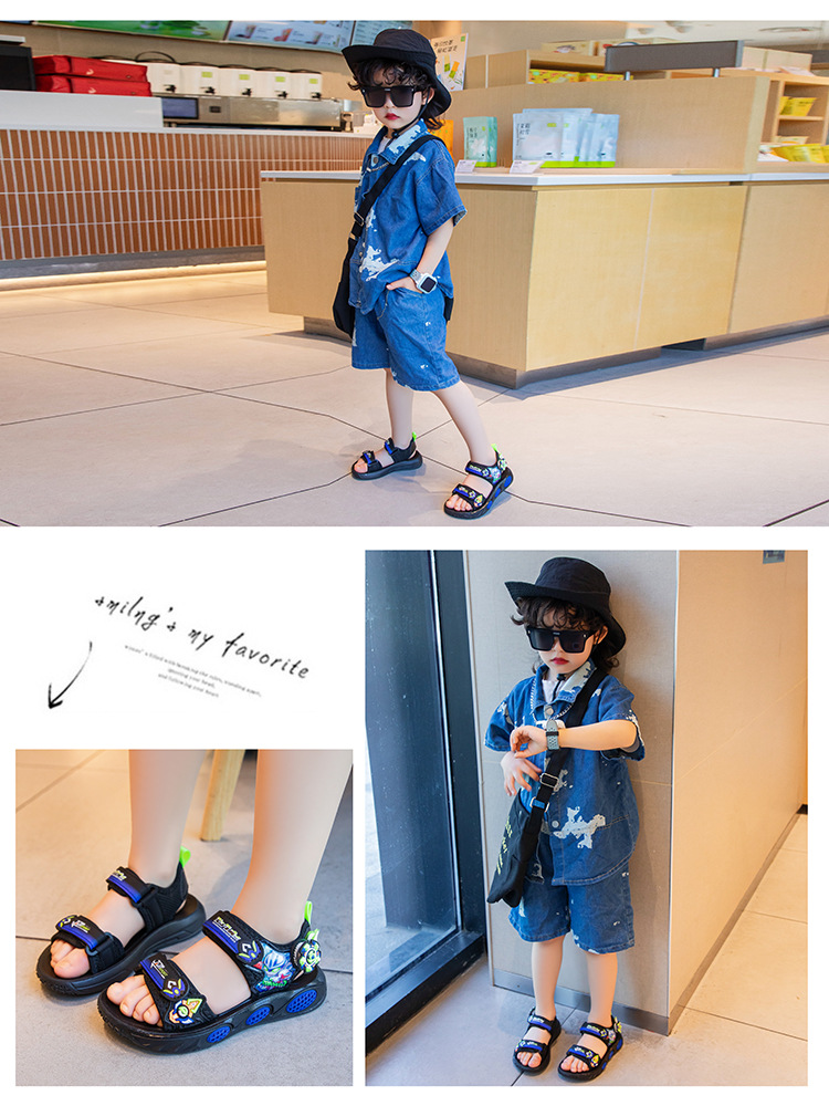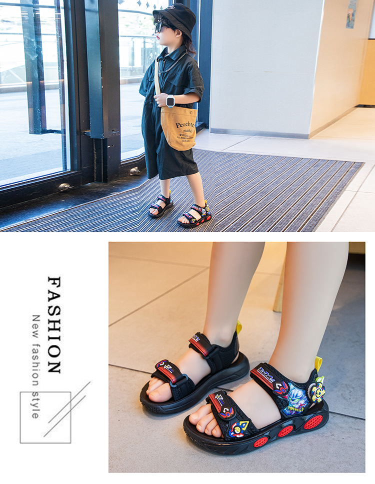 어린이 소년 샌들 2025 여름 새로운 패션 한국 스타일 중대형 어린이 부드러운 밑창 작은 소년 신발 비치 신발스토어 가기