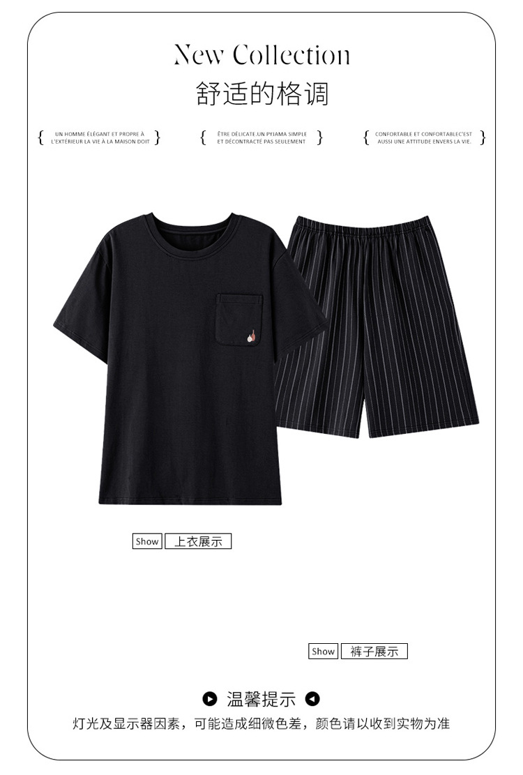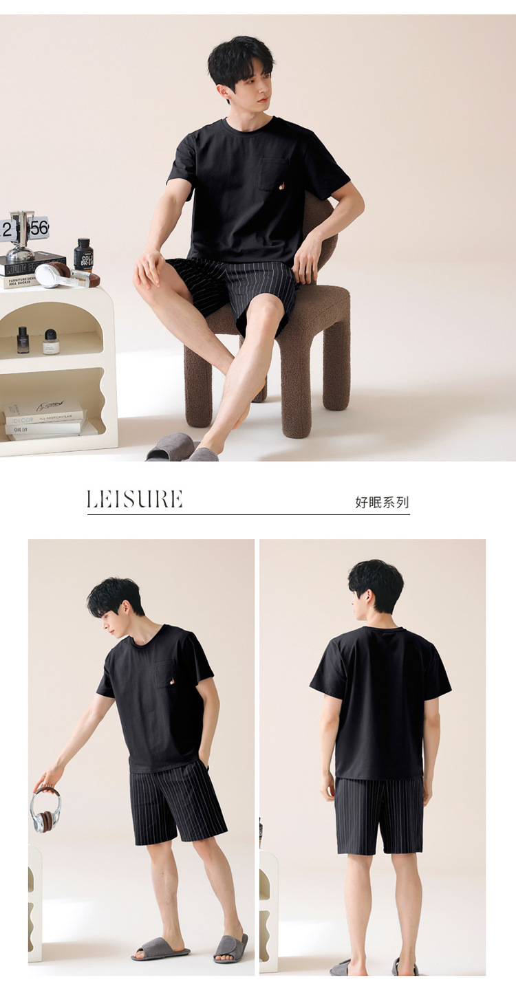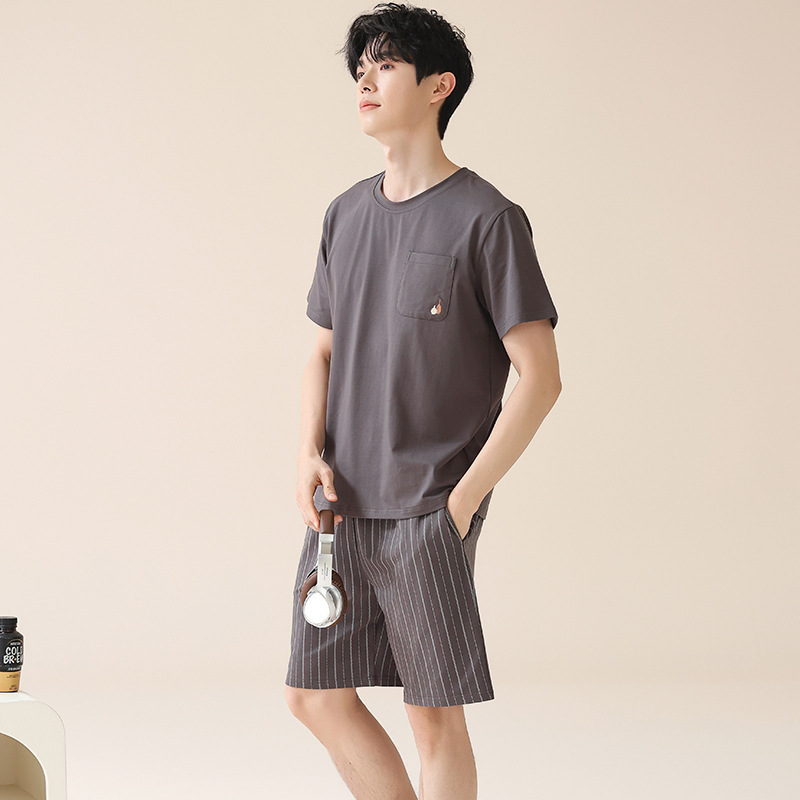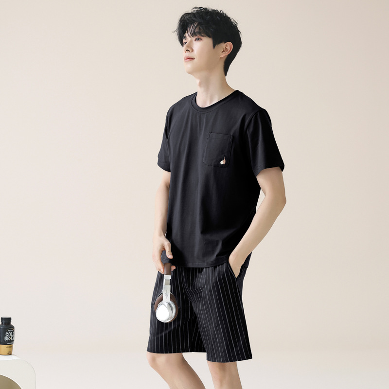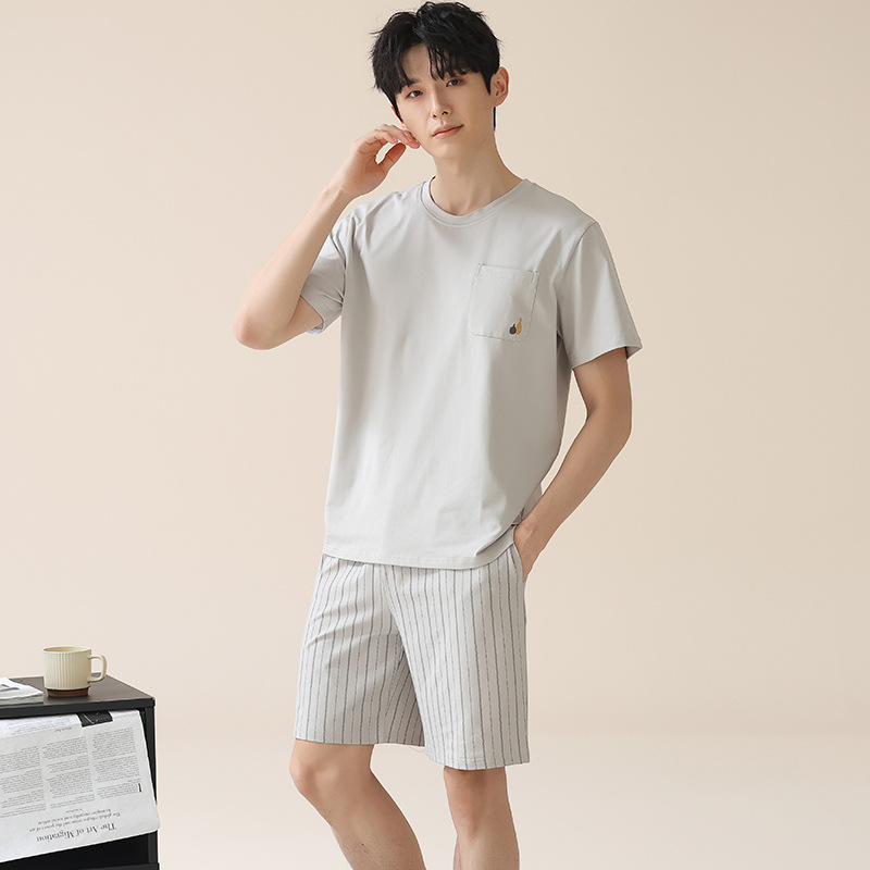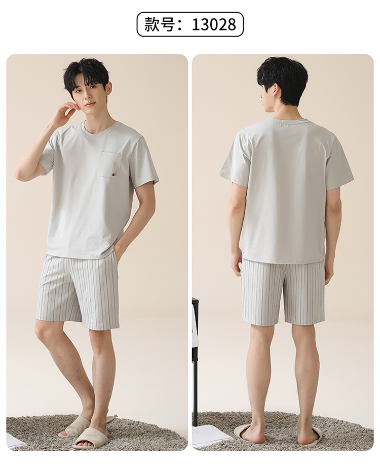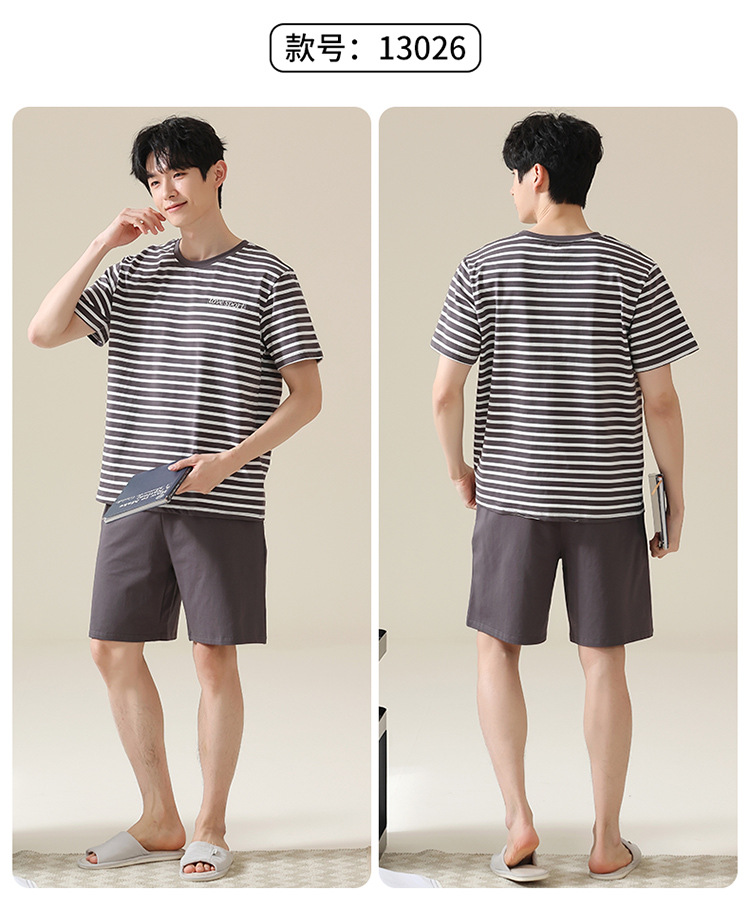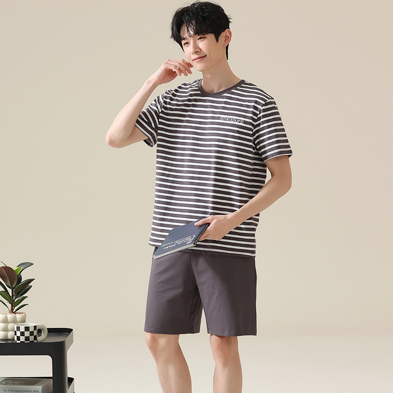 남성용 여름 잠옷, 얇은 줄무늬 반팔 반바지, 청소년 및 학생들이 여름에 밖에서 입을 수 있는 홈웨어, 대형 사이즈스토어 가기