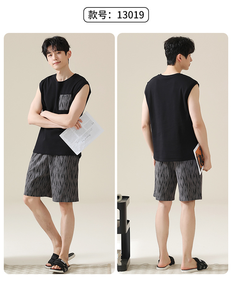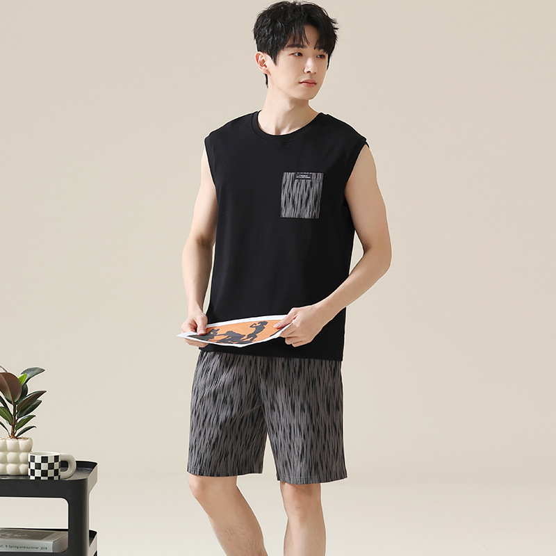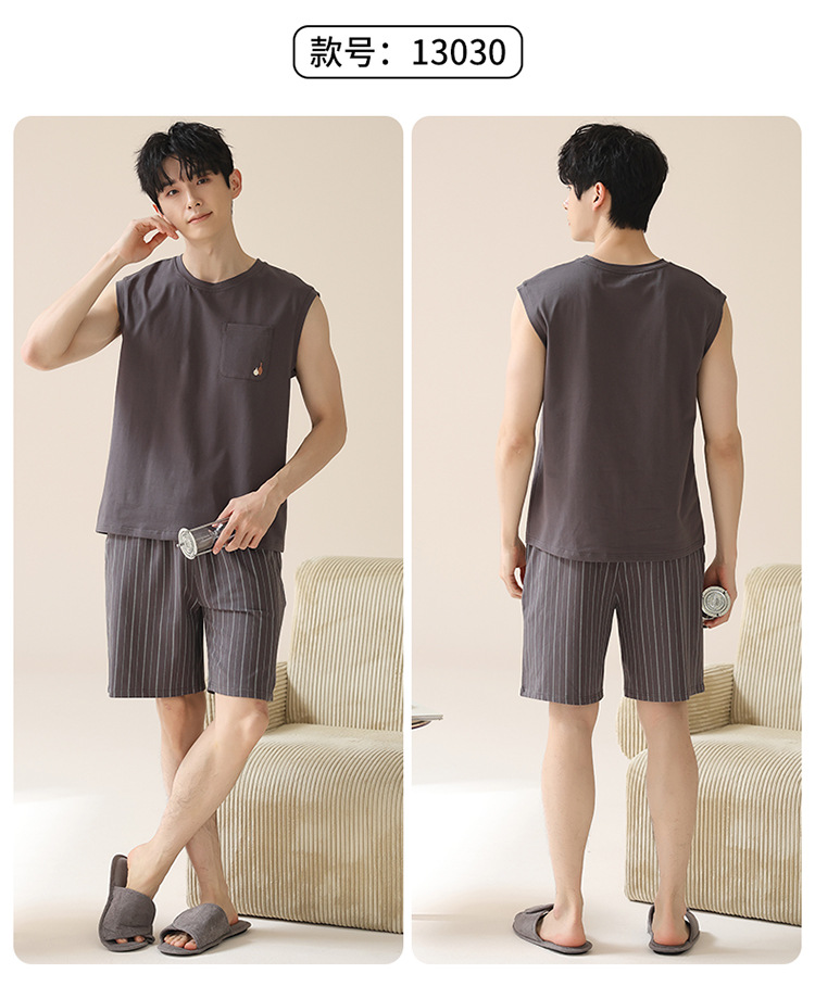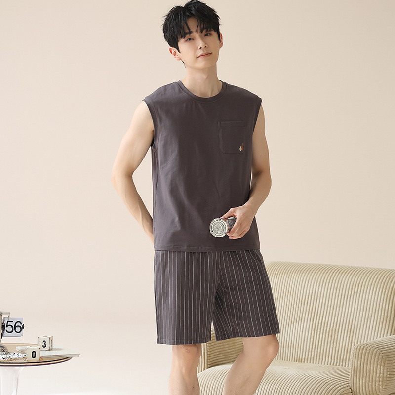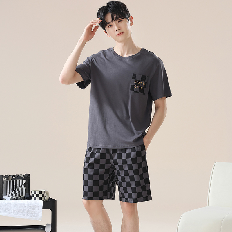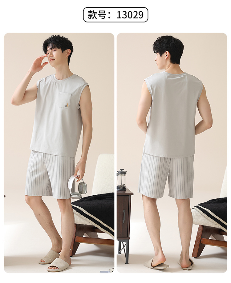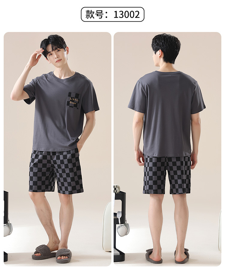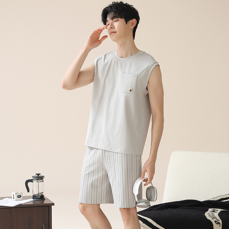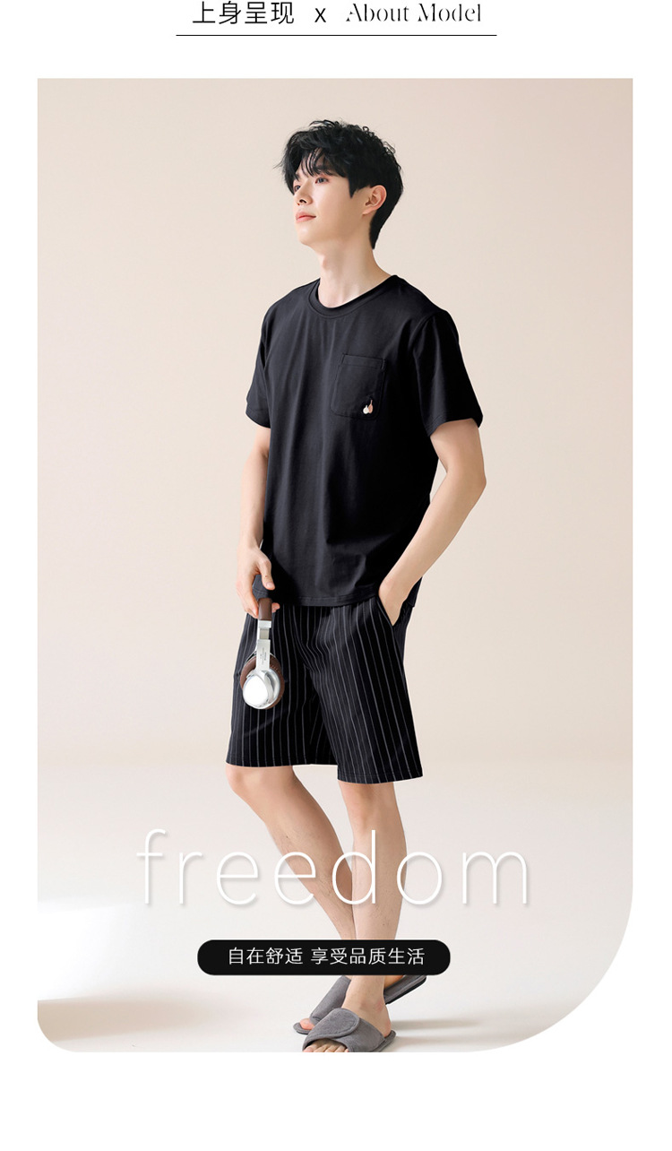남성용 여름 잠옷, 얇은 줄무늬 반팔 반바지, 청소년 및 학생들이 여름에 밖에서 입을 수 있는 홈웨어, 대형 사이즈스토어 가기