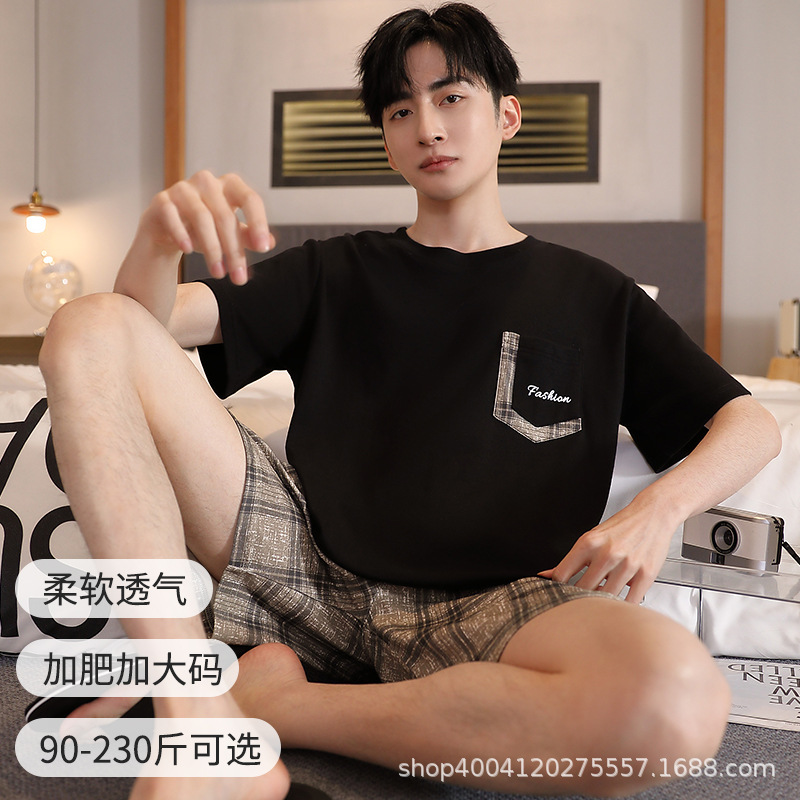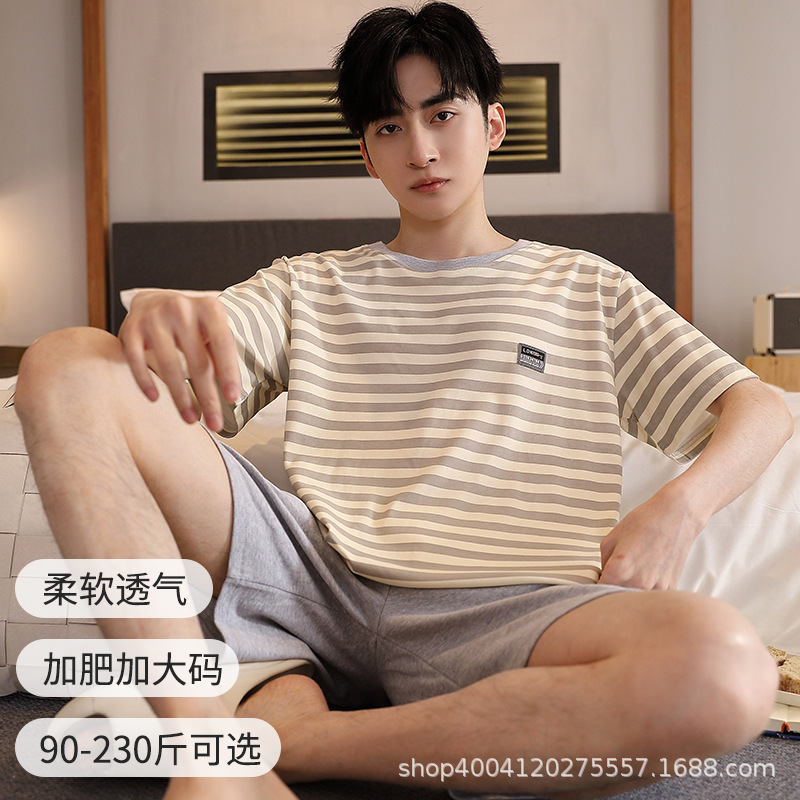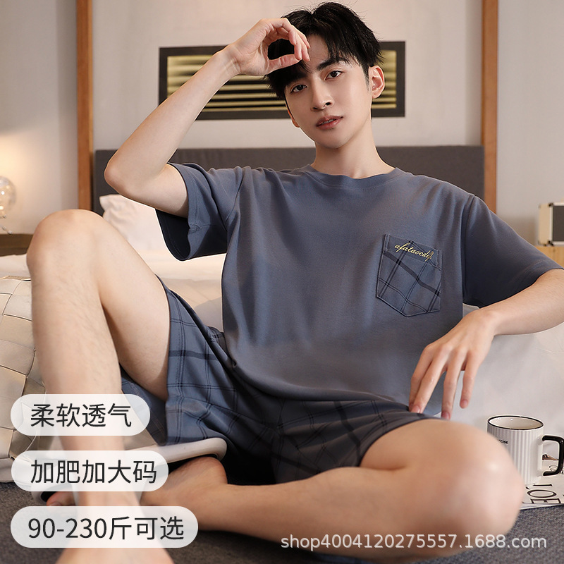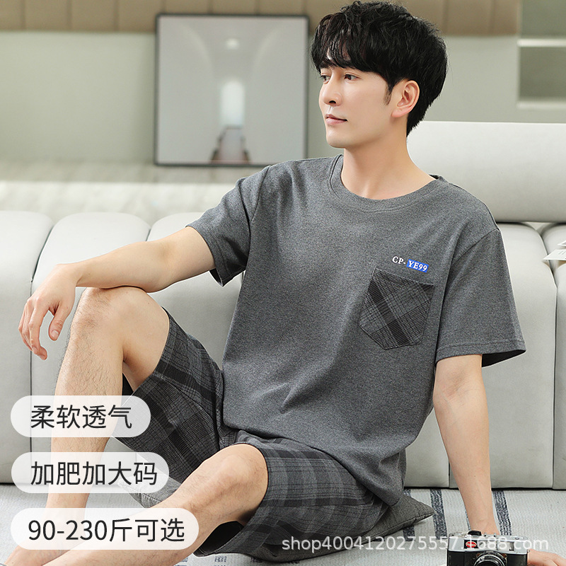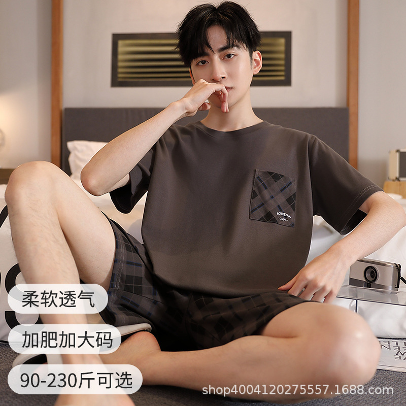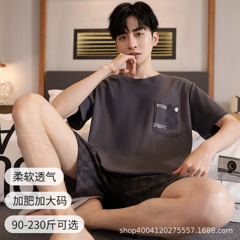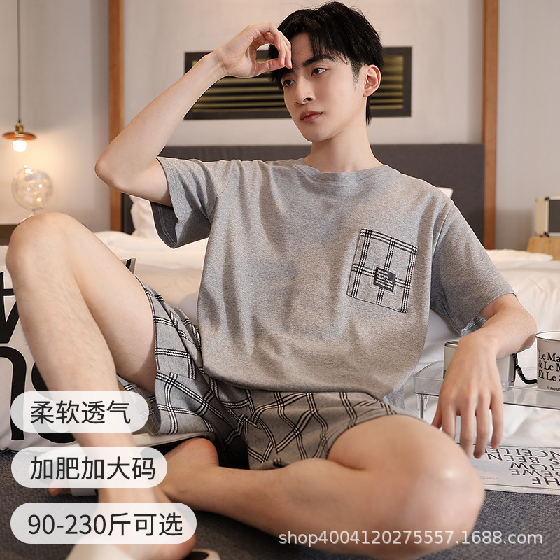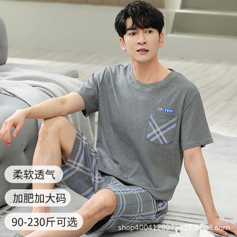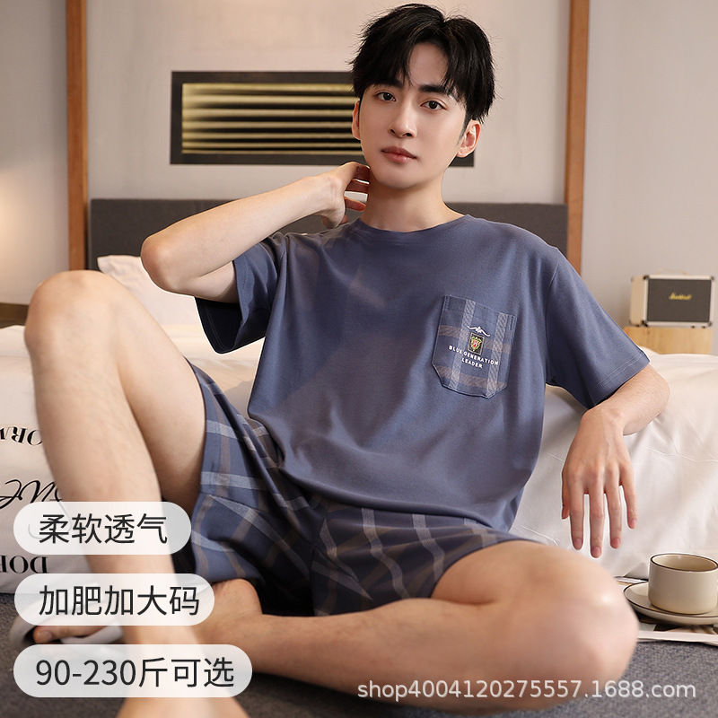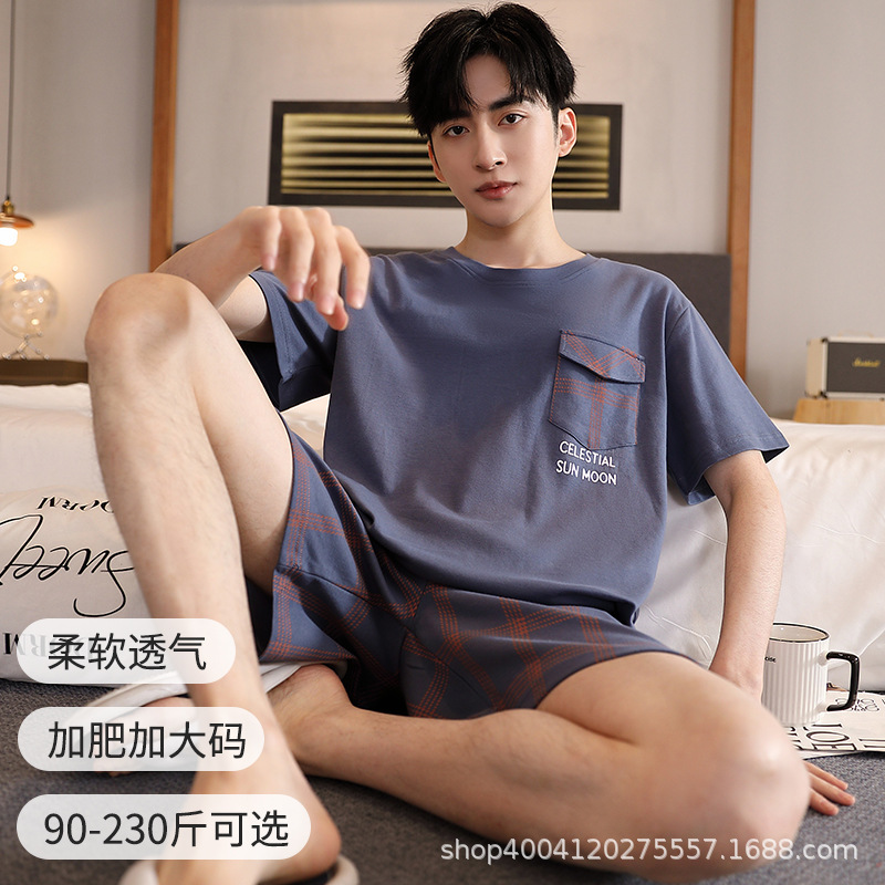 퓨어 코튼 하이 엔드 여름 남성 반팔 반바지 세트 잠옷 캐주얼 청소년 플러스 큰 느슨한 홈 의류스토어 가기