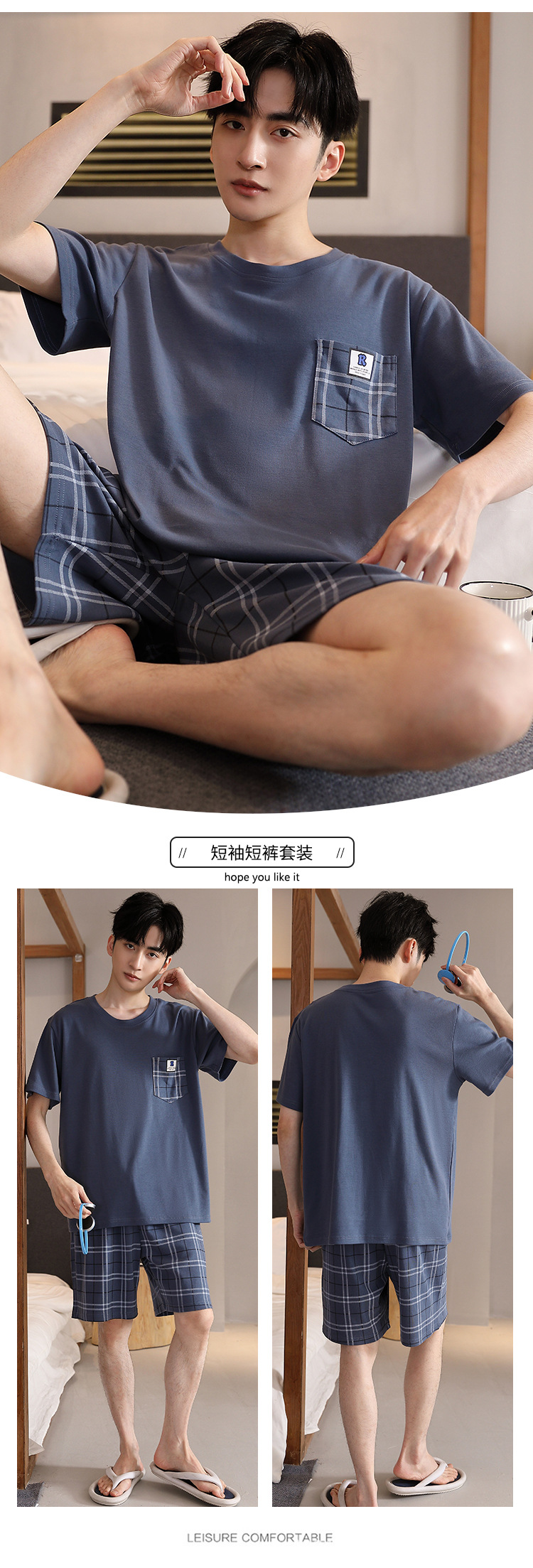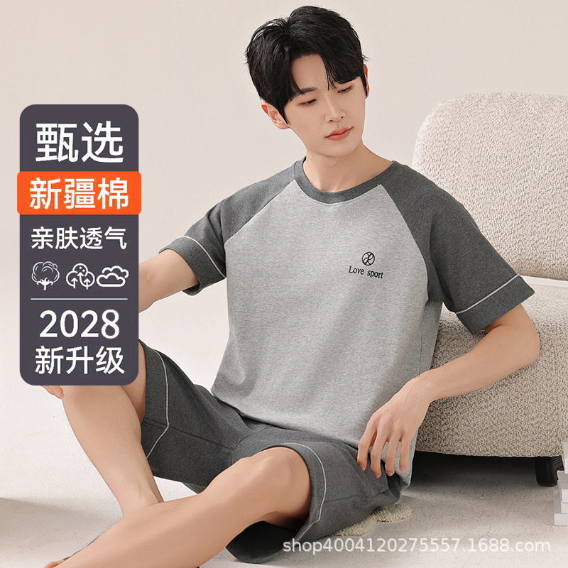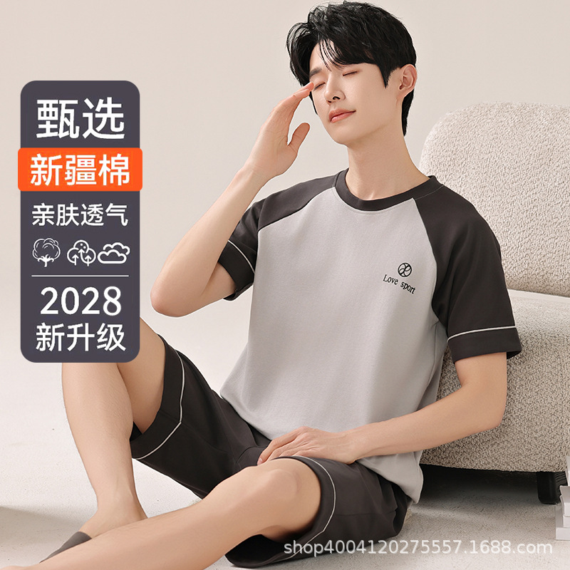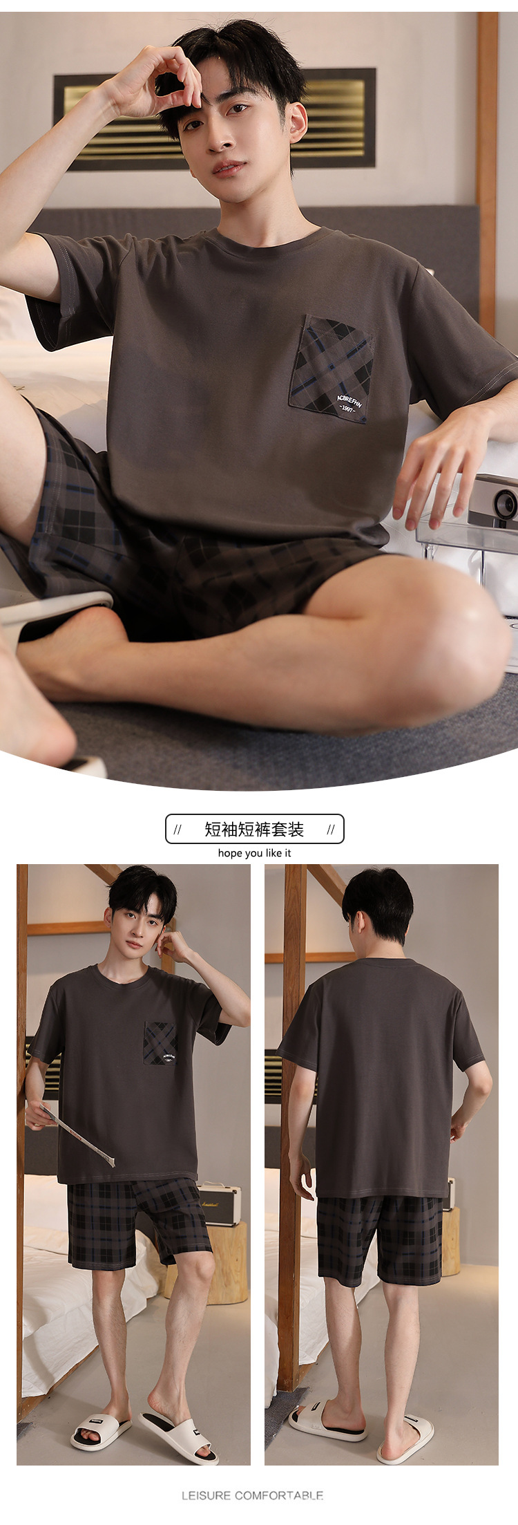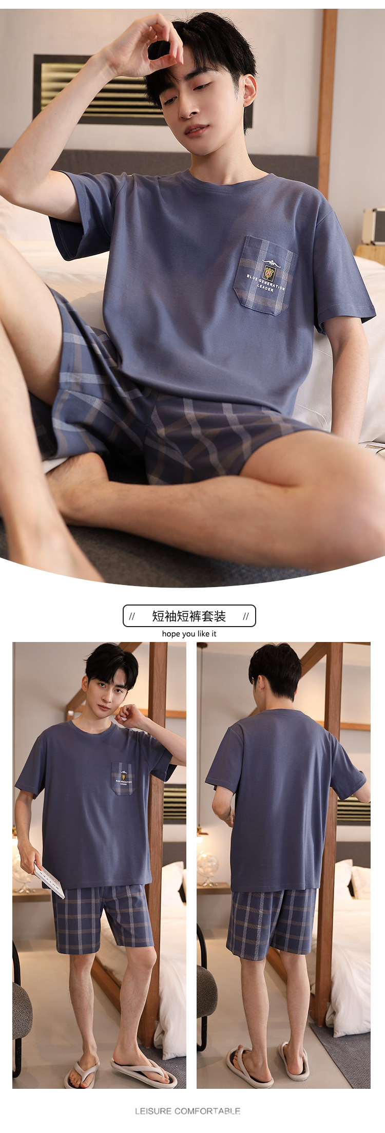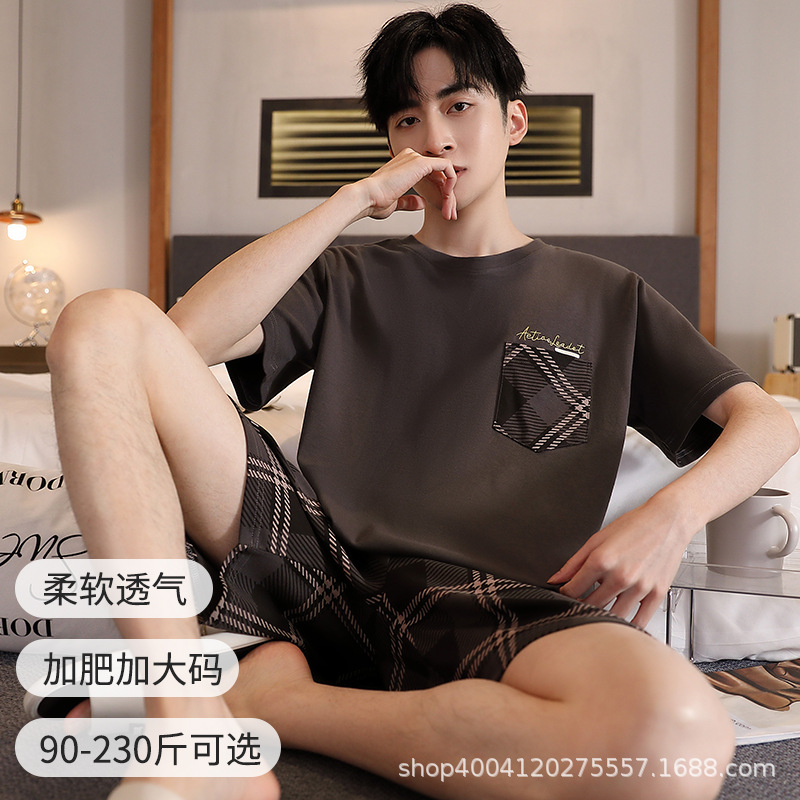 퓨어 코튼 하이 엔드 여름 남성 반팔 반바지 세트 잠옷 캐주얼 청소년 플러스 큰 느슨한 홈 의류스토어 가기