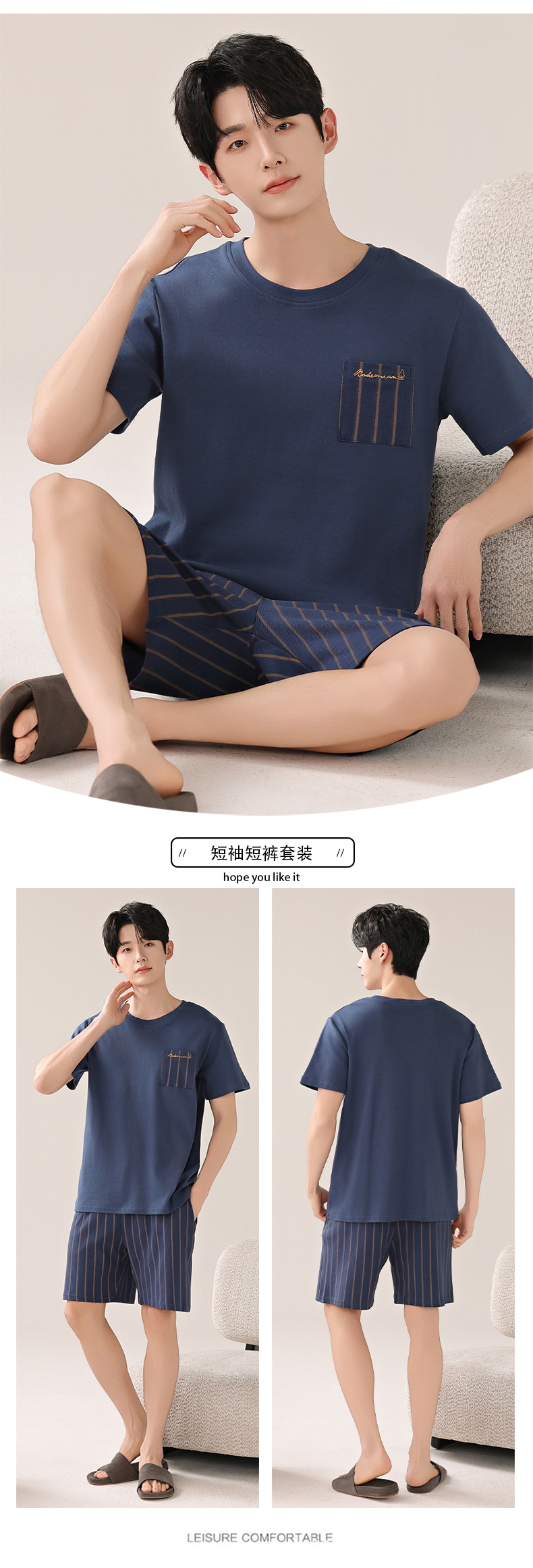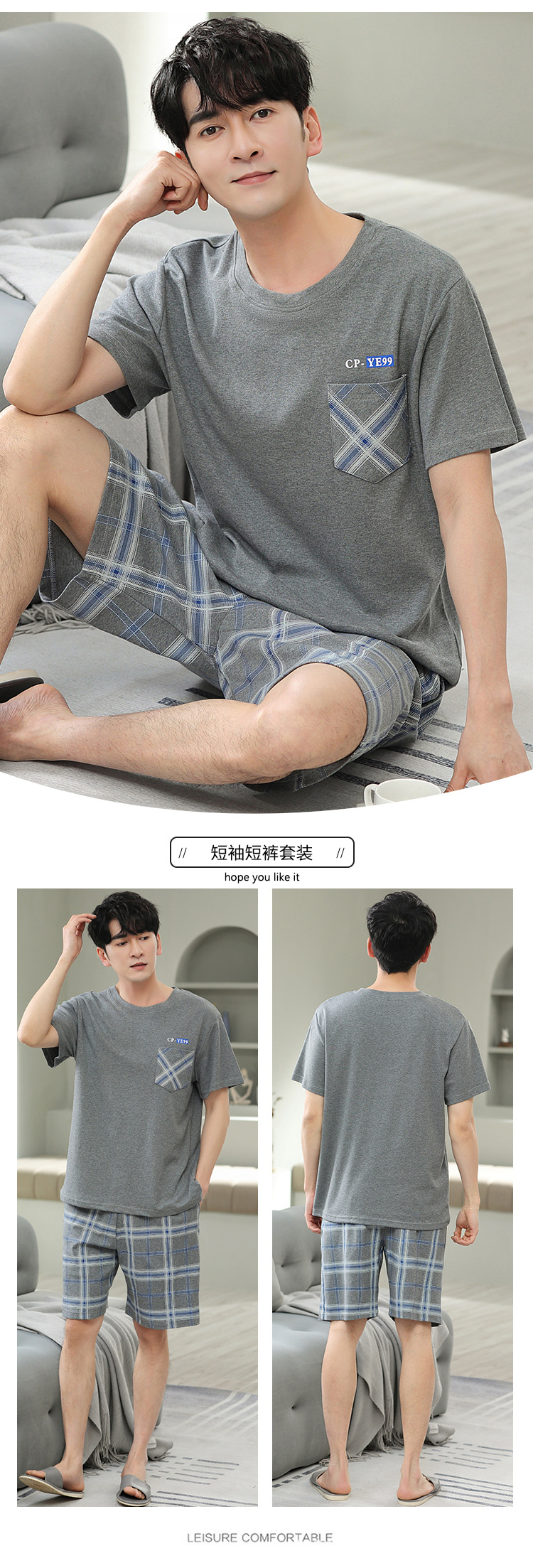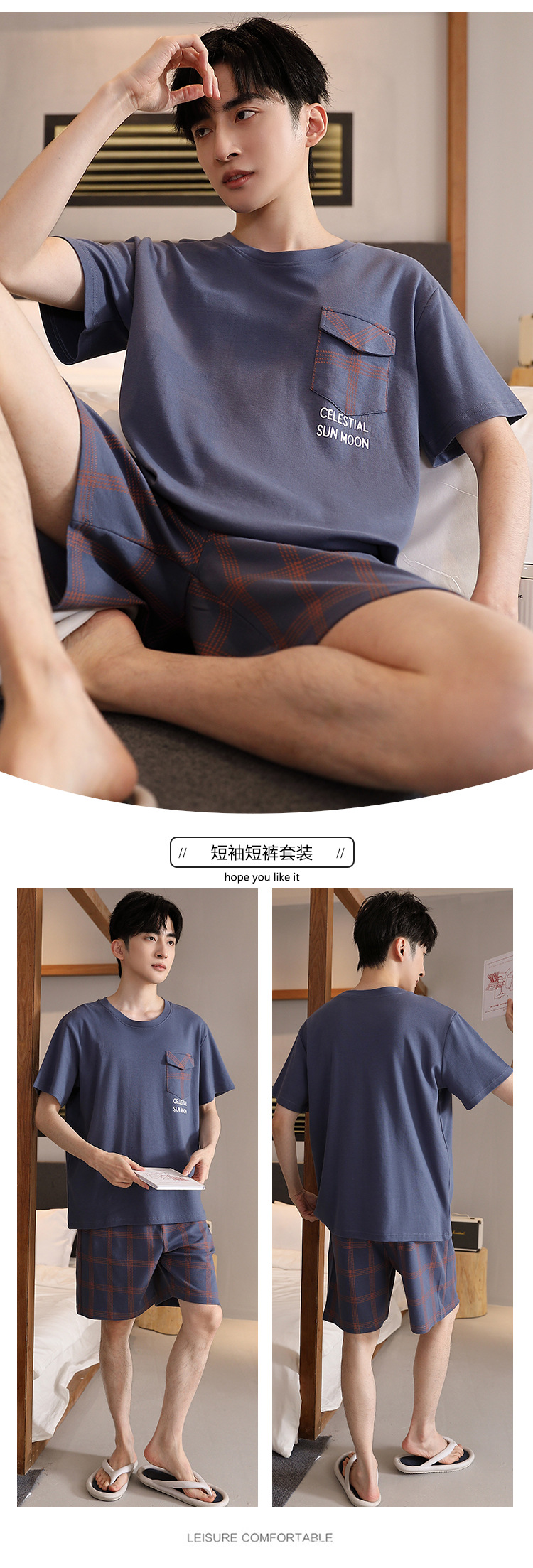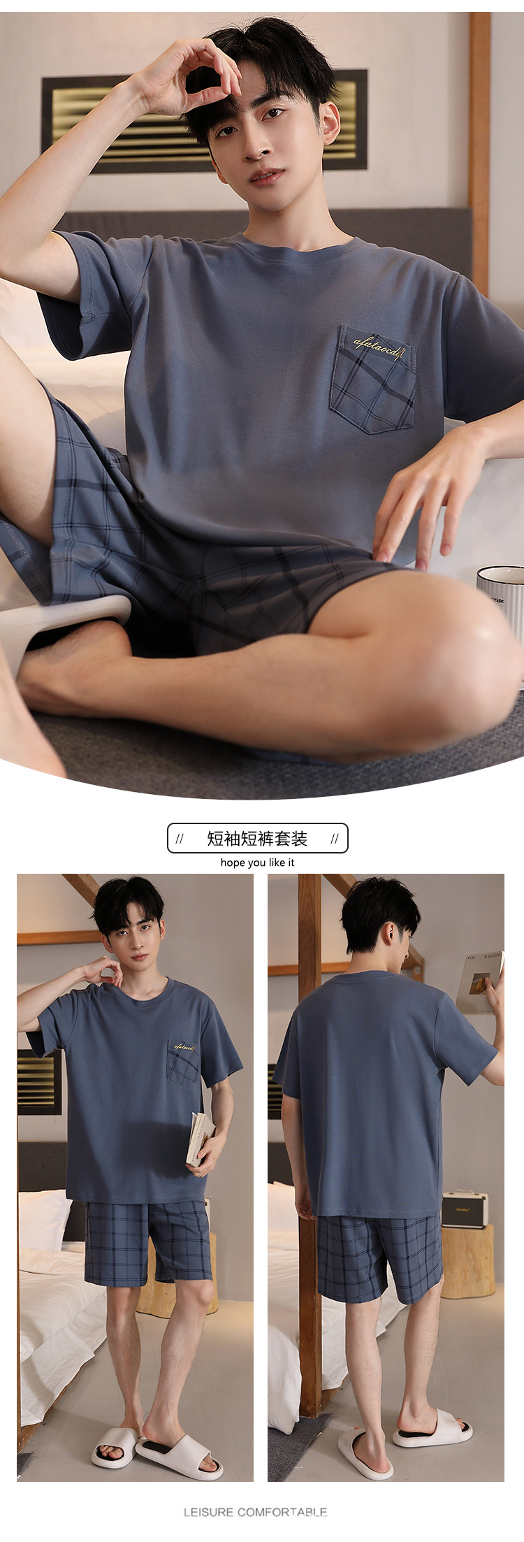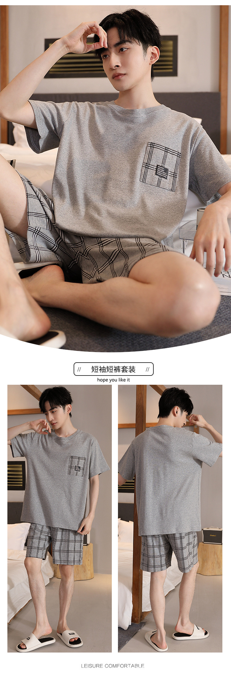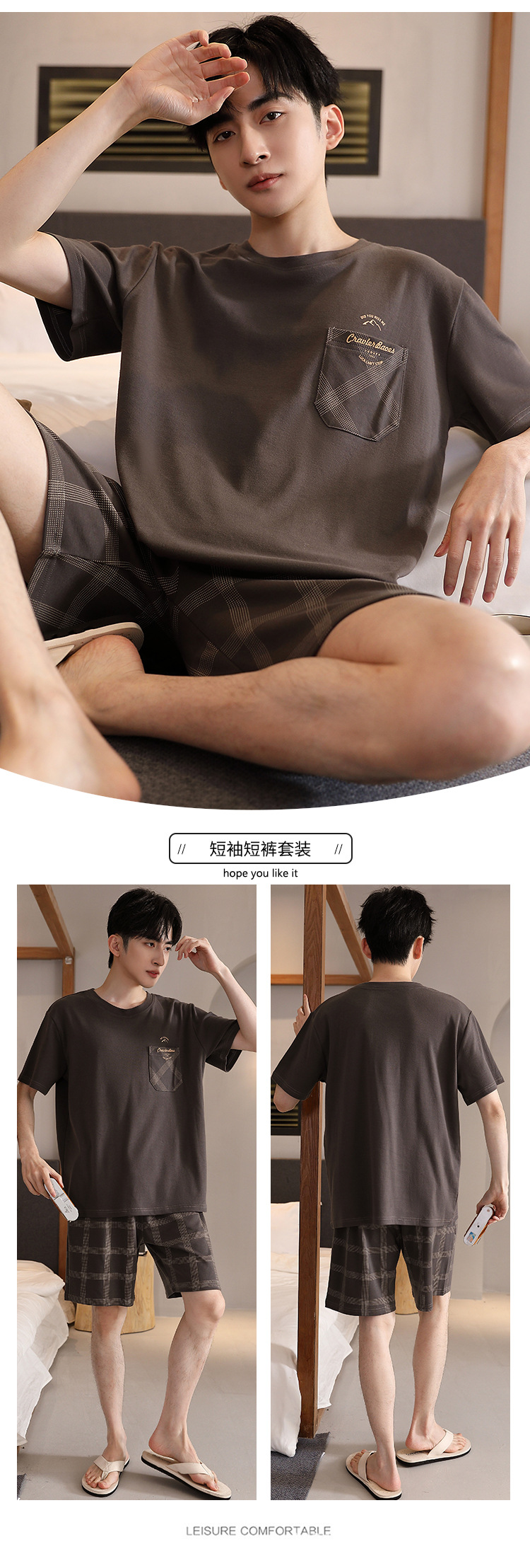퓨어 코튼 하이 엔드 여름 남성 반팔 반바지 세트 잠옷 캐주얼 청소년 플러스 큰 느슨한 홈 의류스토어 가기