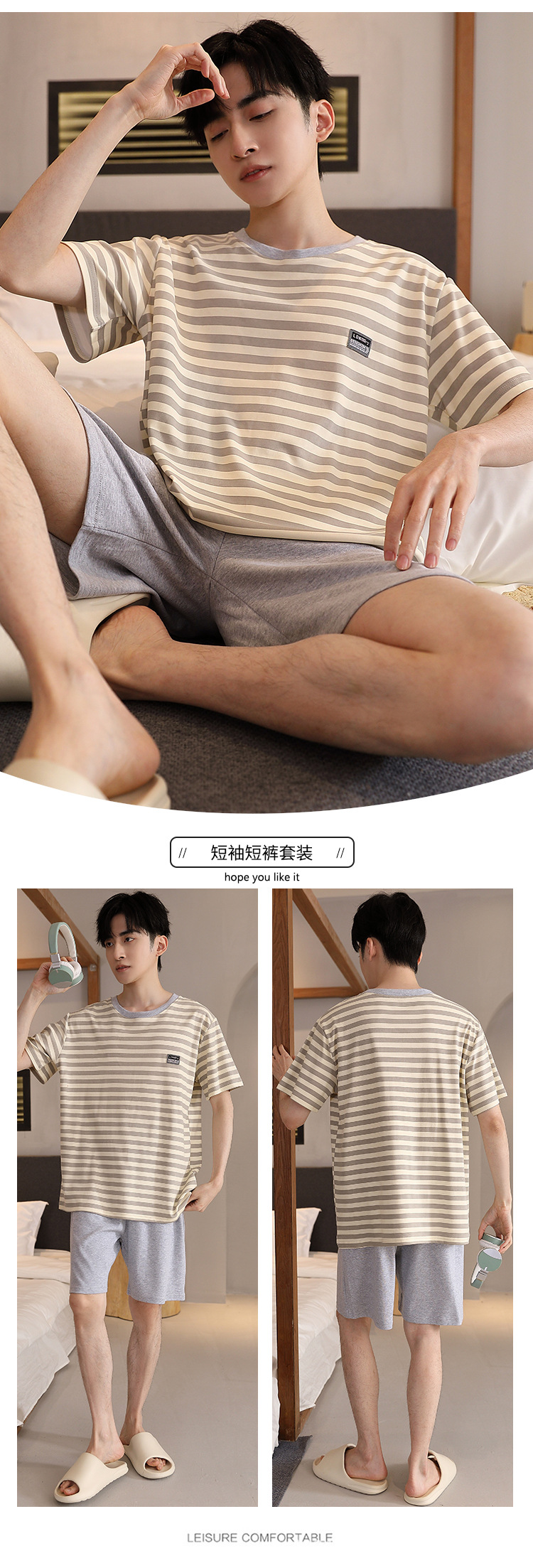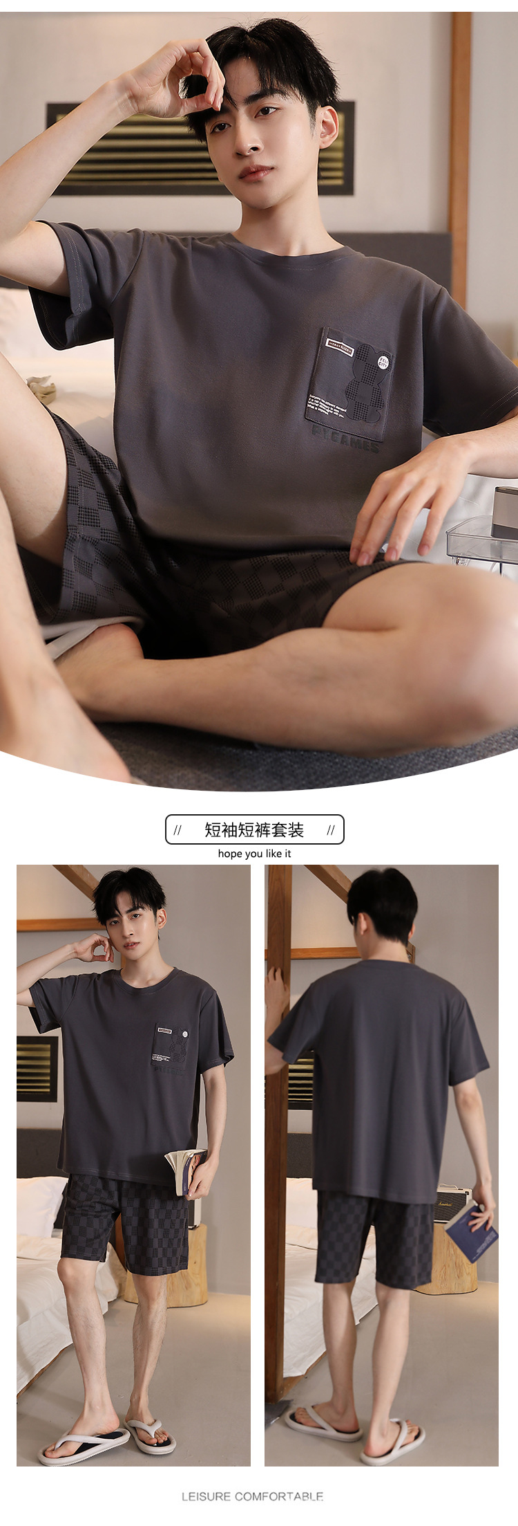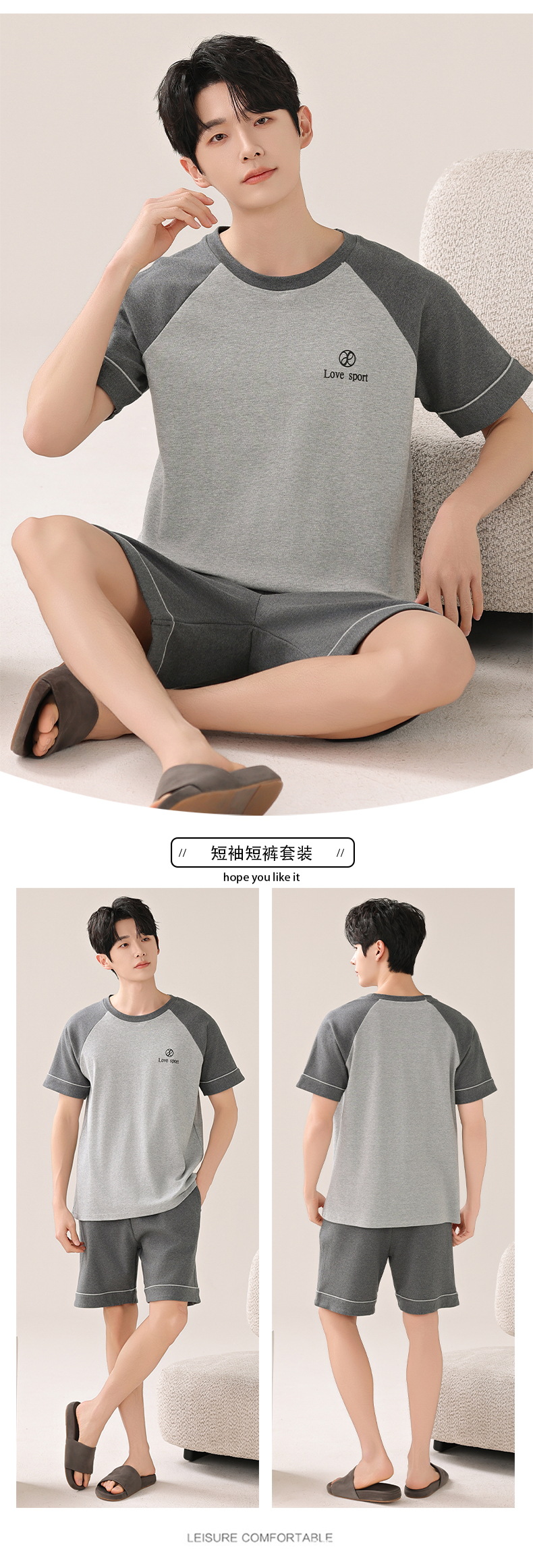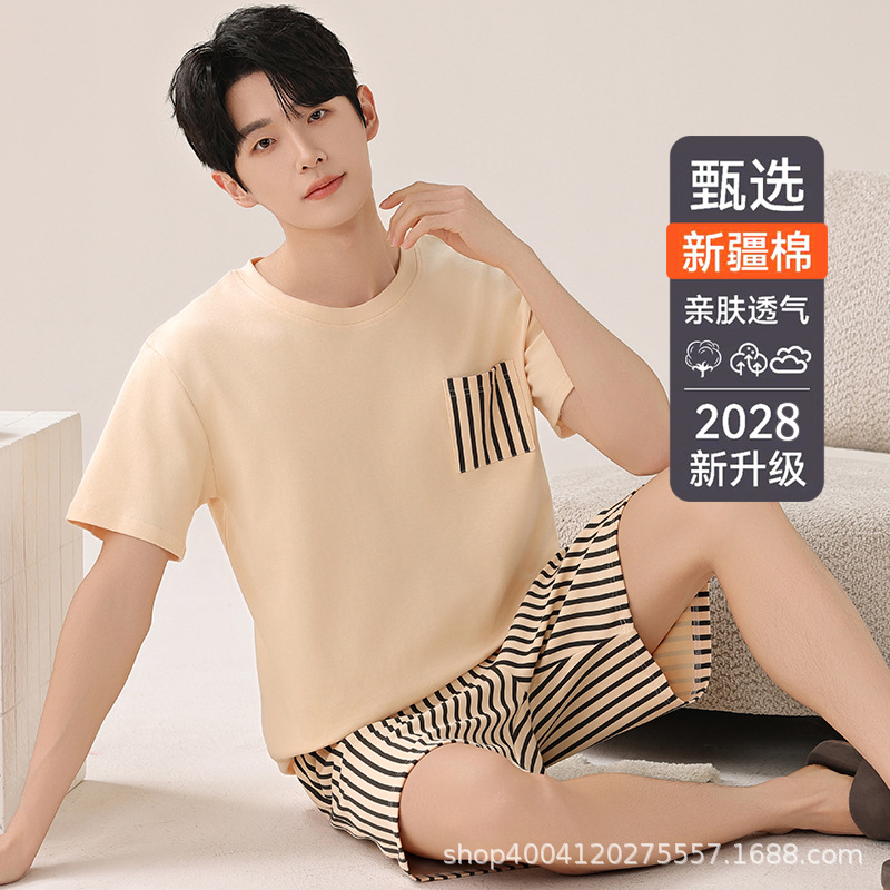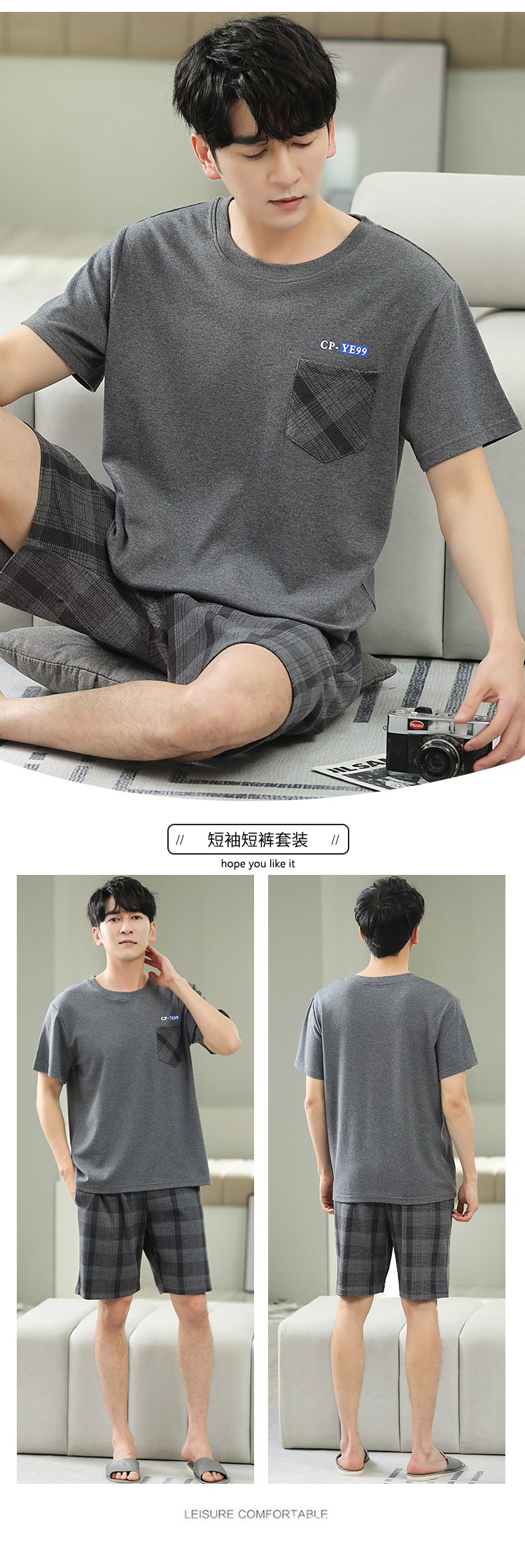 퓨어 코튼 하이 엔드 여름 남성 반팔 반바지 세트 잠옷 캐주얼 청소년 플러스 큰 느슨한 홈 의류스토어 가기