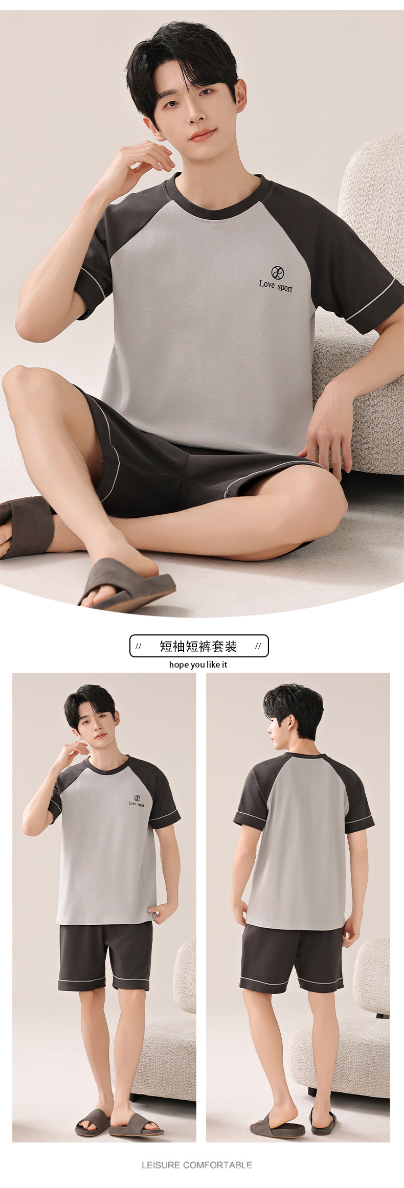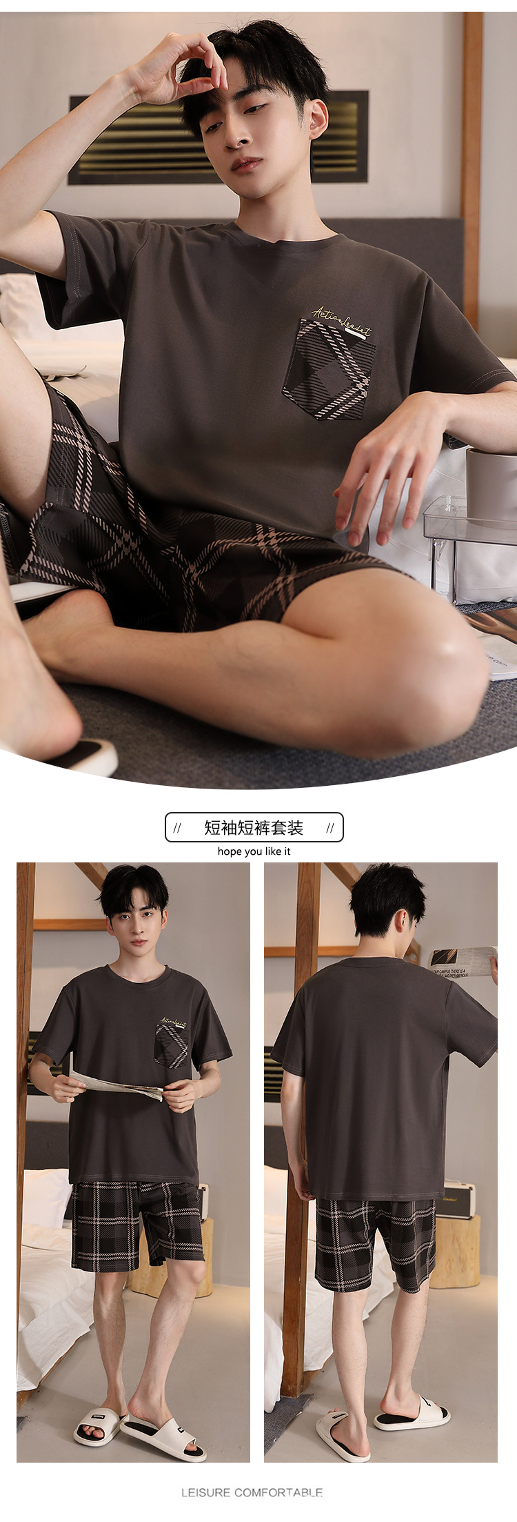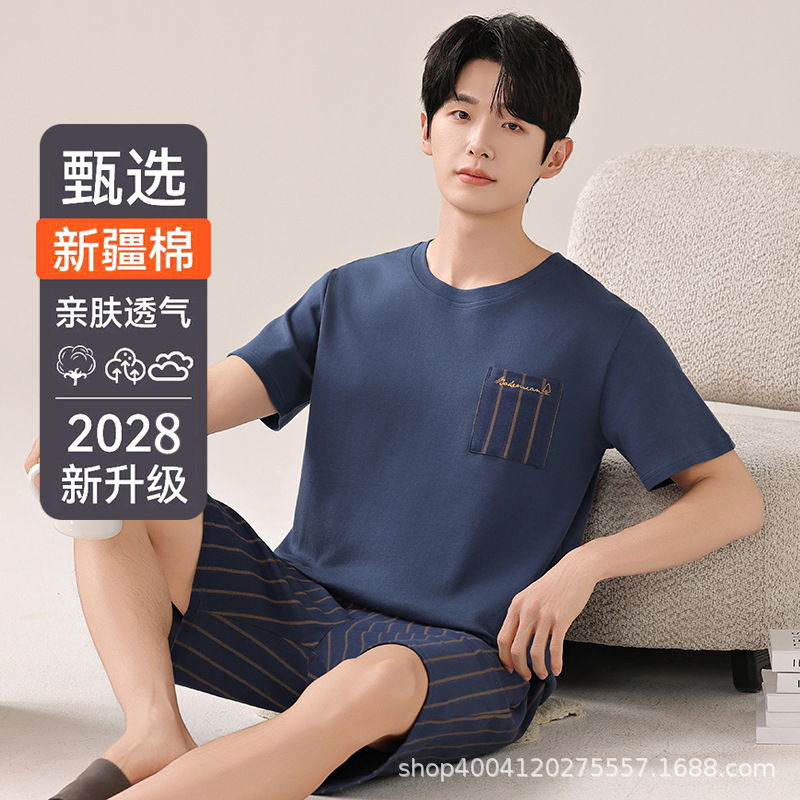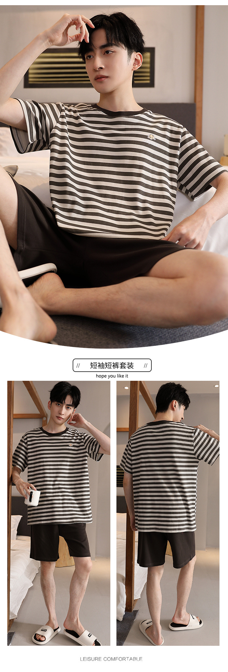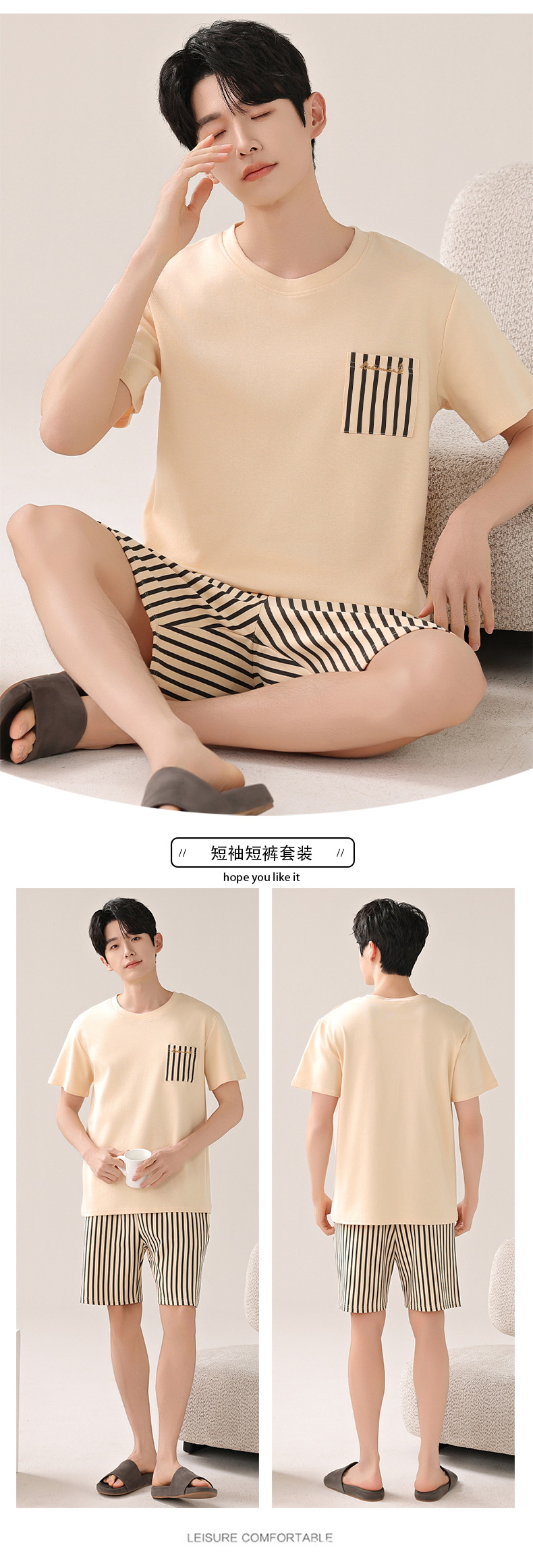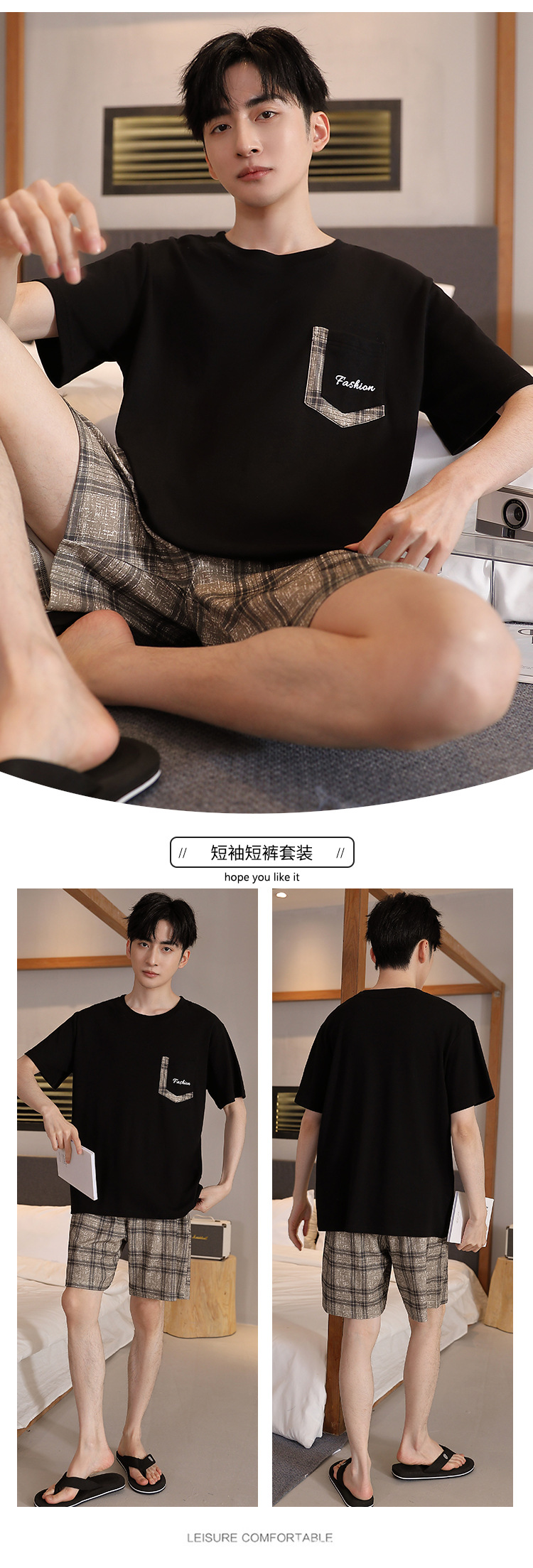 퓨어 코튼 하이 엔드 여름 남성 반팔 반바지 세트 잠옷 캐주얼 청소년 플러스 큰 느슨한 홈 의류스토어 가기