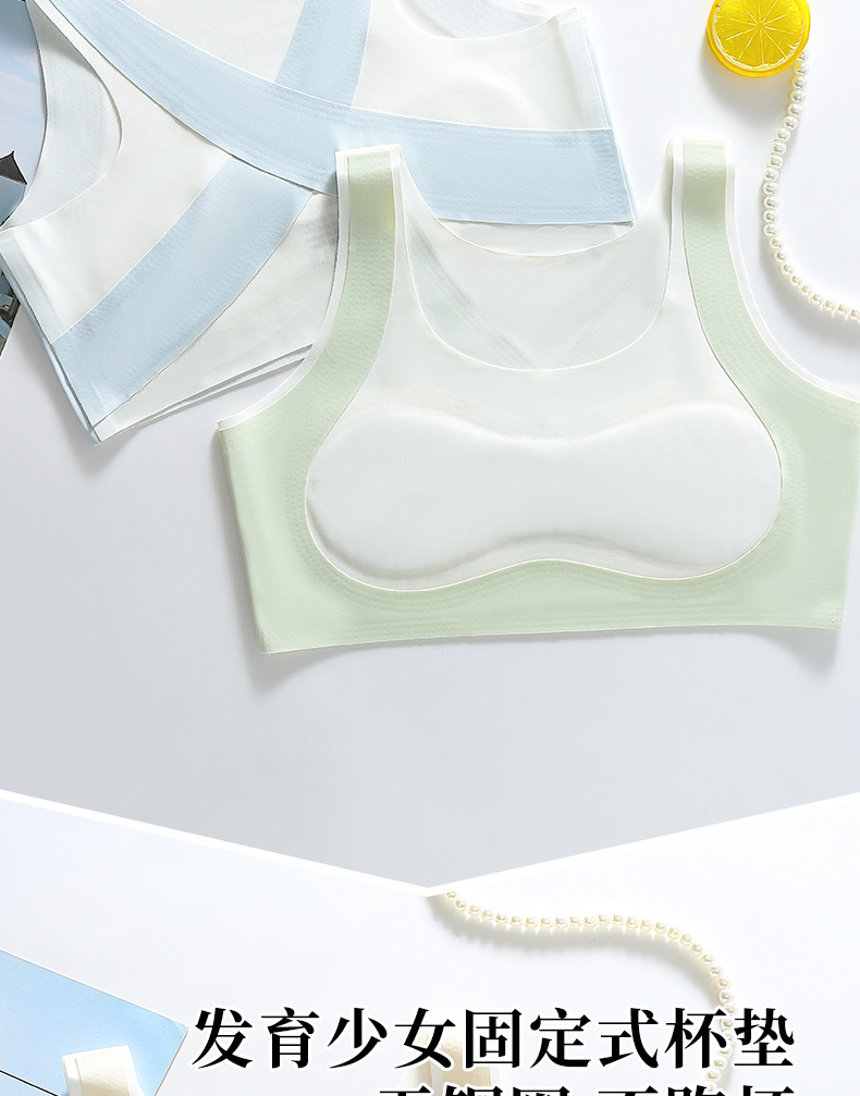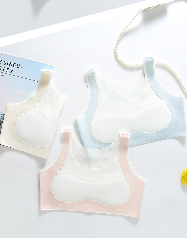 발달 여자 사춘기 속옷 아이스 실크 추적없는 안티 범프 작은 조끼 스포츠 통기성 브래지어 여자 가슴 포장