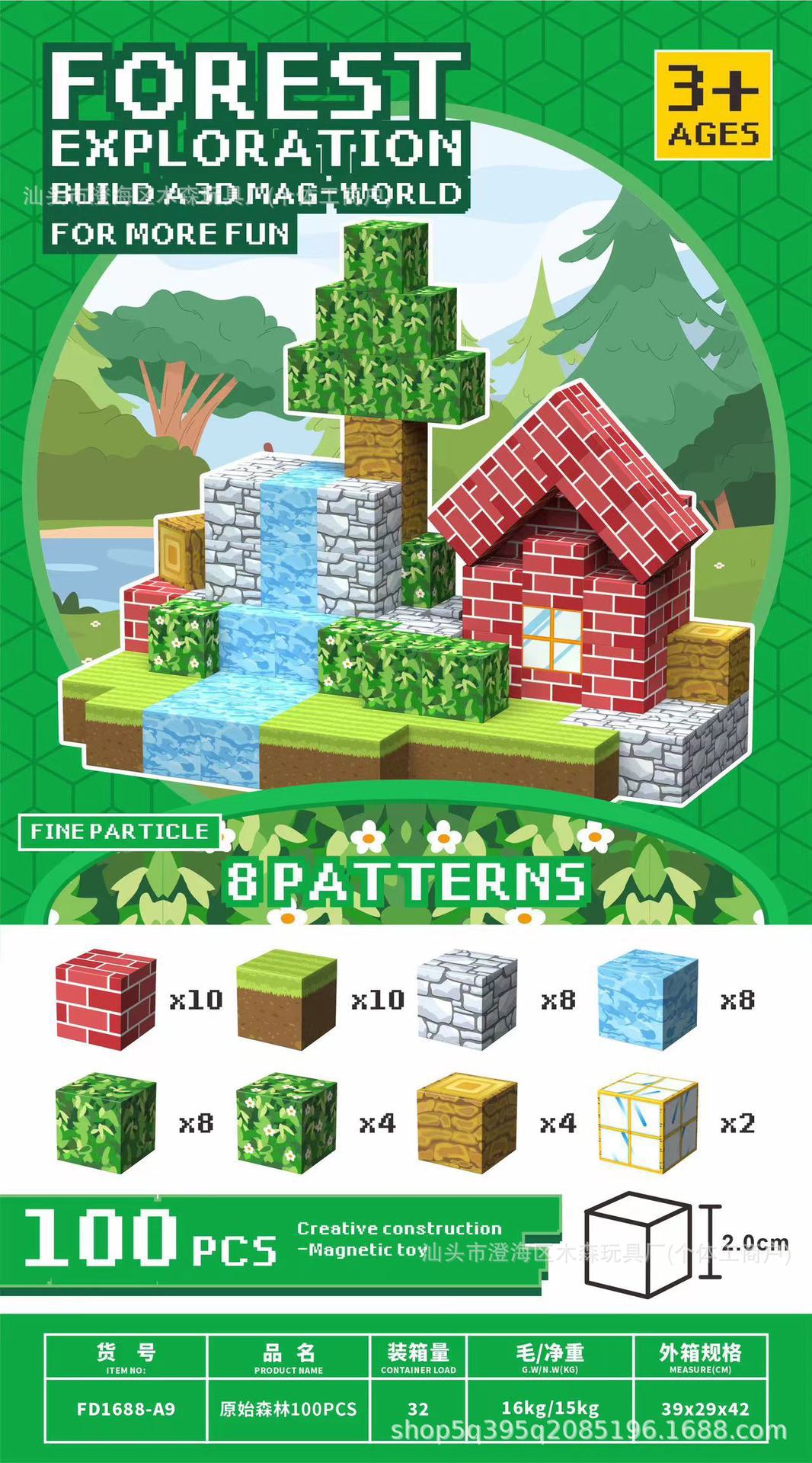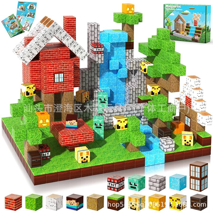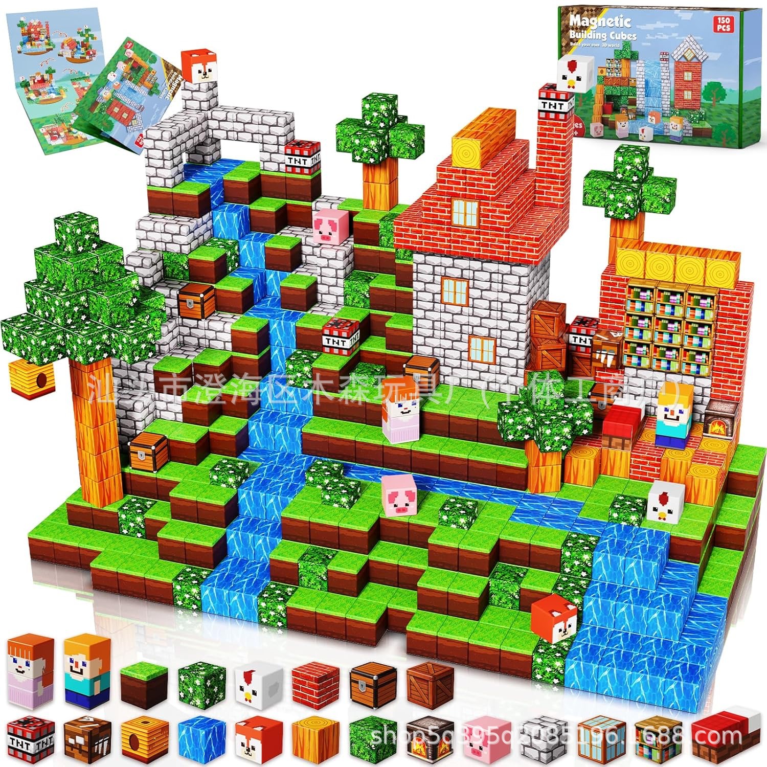 국경 간 아마존 새로운 MC 내 자기 세계 광장 자석 자석 돌 빌딩 블록 어린이 교육 조립 장난감