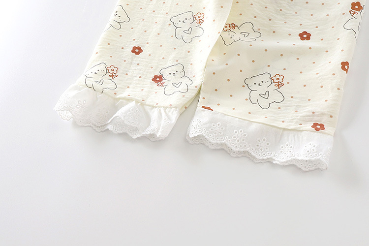 소녀의 새로운 반팔 잠옷 홈 의류 세트 봄과 여름 얇은 어린이 에어컨 옷 레이스 프린세스 스타일 아동복스토어 가기