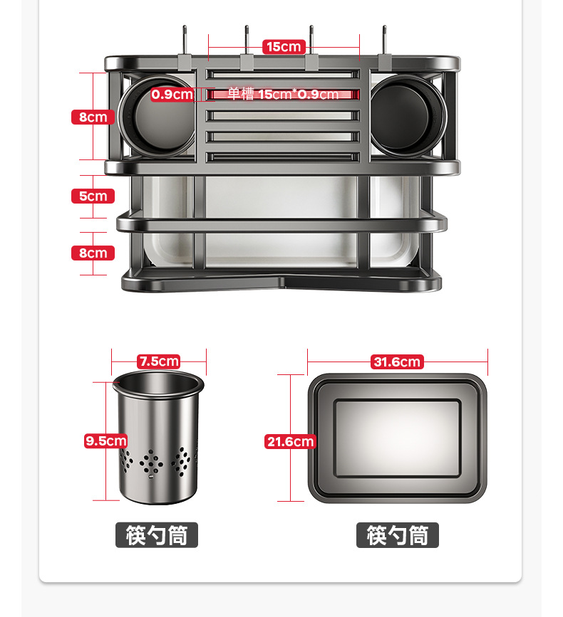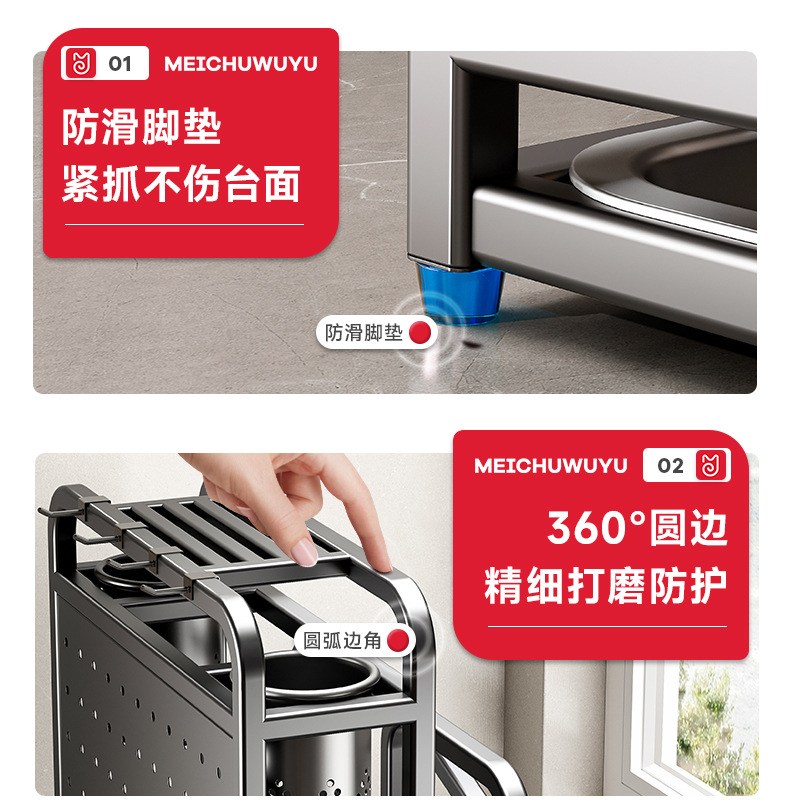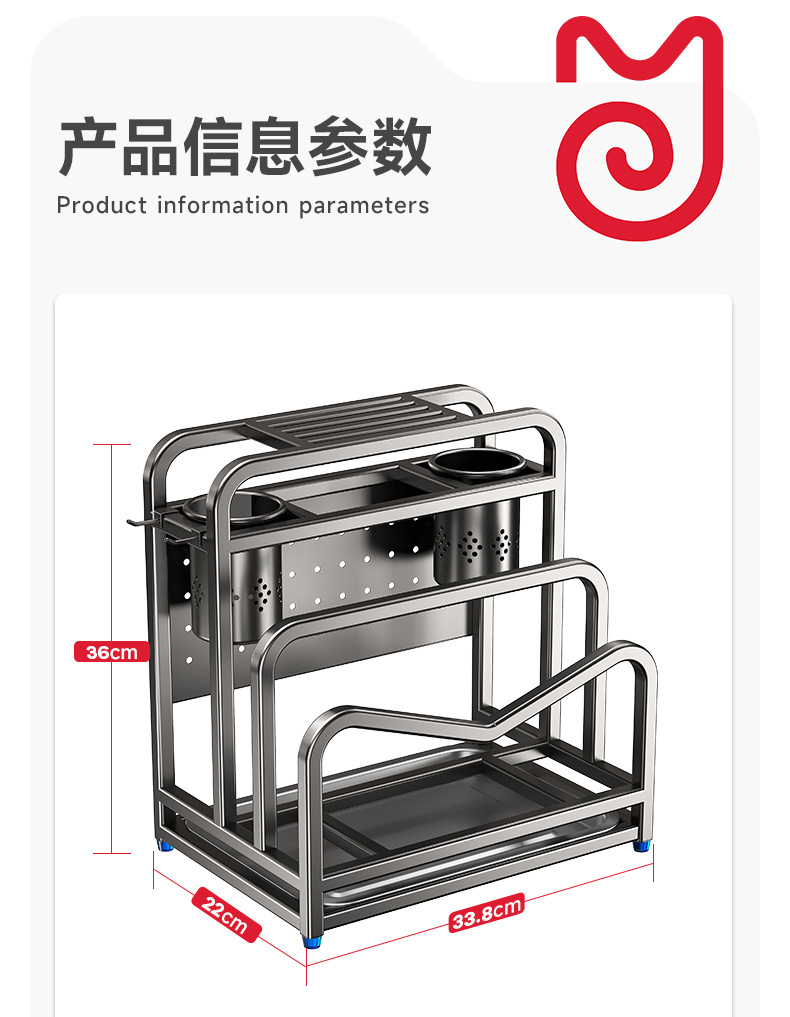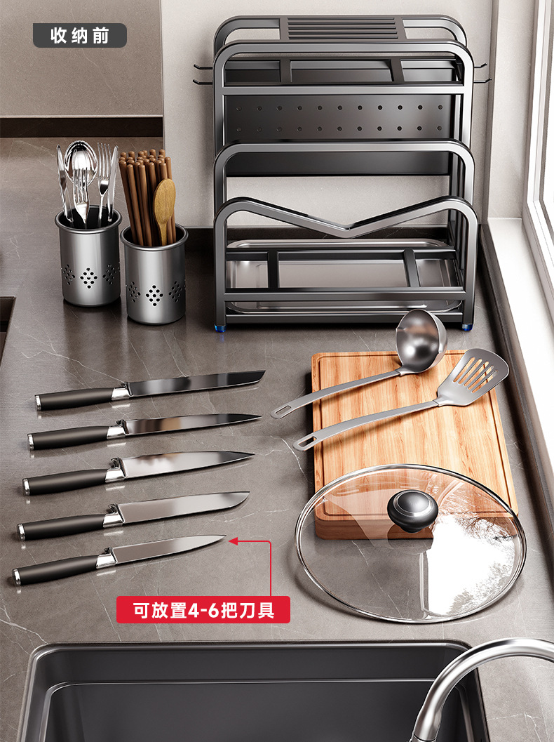 • 304 스테인리스 스틸, 강화 버전 [도마걸이 + 칼가드 + 이중젓가락홀더]