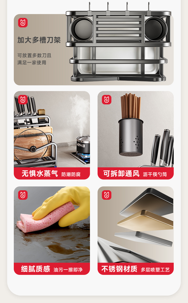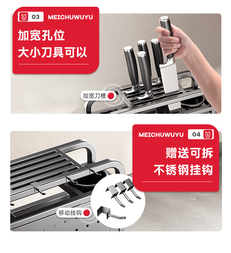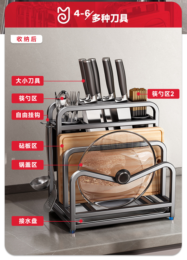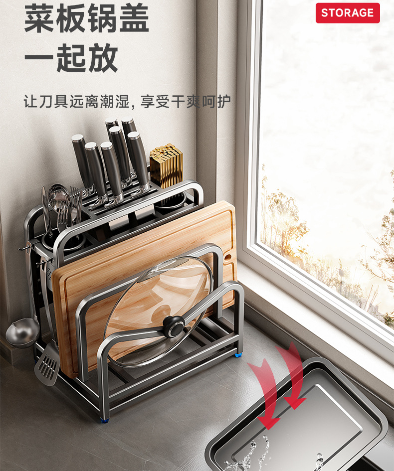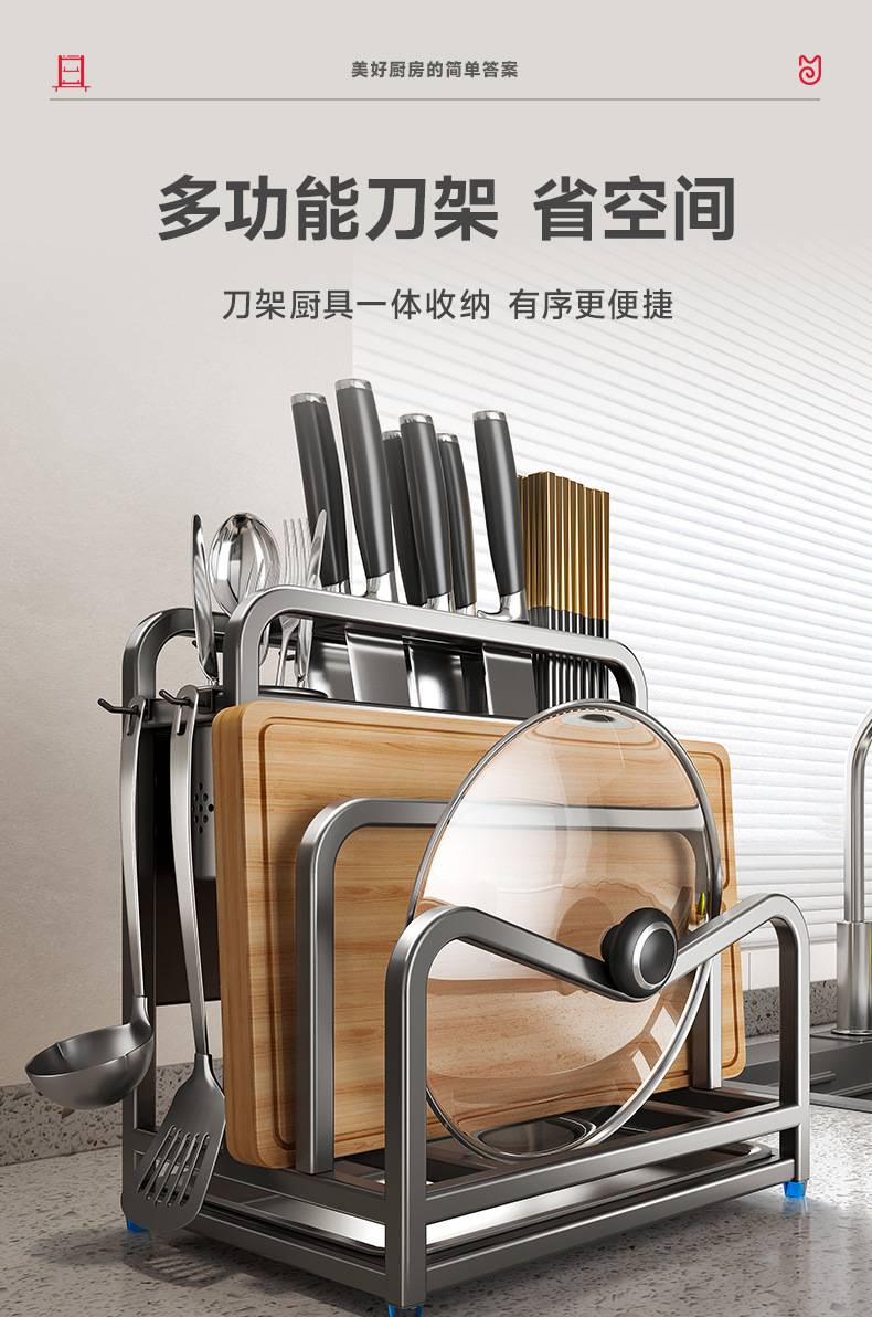 • 304 스테인리스·초광폭 플래그십 모델 [냄비뚜껑걸이+도마걸이+칼가드+이중젓가락홀더]