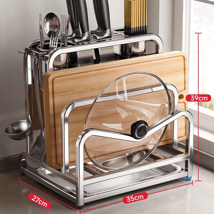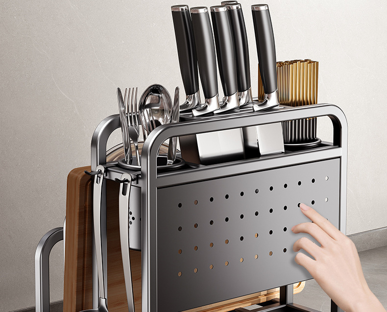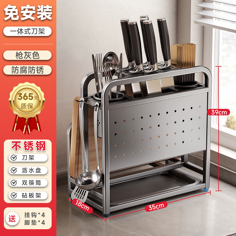 스테인레스 스틸 주방 칼 랙 카운터 탑 커팅 보드 랙 주방 나이프 젓가락 케이지 통합 도마 칼 스토리지 랙